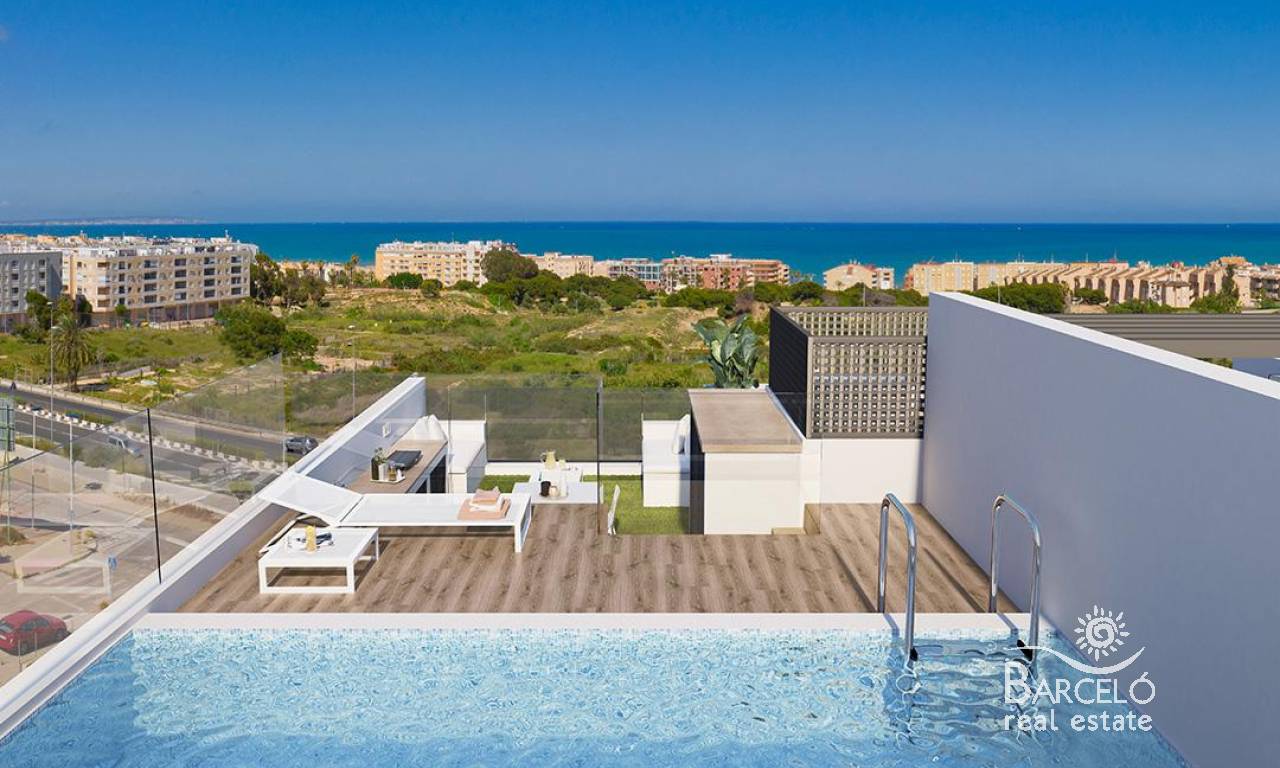 MEERBLICK mit der Möglichkeit eines privaten Pools oder JACUZZI Hochwertige Häuser in einem geschlossenen Wohnkomplex mit luxuriöser Ausstattung und einem vollständigen Qualitätsbericht. Häuser, die Sie das ganze Jahr über genießen können. 20 Häuser mit Meerblick und 800 m vom Strand von Guardamar entfernt. Es gibt Bungalows im Erdgeschoss mit großen Terrassen und Bungalows im Obergeschoss mit einem privaten Solarium und optionalem Pool oder Whirlpool. Die Erdgeschosse haben eine geschlossene Tiefgarage und die oberen Stockwerke haben eine im Preis inbegriffene Tiefgarage. Es hat einen Aufzug von der Garage zum Boden Ihres Hauses für mehr Komfort. Schöner Gemeinschaftspool und alles in der Nähe der Stadt Guardamar und ihrer wunderschönen Strände.