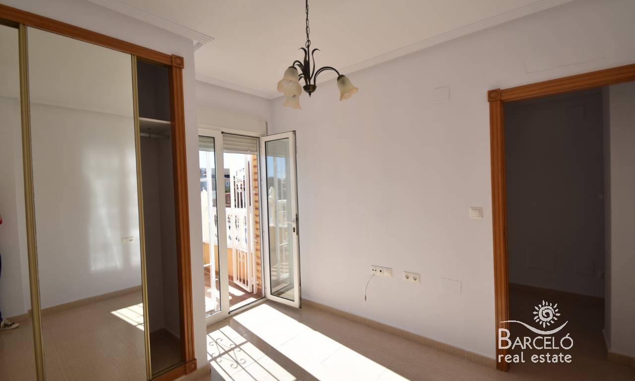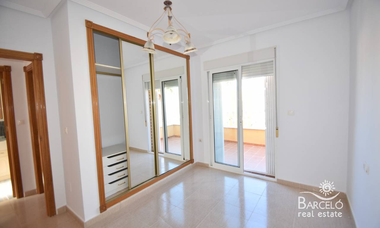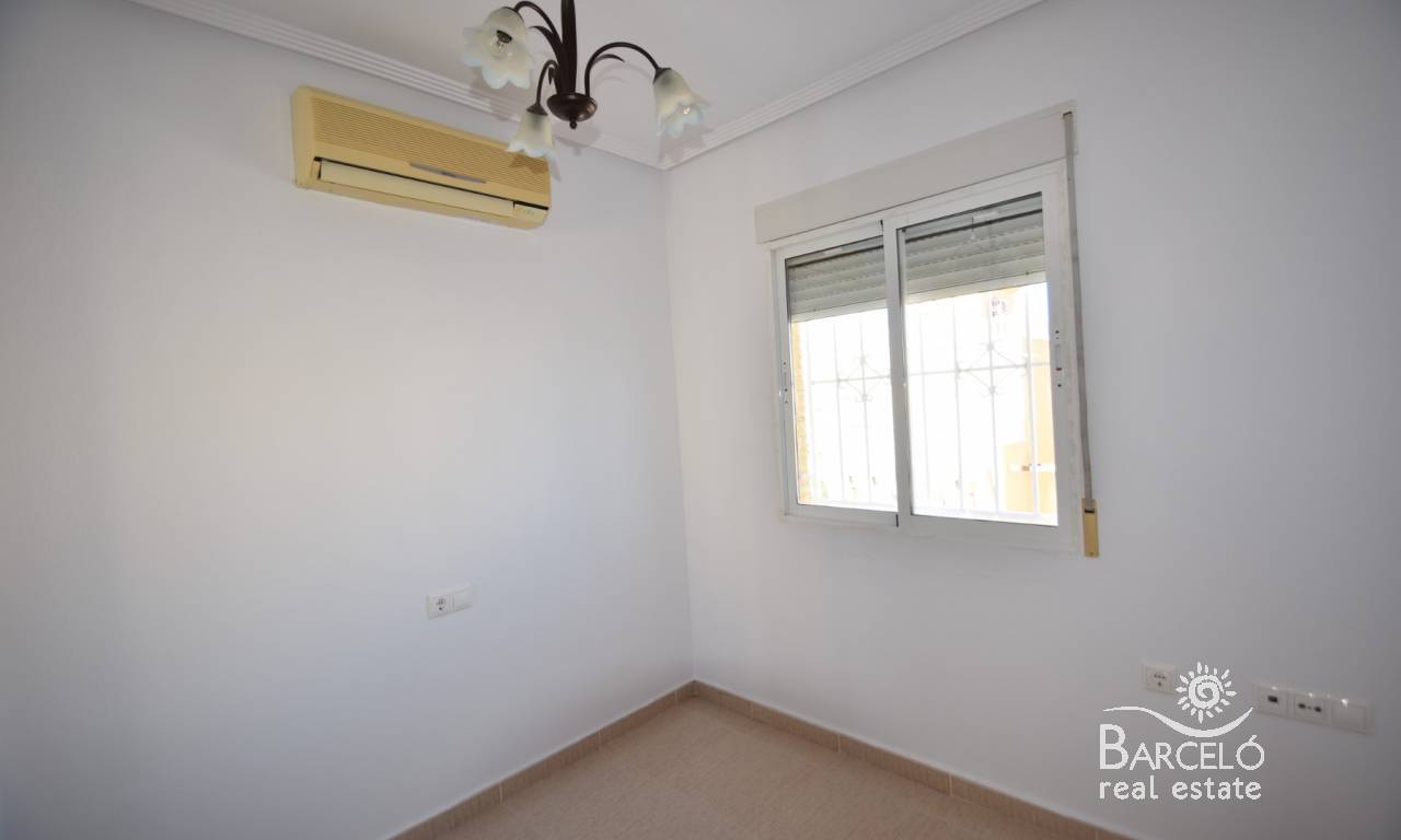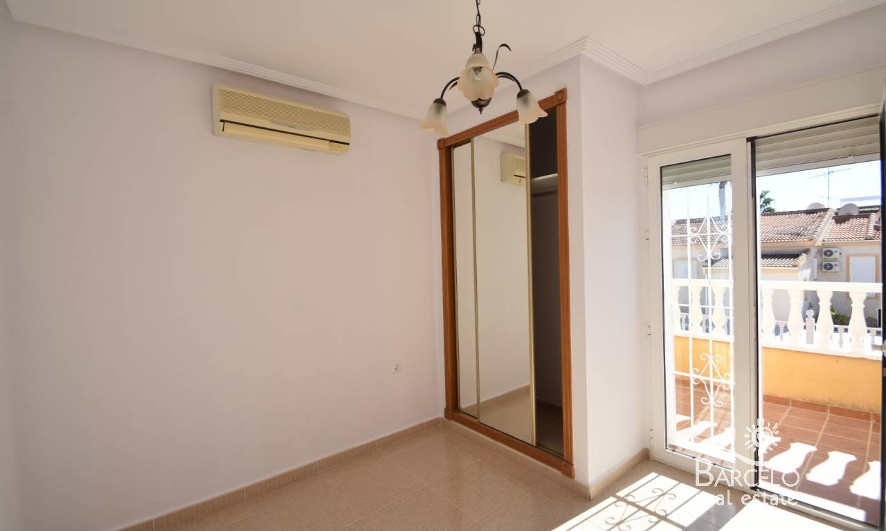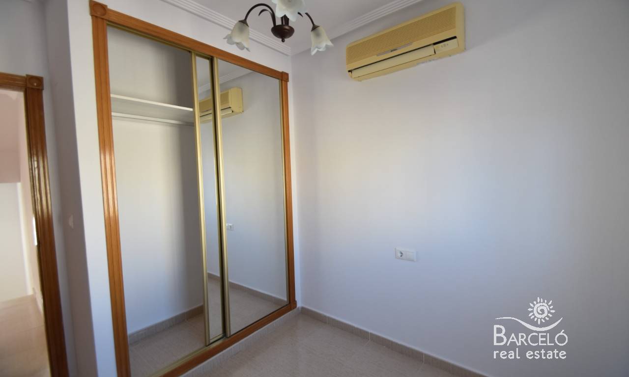 Im Obergeschoss befinden sich drei Doppelschlafzimmer, jedes mit Einbauschränken und Klimaanlage, und zwei davon verfügen über eine eigene, private, sonnige Terrasse. Auf dieser Etage befindet sich auch ein Familienbadezimmer. Auf der oberen Ebene gibt es ein großes Solarium mit Blick auf die Umgebung und den Golfplatz.