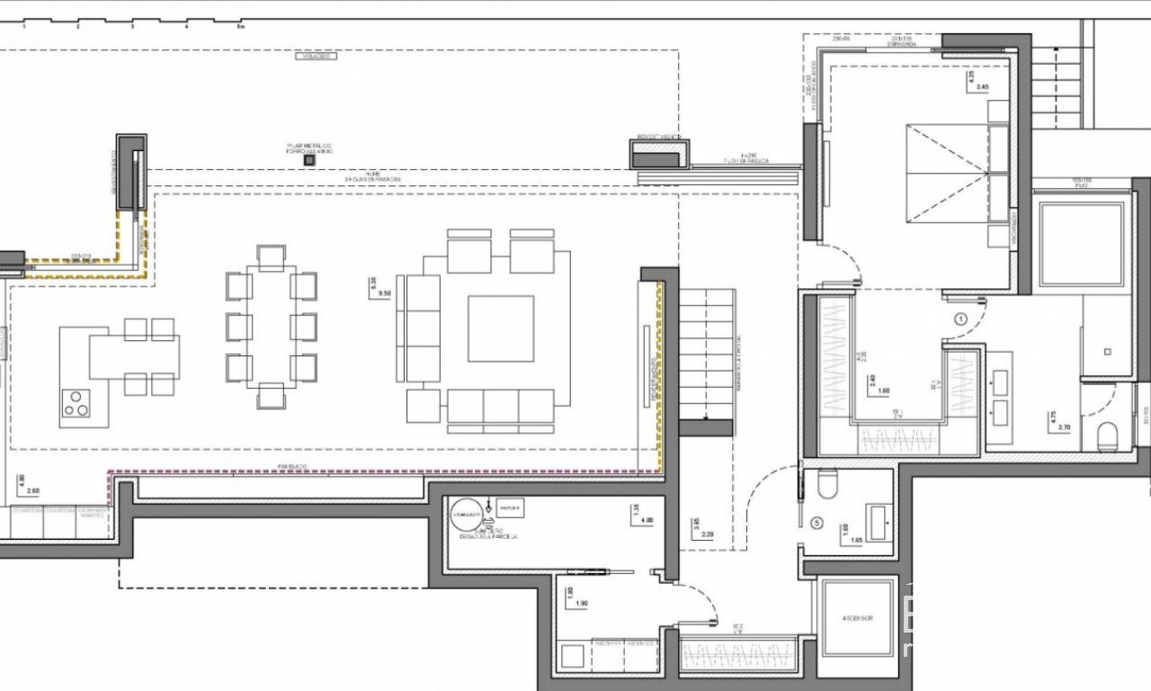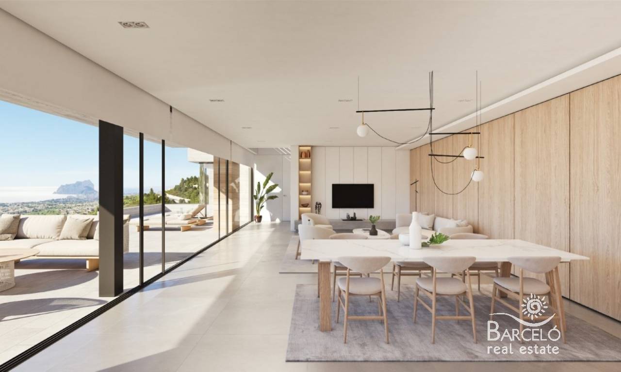 NEU GEBAUTE VILLA IN RACÓ DEL GALENO (BENISSA) Diese neu gebaute Villa befindet sich in der exklusiven Gegend von Racó del Galeno in Benissa, einer Residenz, in der sich Architektur mit der Natur verbindet und Elemente mit Holz-, Beton- und Steinoberflächen ein schönes architektonisches Design schaffen. Die Natur betritt das Haus durch die großen Fenster, die die Räume visuell duplizieren und zusammen mit dem mediterranen Licht als großer Verbündeter einen perfekten Dialog zwischen Innen- und Außenraum schaffen. Die Innenräume dieser Villa sind voller Details, Beleuchtung, die dem Haus Wärme verleiht, Räume mit doppelter Deckenhöhe, Glaswände, die auf einer Seite gesammelt sind und die Veranda und das Wohnzimmer verbinden, exklusive Details schaffen eine einzigartige Villa. Drei Schlafzimmer mit eigenem Bad sowie ein beeindruckendes Hauptschlafzimmer mit eigenem Bad, dessen Protagonist eine unglaubliche Badewanne mit Meerblick ist. Hauptwohnzimmer offen zur Küche und zum Esszimmer, ein zweites, reservierteres Zimmer, mehrere kostenlose Badezimmer und freie Bereiche, die sich für die Installation von einem Fitnessstudio, einem Büro bis hin zu einem Kino eignen. Der Garten ist vom mediterranen Typ, vollständig in die Architektur und die verschiedenen Außenbereiche dieser Villa integriert, darunter der harmonische rechteckige Pool mit einer Glaswand, die mit dem Meer verschmilzt, eine große Terrasse und ein Chill-out. und mehrere Veranden, um das mediterrane Klima zu verschiedenen Tageszeiten und die beeindruckende Aussicht auf das Meer mit dem Peñón de Ifach im Hintergrund zu genießen. Villa in einer einzigartigen Enklave inmitten der Natur, nicht weit von den städtischen Zentren von Benissa, Calpe und Moraira entfernt. Benissa ist eine Gemeinde mit einer kontrastreichen Landschaft, einem geschichtsträchtigen Stadtkern und einer 4 km langen Küste mit ruhigen Buchten, kurz gesagt, einer Landschaft, die Sie nicht verpassen sollten. Es ist sehr gut angebunden, die Zufahrt auf der Straße ist bequem und fließend, über die Nationalstraße N-322 und die Autobahn AP-7 (Ausfahrt 63). Seine Lage ermöglicht den Zugang zum 80 km entfernten Flughafen "El Altet" in Alicante und zum 110 km entfernten Flughafen "Manises" in Valencia mit einer großen Auswahl an nationalen und internationalen Flügen, die mit der ganzen Welt verbunden sind. Das Freizeitangebot ist sehr umfassend von nautischen Aktivitäten im Bassetes Nautical Club (Benissa) oder dem Real Club Náutico de Calpe, Wandern in der Sierra de Bernia, dem Ökologischen Spaziergang entlang der Küste, dem Peñón de Ifach bis hin zum Golfen im Club. Golf Ifach.