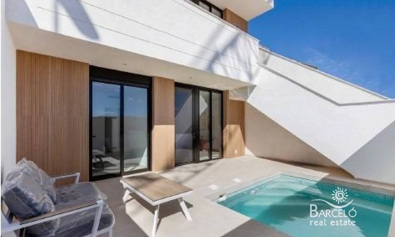 Neubau-Bungalows mit privatem Pool in Santiago de la Ribera Moderne Wohnungen nur 800 m vom Strand entfernt Entdecken Sie diese exklusive Neubausiedlung mit acht modernen Wohnungen in Santiago de la Ribera, nur 800 Meter vom Meer entfernt. Diese Wohnungen wurden mit moderner Ästhetik und hochwertigen Oberflächen entworfen und bieten geräumige Innenräume, private Außenbereiche und erstklassige Annehmlichkeiten. Immobilienoptionen - Erdgeschoss oder Penthouse Wählen Sie die Wohnung, die am besten zu Ihrem Lebensstil passt: Erdgeschossige Bungalows: Genießen Sie einen privaten Garten, einen Parkplatz und einen privaten Swimmingpool. Penthäuser im obersten Stockwerk: Sie verfügen über einen eigenen Parkplatz, eine private Terrasse und eine große Sonnenterrasse mit privatem Pool, ideal zum Entspannen oder für Unterhaltungszwecke. Alle Wohnungen sind mit 2 oder 3 Schlafzimmern und 2 Bädern erhältlich und bieten somit Flexibilität für unterschiedliche Bedürfnisse. Hochwertige Ausstattung für Komfort und Stil Jedes Haus ist mit hochwertigen Materialien und energieeffizienten Systemen ausgestattet, darunter: Verstärkte Sicherheitseingangstür Aluminiumfenster mit thermischer Trennung für bessere Isolierung Bosch-Küchengeräte Aerothermisches System für effiziente Warmwasserbereitung Glasduschabtrennungen in allen Bädern Vollständig installierte Klimaanlage mit Kanalisation Erstklassige Lage in Santiago de la Ribera In der charmanten Küstenstadt Santiago de la Ribera gelegen, bietet diese Anlage die perfekte Mischung aus Ruhe und Komfort. Ursprünglich ein traditionelles Fischerdorf, hat sich die Gegend zu einem begehrten Reiseziel an der Costa Cálida entwickelt, das für seinen mediterranen Lebensstil, seine goldenen Sandstrände und seine hervorragenden Annehmlichkeiten bekannt ist. Die Stadt verfügt über 4 km lange Strände entlang des Mar Menor mit ruhigem, warmem Wasser, das sich ideal zum Schwimmen und für Wassersport eignet. Eine wunderschöne, von Palmen gesäumte Strandpromenade lädt zum Spazierengehen, Radfahren und Genießen in den Restaurants am Meer ein. Hervorragende Verkehrsanbindung und nahe gelegene Attraktionen Strand (Playa de Santiago de la Ribera) - 800 m Flughafen Murcia-Corvera - 30 km Flughafen Alicante - 95 km Golfplätze (Roda Golf, La Serena Golf, Lo Romero Golf) - 10-15 km Einkaufszentrum Dos Mares - 3 km Jachthafen und Nautischer Club - 1,5 km Ihr Traumhaus am Meer erwartet Sie Ganz gleich, ob Sie auf der Suche nach einem Urlaubsdomizil, einer Investitionsmöglichkeit oder einem dauerhaften Wohnsitz sind, diese Bungalows bieten modernen Komfort in einer unschlagbaren Lage am Meer. Kontaktieren Sie uns noch heute für weitere Informationen und einen Besichtigungstermin!