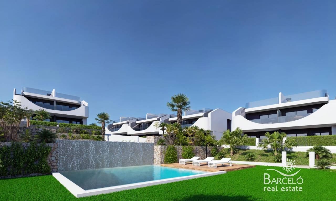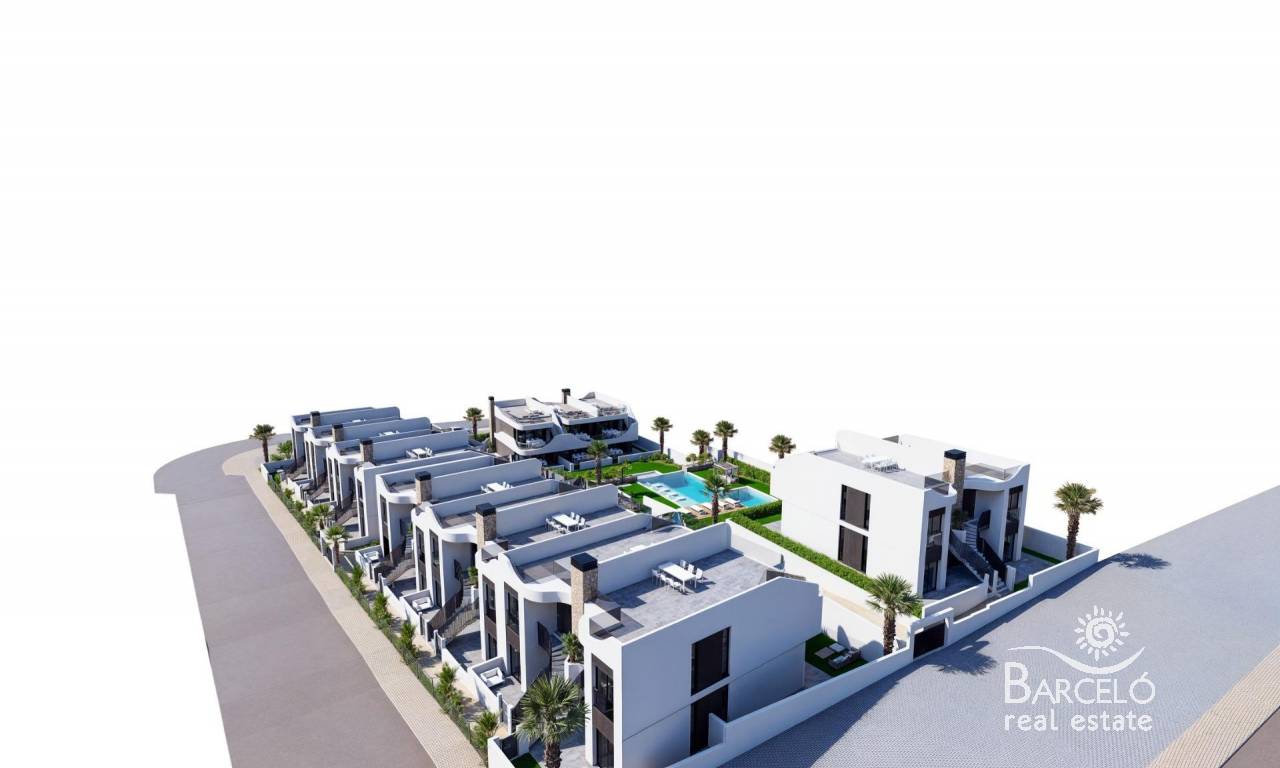 Neubaubungalows in San Miguel de Salinas - Natur, Golf und Komfort Privilegierte Lage in einer natürlichen Umgebung Diese exklusive Wohnanlage mit neu errichteten Bungalows befindet sich weniger als 3 km von San Miguel de Salinas entfernt, in einer ruhigen Gegend, umgeben von Natur und mit einem atemberaubenden, unverbaubaren Blick. Die ausgezeichnete Lage ermöglicht es Ihnen, die Ruhe zu genießen, ohne auf die Nähe zu allen Dienstleistungen zu verzichten. Nur 7 km entfernt liegen die Strände von Orihuela Costa und die Stadt Torrevieja, wo Sie ein breites Angebot an Freizeitaktivitäten, Gastronomie und Geschäften vorfinden. Modernes Design und unverbaubarer Blick Die Immobilien sind in einem modernen Stil gestaltet und verfügen über hochwertige Innen- und Außenausstattungen. Sie können wählen zwischen: Erdgeschoss mit privatem Garten, ideal für alle, die sich gerne im Freien aufhalten. Obergeschoss mit privatem Solarium, ideal zum Sonnenbaden und Entspannen mit Panoramablick. Außerdem verfügen alle Wohnungen über einen eigenen Parkplatz. Gemeinsame Bereiche für maximalen Komfort Die Wohnanlage verfügt über einen schönen Gemeinschaftspool, der von Grünflächen umgeben ist, in denen man das mediterrane Klima genießen kann. Die natürliche Umgebung fördert einen gesunden Lebensstil, fernab von Stress und Umweltverschmutzung, in einer Enklave, die einem wahren Paradies gleicht. Die Nähe zu den besten Golfplätzen San Miguel de Salinas ist ein ideales Ziel für Golfliebhaber. Weniger als 4 km entfernt befinden sich drei der renommiertesten Golfplätze der Costa Blanca: Villamartin Golf - 3,5 km. Las Colinas Golf & Country Club - 4 km. Campoamor Golf - 4 km. Anbindung an die wichtigsten Sehenswürdigkeiten Diese Wohnanlage befindet sich in einer strategischen Lage mit einfachem Zugang zu: San Miguel de Salinas - 3 km. Orihuela Costa Strände - 7 km. Torrevieja - 7 km. La Zenia Boulevard Einkaufszentrum - 10 km. Flughafen Alicante - 55 km. Flughafen Murcia (Corvera) - 50 km. Sichern Sie sich Ihr Zuhause in San Miguel de Salinas Wenn Sie auf der Suche nach einem Haus an der Costa Blanca sind, in dem Sie Ruhe, Natur und Golf genießen können, ist diese Wohnanlage die beste Wahl. Kontaktieren Sie uns noch heute für weitere Informationen und um eine Besichtigung zu vereinbaren.