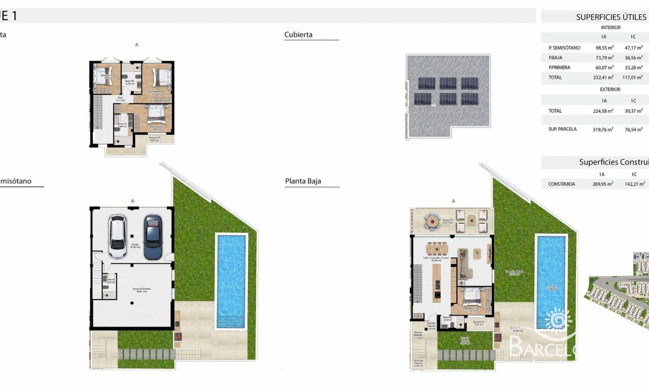 Neubau-Doppelhaushälfte in Ráfol de Almunia: Natur, Komfort und modernes Design Charmantes Haus in ruhiger, natürlicher Umgebung In der ruhigen Urbanisation La Almunia, in der Nähe von Ráfol de Almunia, bietet diese neue Wohnanlage schön gestaltete Doppelhaushälften und Villen inmitten der Natur. Nur 6 km von den nächsten Stränden und nur 2 km vom Dorfzentrum entfernt, bietet diese Wohngegend die perfekte Balance zwischen ländlicher Ruhe und guter Anbindung an die besten Dienstleistungen der Costa Blanca. Ráfol de Almunia ist ein malerisches Dorf in der Marina Alta in Alicante, bekannt für seine ruhige Landschaft, seine Orangenhaine und seinen Blick auf die Berge. Es ist ideal für diejenigen, die eine ruhige und familiäre Umgebung mit mediterranem Lebensstil suchen. Moderne Reihenhäuser mit großzügigen Räumlichkeiten Jede Immobilie verfügt über: Vier Schlafzimmer und vier Badezimmer. Ein Halbkeller mit Bad, offenem Raum und Parkplatz für zwei Fahrzeuge. Ein Erdgeschoss mit Wohn-/Esszimmer, Küche, Bad, Schlafzimmer und drei Terrassen: vordere Terrasse, seitliche Terrasse mit privatem Pool und Grill und hintere Terrasse mit Blick auf den Gemeinschaftspool. Ein Obergeschoss mit drei Schlafzimmern, zwei Bädern und Zugang zu einer Terrasse mit freiem Blick auf die ländliche Umgebung. Die Wohnungen werden mit moderner Ausstattung, hochwertigen Materialien und voll ausgestatteten Küchen übergeben. Käufer haben auch die Möglichkeit, die Wohnungen nach ihren Wünschen zu gestalten. Exklusive Dienstleistungen im Resort-Stil Diese Wohnanlage wurde entworfen, um Ihre Lebensqualität mit einer breiten Palette an gemeinsamen Dienstleistungen zu verbessern: Pool im Strandstil mit Liegestühlen und Sonnenschirmen. Landschaftlich gestaltete Gärten mit Obstbäumen, Entspannungsbereichen und Picknickplätzen. Kinderspielplatz mit Schaukeln und Rutschen. Padel-Tennisplatz und Bouleplatz. Außenbäder zur gemeinschaftlichen Nutzung. Kontrollierter Zugang und interne Zufahrt mit Einbahnverkehr. CCTV-Überwachung in den Gemeinschaftsbereichen für mehr Sicherheit. Hochwertige Ausstattung und nachhaltige Technologie Alle Wohnungen verfügen über: Fünf Solarpaneele mit Wechselrichter zur direkten Energieerzeugung. Hochwertige lackierte Aluminium-Außenschreinerei mit thermischer Trennung. Motorisierte Rollläden in den Schlafzimmern. Doppelt verglaste Sicherheitsfenster mit Argon-Isolierung Automatisches Garagentor Siemens-Küchengeräte inklusive Luftwärmeheizung Klimaanlage (kalt und warm) Beheizte Handtuchhalter in den Badezimmern Alarmanlage Halbetagen mit Bad, Waschküche und Keramikböden Entfernungen zu Sehenswürdigkeiten Zentrum von Denia: 17 km Strände: 6 km Golfplatz La Sella: 13 km Einkaufszentrum Portal de la Marina: 10 km Flughafen Alicante: 105 km Flughafen Valencia: 115 km Beginnen Sie Ihr neues Leben in Ráfol de Almunia: Kontaktieren Sie uns noch heute, um weitere Informationen zu erhalten oder einen Besichtigungstermin zu vereinbaren.