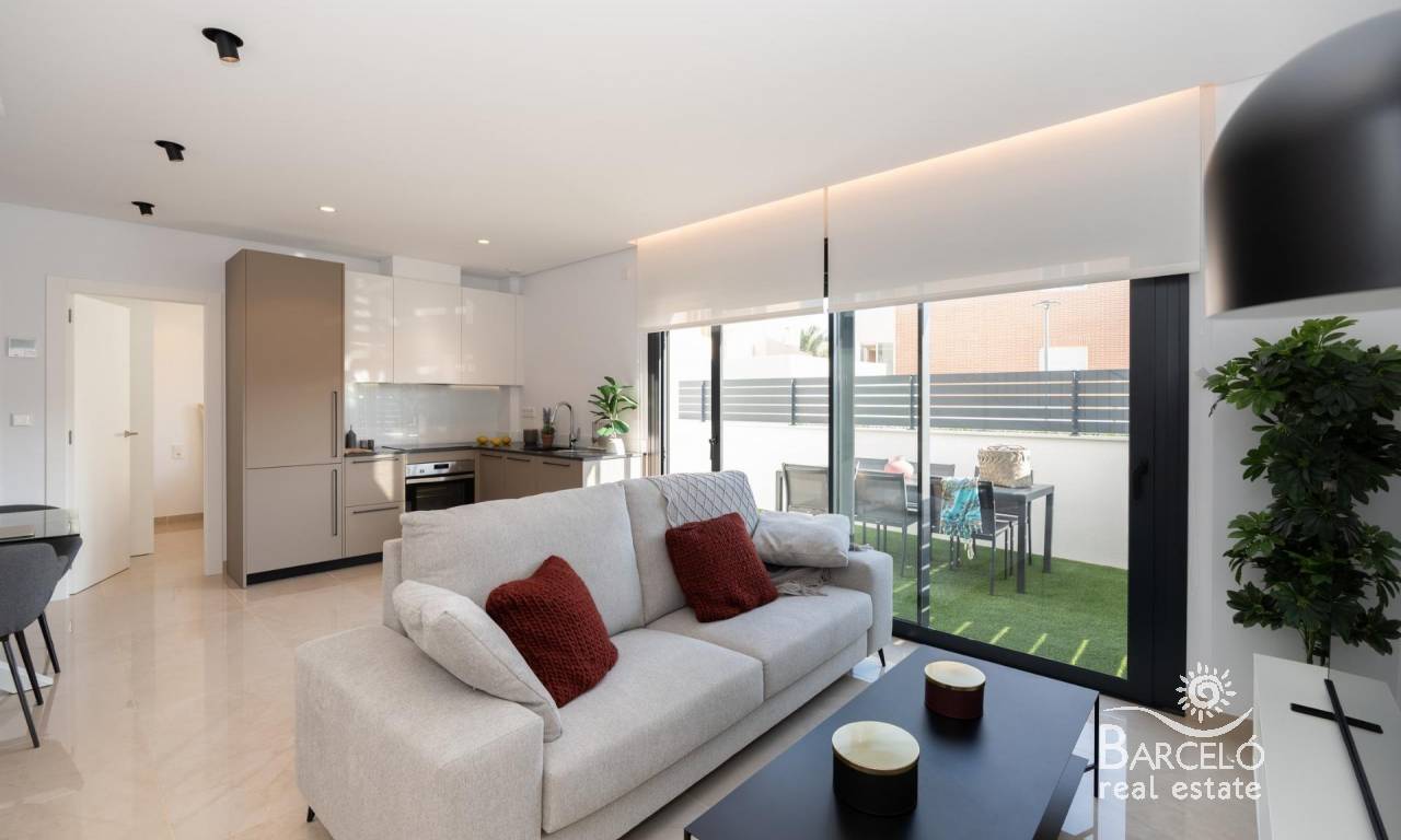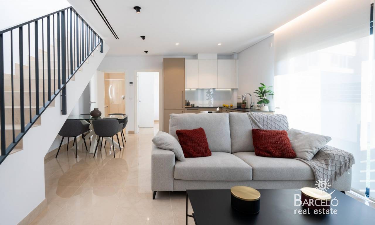 Neue Doppelhaushälften am Meer in La Marina – Strand El Pinet Exklusives Wohnen am Mittelmeer in Strandnähe Diese neue Wohnanlage mit Doppelhaushälften in La Marina, nur 500 Meter vom Strand El Pinet entfernt, bietet eine unschlagbare Kombination aus modernem Design und einer privilegierten natürlichen Umgebung. Dank der Lage neben dem Naturpark Las Salinas können die Bewohner goldene Sandstrände, kristallklares Wasser, geschützte Dünen und einen jahrhundertealten Pinienwald genießen – der perfekte Ort, um das ganze Jahr über zu leben oder als Urlaubsrückzugsort zu genießen. Moderne mediterrane Villen, die auf Komfort ausgelegt sind Die Villen sind auf zwei Etagen verteilt und verfügen über: 3 geräumige Schlafzimmer und 3 Badezimmer Erdgeschoss mit offener Küche und Wohnzimmer, einem Schlafzimmer, einem Badezimmer und Zugang zum privaten Garten mit Parkplatz Erster Stock mit zwei Schlafzimmern, beide mit eigenem Bad, und einer großen Terrasse, die mit dem Hauptschlafzimmer verbunden ist Jedes Haus wurde mit hellen, komfortablen Innenräumen und hochwertigen Oberflächen gestaltet, wodurch eine einzigartige und einladende Atmosphäre entsteht. Voll ausgestattet mit Premium-Ausstattung Diese Villen werden geliefert mit: Voll ausgestattete Küche mit Induktionskochfeld, Dunstabzugshaube, Backofen, Kühlschrank und Vorinstallation für Geschirrspüler Moderne Schränke mit hochwertigen Oberflächen Voll installierte Klimaanlage mit Luftkanälen Elektrische Rollläden Gemeinschaftspool, umgeben von gepflegten Gärten Eine erstklassige Lage an der Costa Blanca In La Marina zu leben bedeutet, alle Annehmlichkeiten einer gut versorgten Stadt zu genießen und gleichzeitig von Natur und dem Mittelmeer umgeben zu sein. In Gehweite finden Sie Geschäfte, Restaurants und wichtige Dienstleistungen. Entfernungen zu wichtigen Sehenswürdigkeiten: Strand El Pinet: 500 m Stadt Elche: 17 km Internationaler Flughafen Alicante-Elche: 22 km Golfplätze (La Marquesa, El Plantío): 15–20 km Stadt Alicante und Hafen: 30 km Der perfekte Lebensstil an der Küste Ob Sie einen dauerhaften Wohnsitz, ein Zweitwohnsitz oder eine kluge Investition suchen, diese Villen in El Pinet bieten einen Lebensstil, der von Meer, Natur und modernem Komfort geprägt ist. Mit ganzjährigem Sonnenschein und einer privilegierten Lage ist La Marina einer der begehrtesten Orte an der Costa Blanca. Kontaktieren Sie uns noch heute, um einen Besichtigungstermin zu vereinbaren und sich Ihre Traumvilla am Mittelmeer zu sichern.