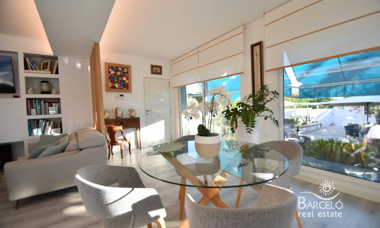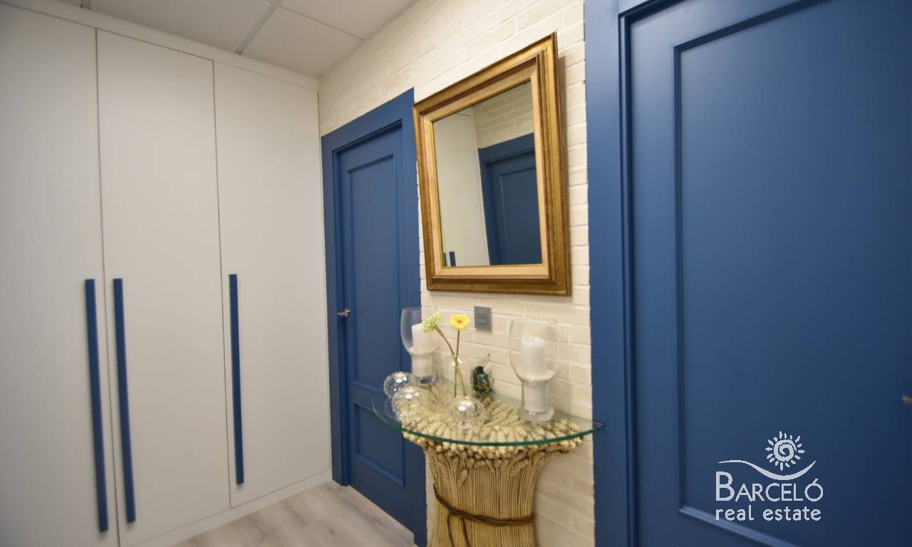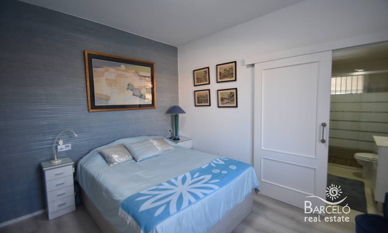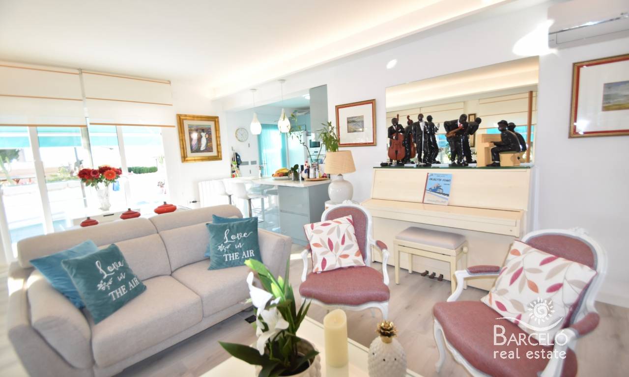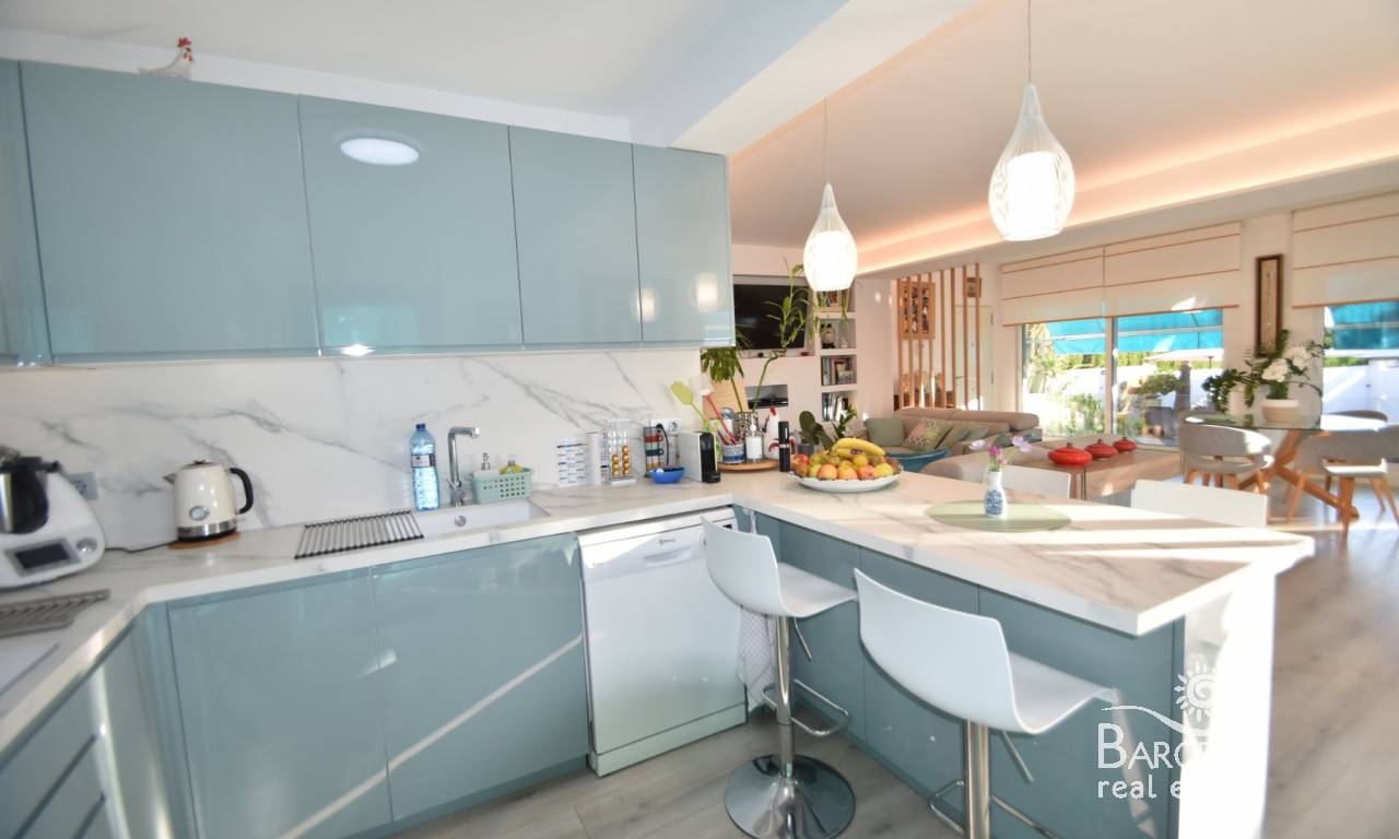Die Villa wurde für Senioren und Rollstuhlfahrer mit Rampen auf beiden Seiten barrierefrei gestaltet. Von beiden Eingängen gelangt man in das helle Wohnzimmer mit raumhohen Fenstern und viel Tageslicht. Das perfekt gestaltete Haus besticht durch sein modernes und einladendes Ambiente und bietet Designer-Elemente wie eine neue Küche mit allen Geräten. Vom Wohnzimmer aus gelangt man über einen Flur zu den drei Doppelschlafzimmern, jedes mit eigenem modernen Bad und Einbauschränken.