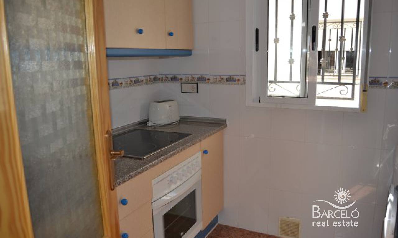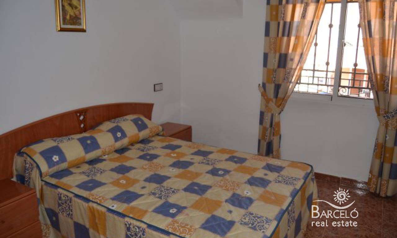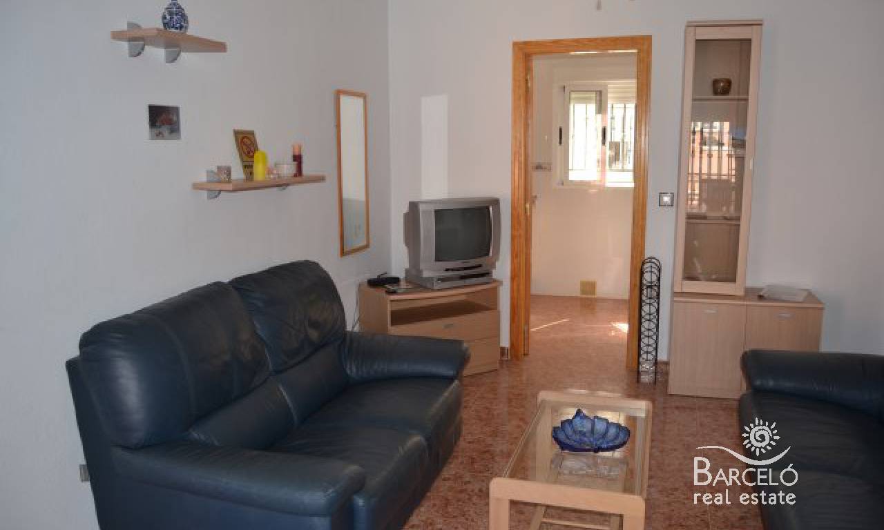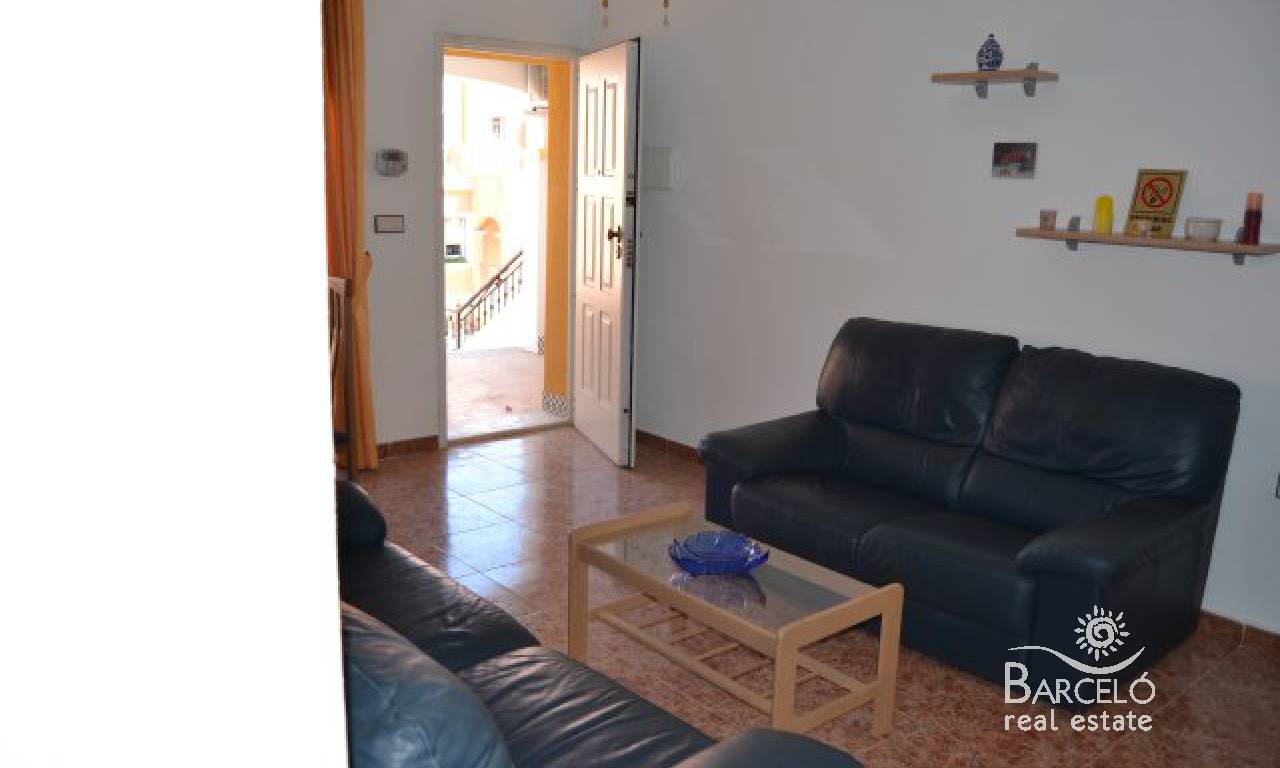 Diese Wohnung von 55m2 Grundfläche ist ein erster Stock mit einer großen Terrasse. Das Haus verfügt über ein großes Wohnzimmer, eine separate, voll ausgestattete Küche, zwei Schlafzimmer und ein Badezimmer. Die Schlafzimmer haben Deckenventilatoren und Einbauschränke. Es verfügt über eine große Terrasse mit herlichem Blick auf die Laguna de la Mata und das Mittelmeer. Es hat auch einen Swimmingpool mit einen Gsarten