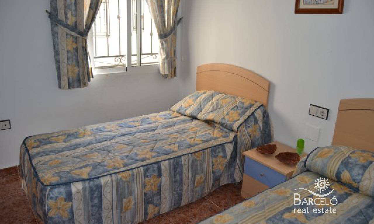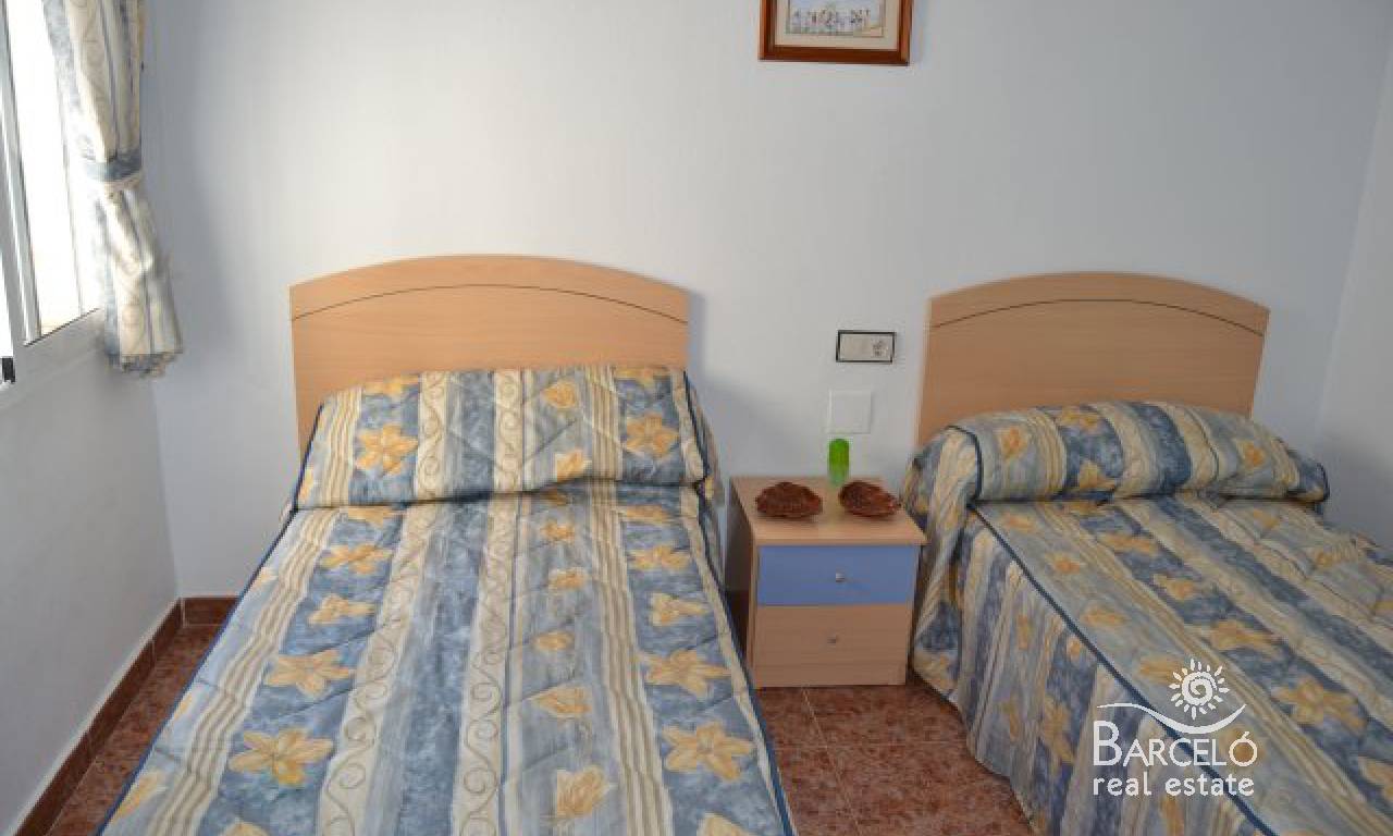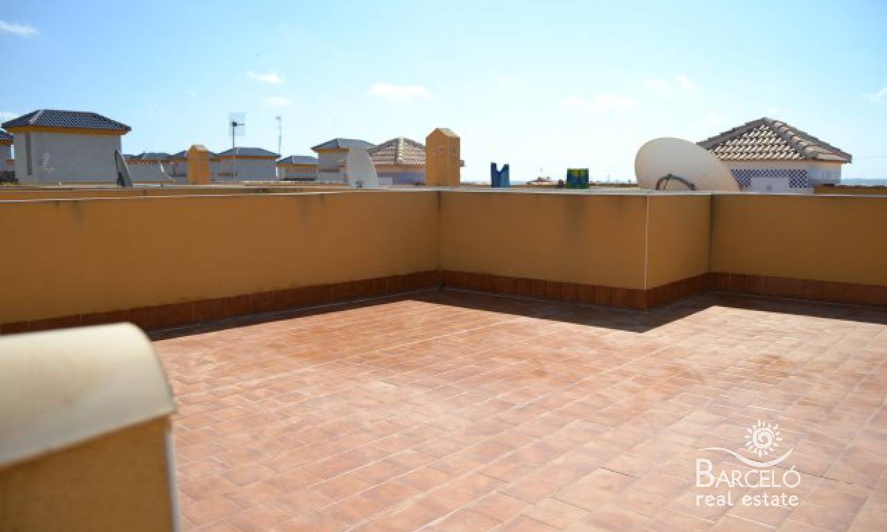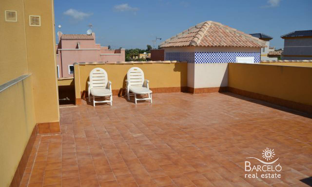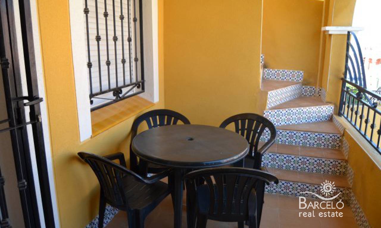 Diese Wohnung von 55m2 Grundfläche ist ein erster Stock mit einer großen Terrasse. Das Haus verfügt über ein großes Wohnzimmer, eine separate, voll ausgestattete Küche, zwei Schlafzimmer und ein Badezimmer. Die Schlafzimmer haben Deckenventilatoren und Einbauschränke. Es verfügt über eine große Terrasse mit herlichem Blick auf die Laguna de la Mata und das Mittelmeer. Es hat auch einen Swimmingpool mit einen Gsarten