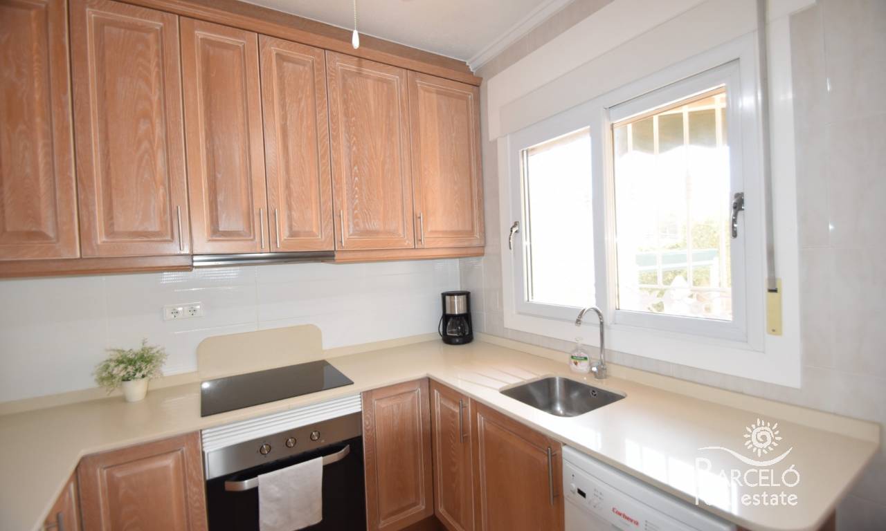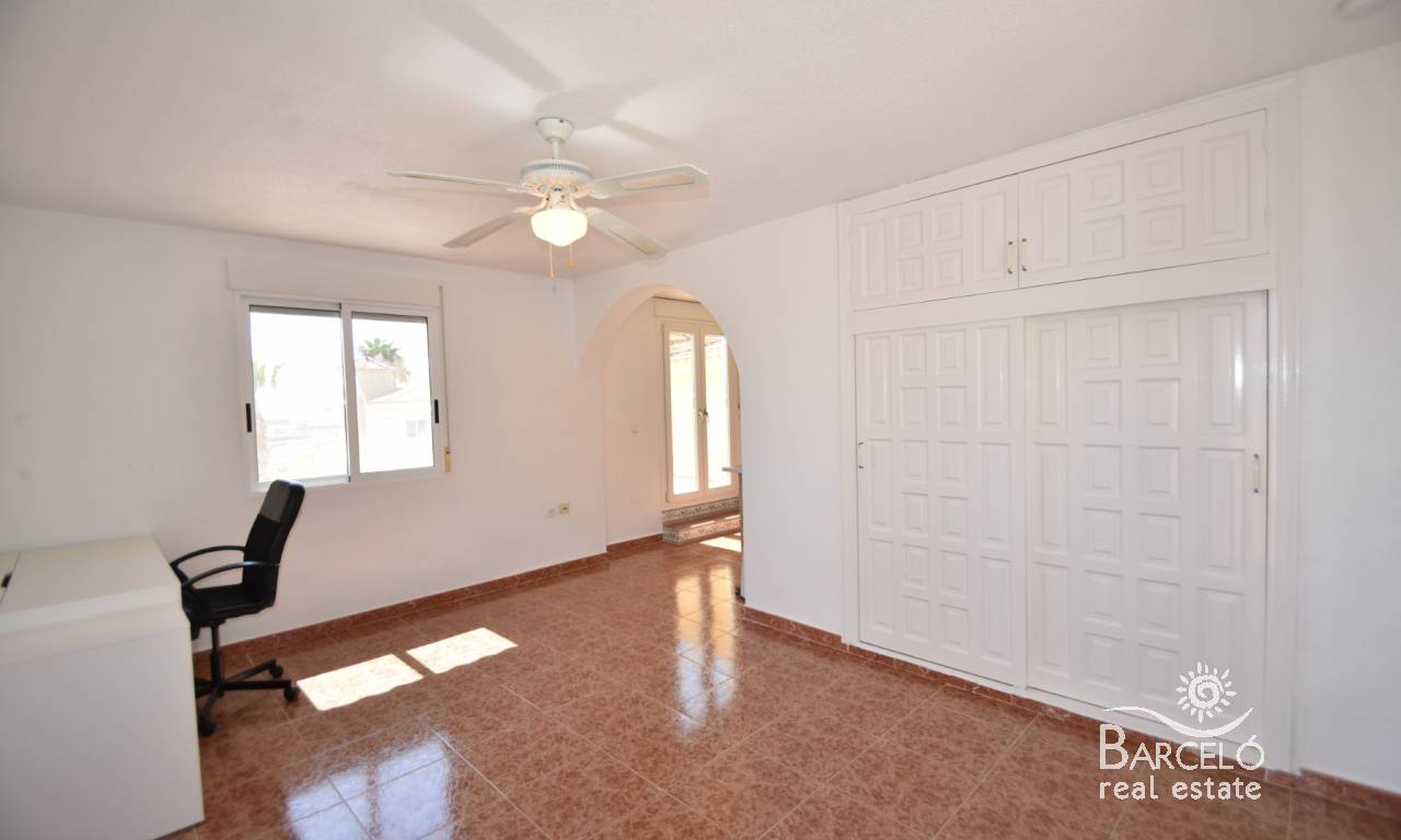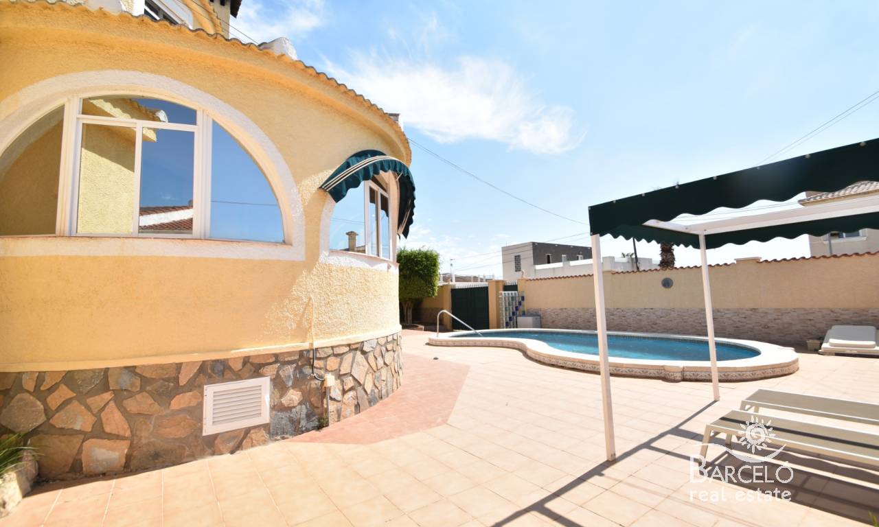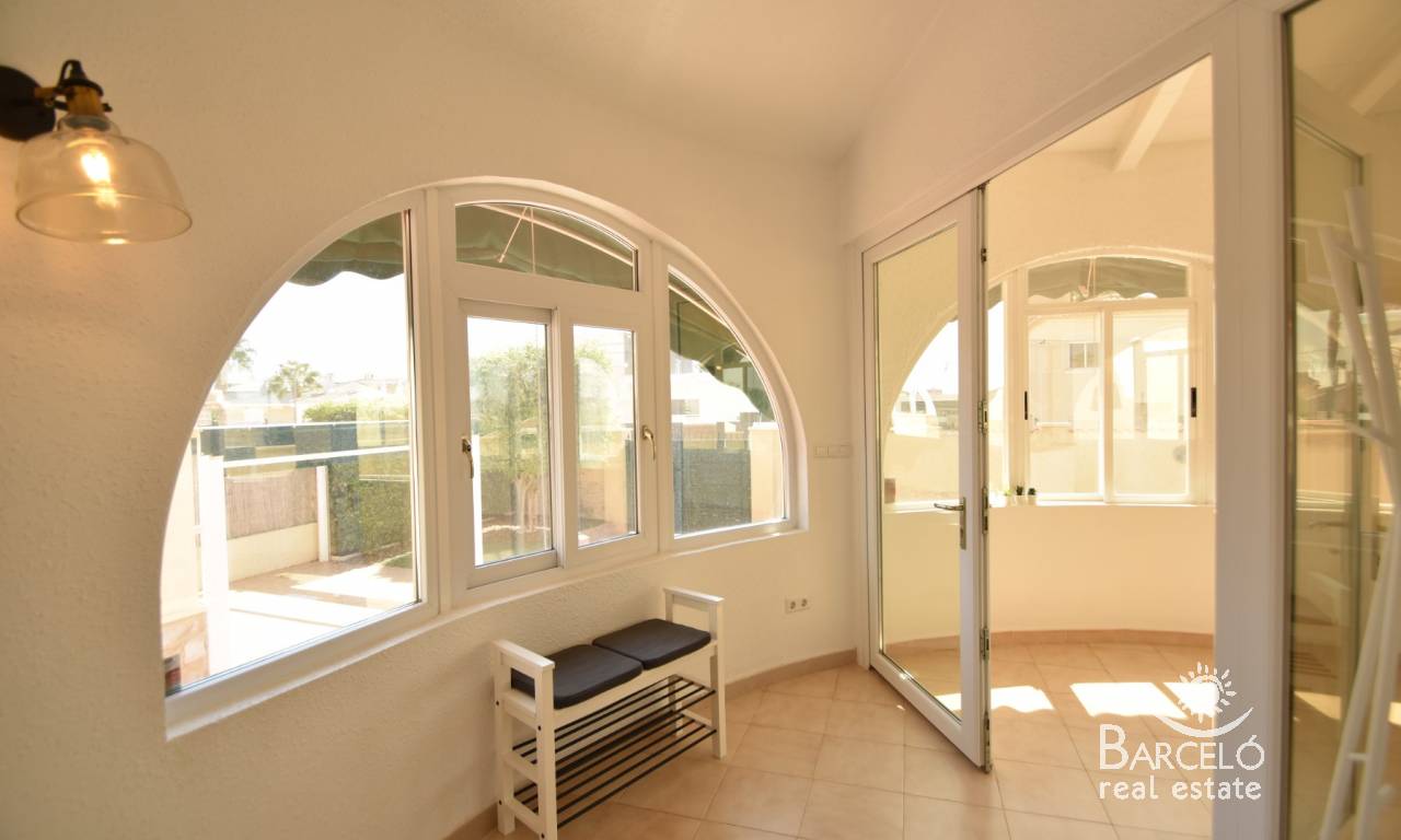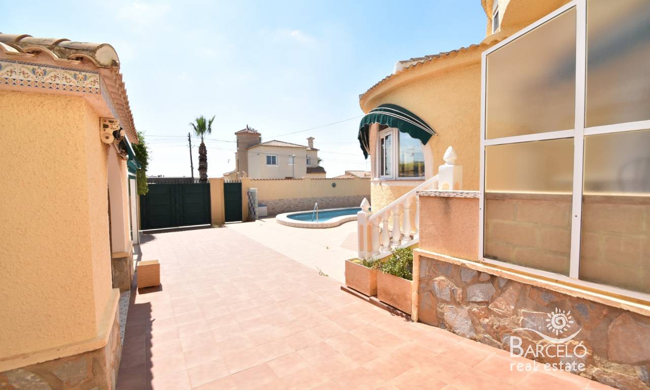 La villa en sí está construida en dos niveles y consta de la casa principal en la planta baja y un anexo independiente arriba. Entrando a la casa principal tiene una pequeña terraza con puerta de entrada al salón, donde tiene una acogedora chimenea y aire acondicionado. Hay una terraza curva con vistas a la piscina y al jardín y ha sido acristalada con ventanas para crear un lugar fantástico para pasar los días de invierno y verano por igual. Desde el salón se accede a una cocina independiente con todos los electrodomésticos, y hay tres dormitorios dobles y un baño familiar grande y moderno.