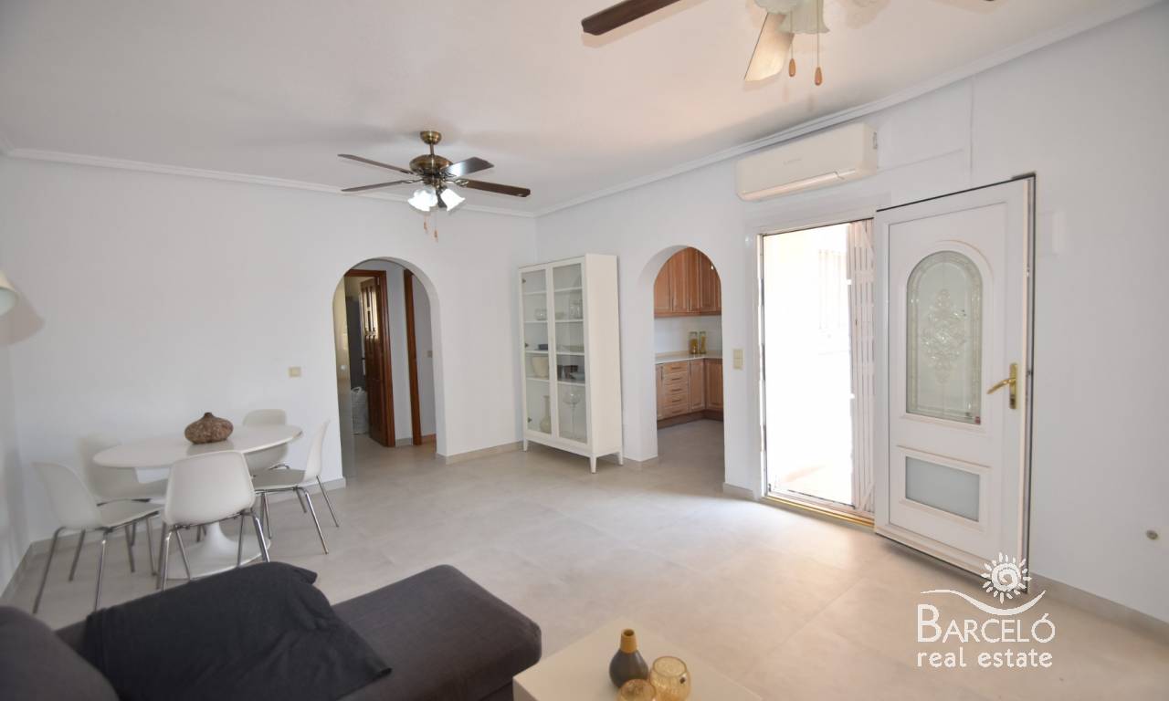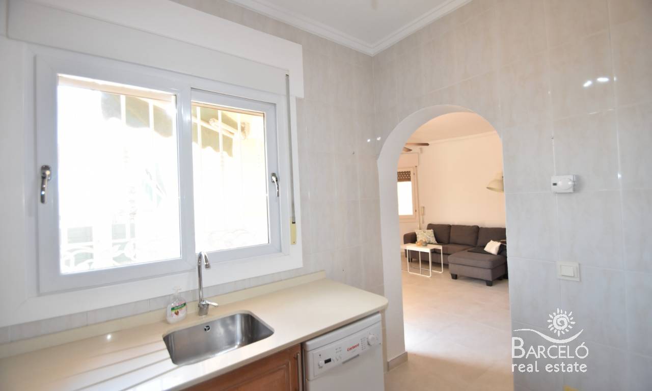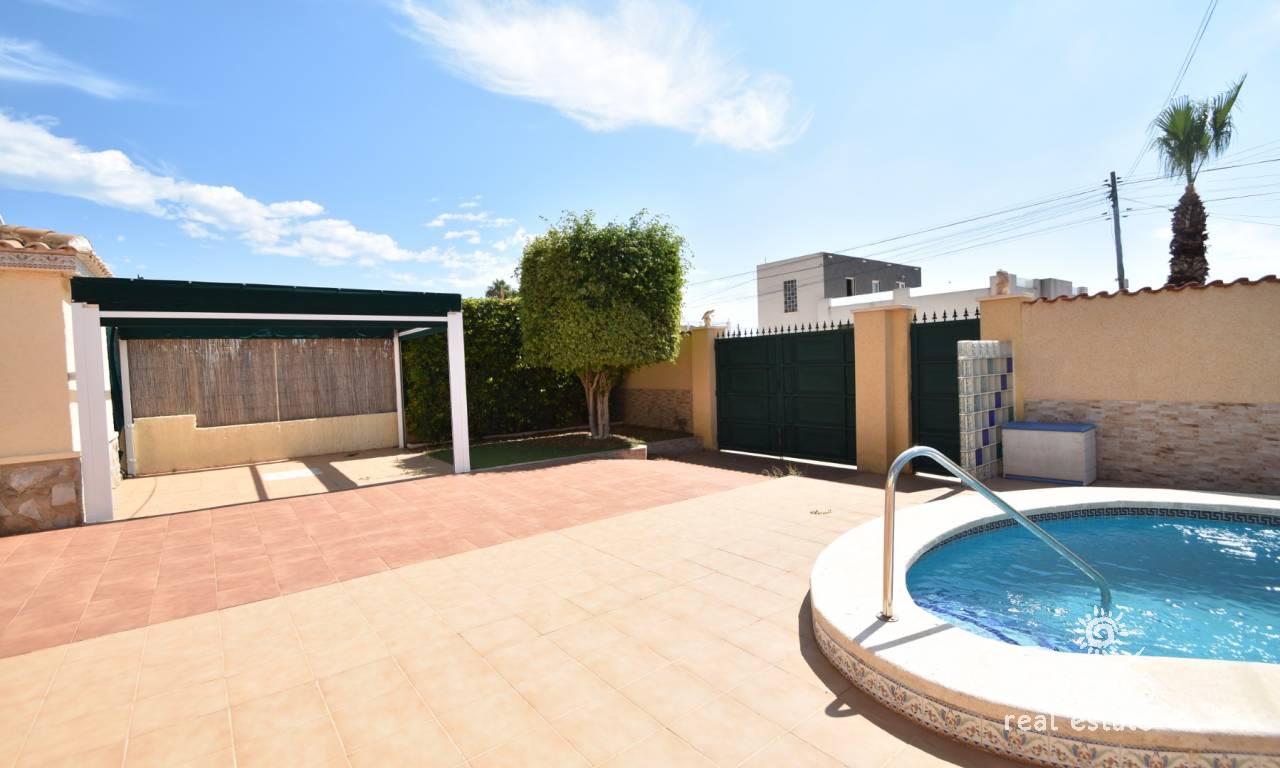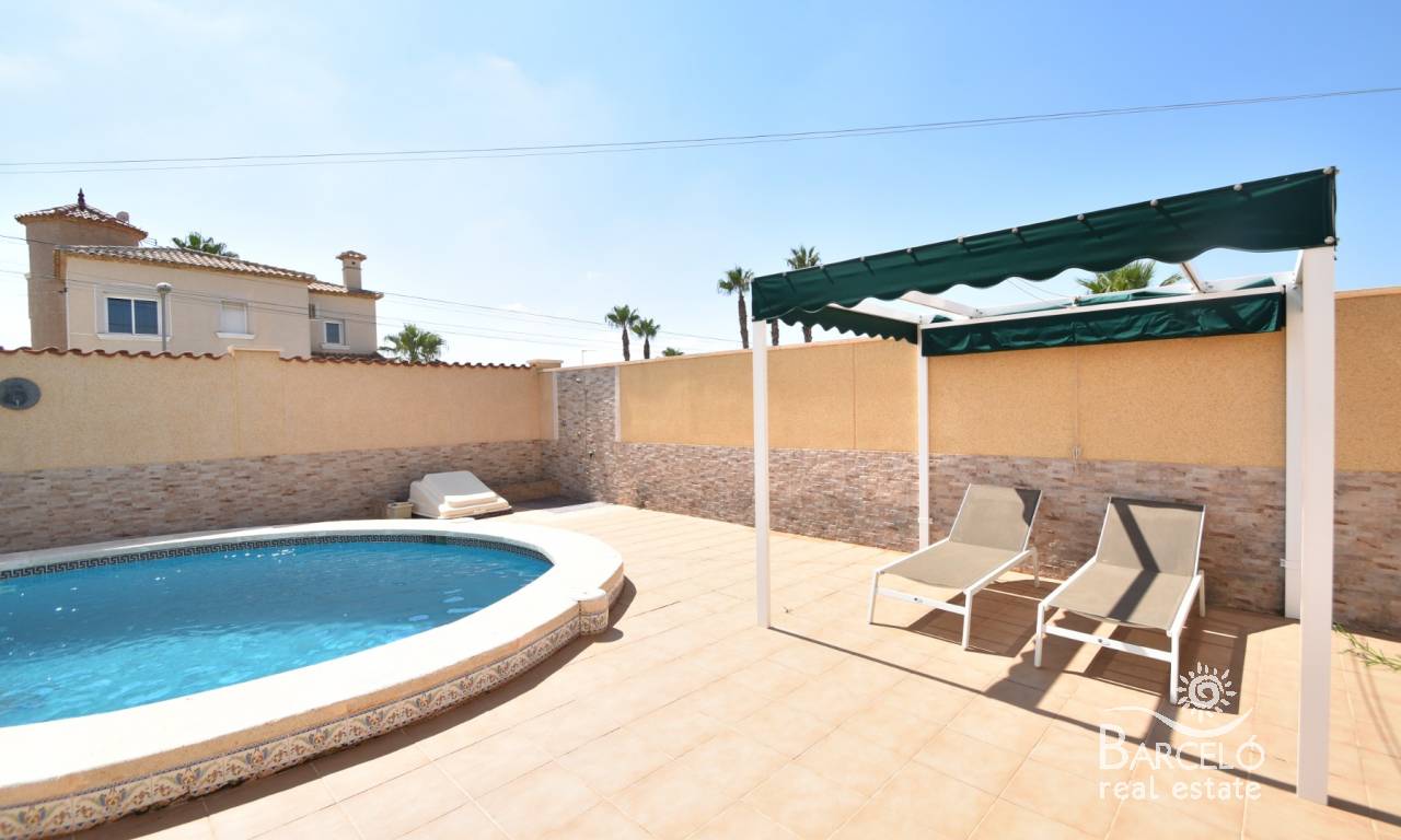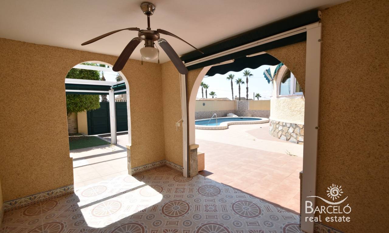 La villa en sí está construida en dos niveles y consta de la casa principal en la planta baja y un anexo independiente arriba. Entrando a la casa principal tiene una pequeña terraza con puerta de entrada al salón, donde tiene una acogedora chimenea y aire acondicionado. Hay una terraza curva con vistas a la piscina y al jardín y ha sido acristalada con ventanas para crear un lugar fantástico para pasar los días de invierno y verano por igual. Desde el salón se accede a una cocina independiente con todos los electrodomésticos, y hay tres dormitorios dobles y un baño familiar grande y moderno.