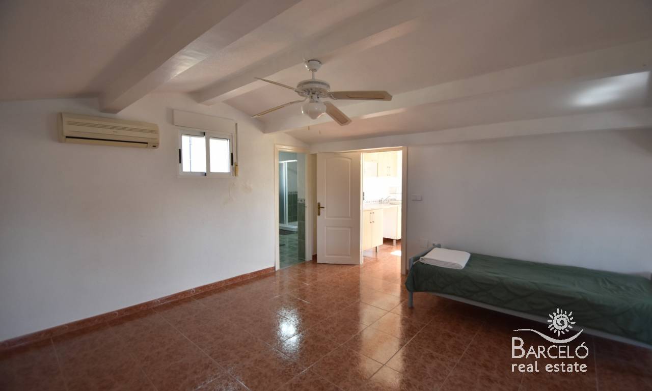 Arriba es donde se encuentra el anexo de invitados, con una entrada independiente encima del garaje, y aquí tiene un amplio salón (o dormitorio), cocina americana y un dormitorio independiente con espacio para al menos 4 camas con baño en suite. También hay una bonita terraza para disfrutar de las vistas del pueblo y la zona. La villa ha sido renovada recientemente y cuenta con extras como calefacción por suelo radiante en el salón y la cocina, una acogedora chimenea, aire acondicionado, armarios empotrados y más.
