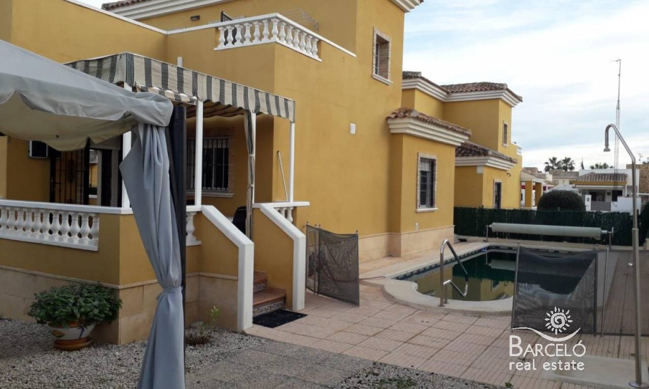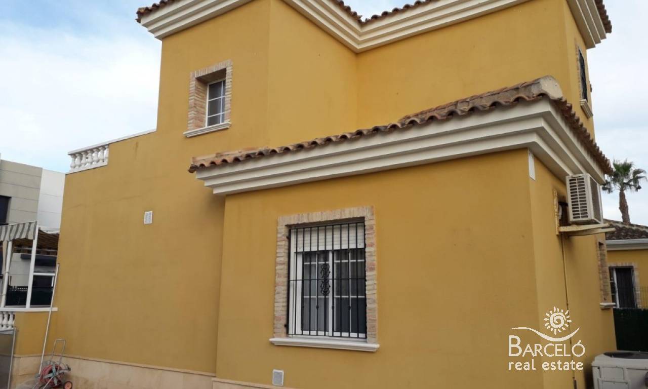 Villa independiente en venta en El Raso / Guardamar del Segura. Esta villa con una superficie habitable de 110 m² se distribuye en 2 plantas y consta de 3 dormitorios, 2 baños, salón / comedor con cocina semiabierta cocina y un trastero. Esta villa se encuentra en El Raso, un suburbio de Guardamar del Segura, a poca distancia de los principales servicios ya solo 10 minutos del centro de Quesada y Guardamar.