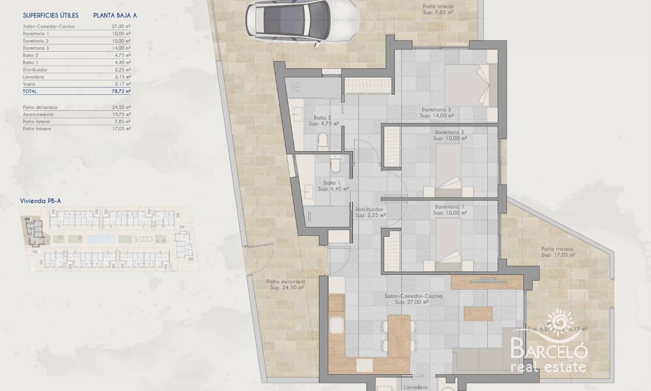 Viviendas de Obra Nueva en Torre-Pacheco, Costa Cálida Bungalows modernos con características excepcionales Descubra un nuevo complejo residencial en Torre-Pacheco, que ofrece 24 elegantes bungalows de 2 y 3 dormitorios. Elija entre viviendas en planta baja con amplias terrazas o unidades en primera planta con terrazas y solariums privados. Cada solarium incluye una pérgola, una zona de barbacoa y una cubierta reforzada, perfecta para instalar un jacuzzi. Todas las viviendas cuentan con una plaza de aparcamiento y aire acondicionado totalmente instalado, lo que garantiza el confort durante todo el año. Ubicación privilegiada en Torre-Pacheco Enclavada en el corazón de Torre-Pacheco, esta urbanización disfruta de la proximidad a los servicios esenciales, incluyendo supermercados, tiendas, bares y restaurantes. El vibrante centro de la ciudad, con su encantador ambiente español, está a poca distancia. Para los amantes de la playa, el impresionante Mar Menor está a sólo 10 minutos en coche, ofreciendo arenas doradas y aguas cristalinas. Disfrute de excelentes servicios comunitarios El complejo cuenta con una zona comunitaria bellamente ajardinada con exuberantes jardines y una piscina brillante, proporcionando un refugio sereno para relajarse y descansar. El clima soleado de la zona, con una media de 320 días de sol al año, complementa a la perfección estos espacios al aire libre. Rodeado de campos de golf galardonados Torre-Pacheco es un paraíso para los golfistas, rodeado de algunos de los campos de golf más renombrados de España. Estos campos se encuentran a poca distancia en coche, por lo que es un lugar ideal para los amantes del golf. Conexiones estratégicas con destinos clave Aeropuerto Internacional de Murcia: 20 km (aproximadamente 20 minutos en coche). Estación de tren: A sólo 700 metros, ofreciendo cómodas opciones de viaje. Centros Comerciales: Varios grandes complejos comerciales en un radio de 15 km. Playas: Las hermosas playas de la Costa Cálida se encuentran a escasos 10 km. Puertos y Puertos Deportivos: El puerto deportivo más cercano está a unos 12 km, perfecto para navegar y practicar deportes náuticos. Le espera un estilo de vida más saludable La Costa Cálida es famosa por su excepcional calidad de vida. Con baja humedad, aire limpio y un clima subtropical, esta zona es una de las más saludables de España. La perfecta combinación de belleza natural, brisa marina y abundante luz solar hacen de Torre-Pacheco un destino muy solicitado. Actúe ahora para asegurarse la casa de sus sueños No pierda esta oportunidad de poseer una casa moderna en una ubicación privilegiada. Póngase en contacto con nosotros hoy mismo para obtener más información sobre esta increíble promoción o para concertar una visita.