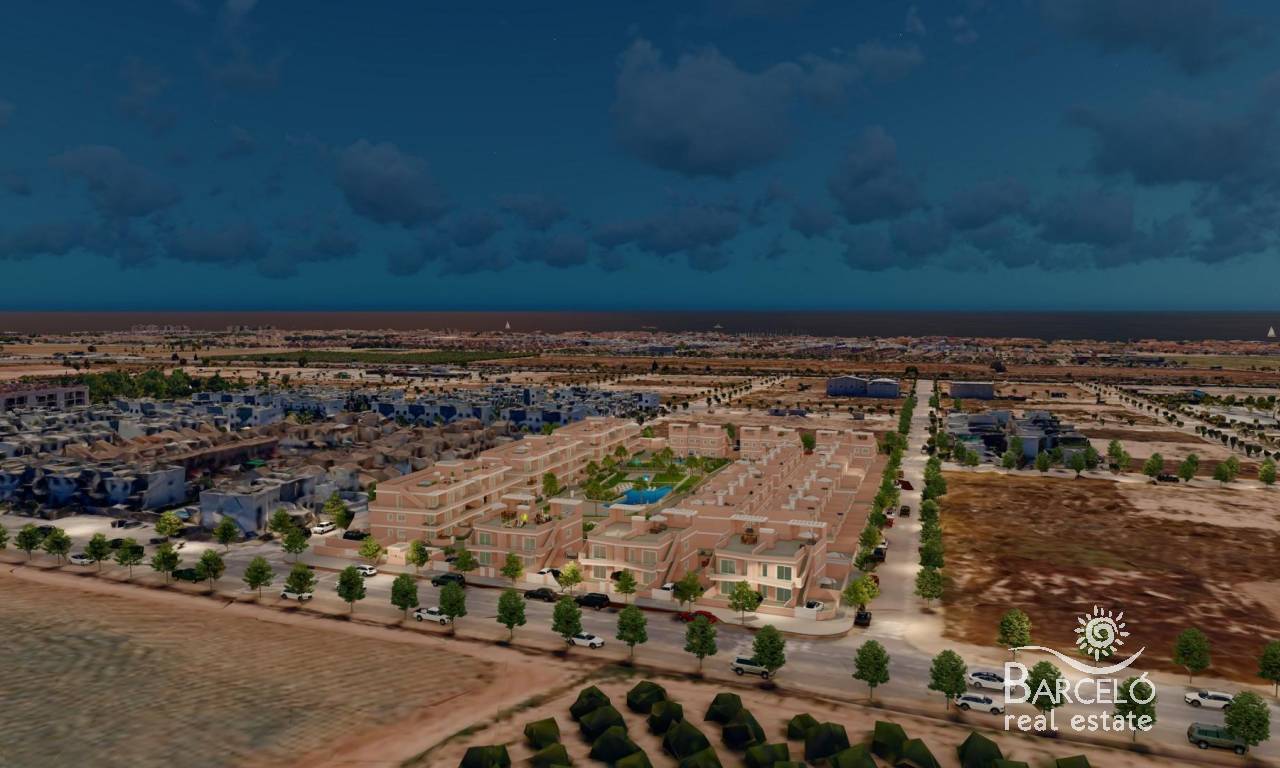 Exclusivo Residencial de Obra Nueva en Pilar de la Horadada, Costa Blanca Viviendas Modernas Cerca del Mar Descubra este nuevo complejo residencial en Pilar de la Horadada, una ubicación privilegiada en la Costa Blanca. A solo 2 km de la playa, este proyecto ofrece una amplia variedad de viviendas de 3 dormitorios y 2 baños, con aparcamiento privado incluido en el precio. El residencial cuenta con amplias zonas comunes, incluyendo una piscina comunitaria, jardines paisajísticos y una zona de juegos infantiles, ideales para el disfrute de toda la familia. Diferentes Tipologías para Adaptarse a su Estilo de Vida Esta promoción ofrece diversas opciones de vivienda: Plantas bajas con jardín privado. Apartamentos en planta intermedia con amplias terrazas. Áticos con solárium privado. Bungalows en planta baja con jardín privado. Bungalows en planta alta con jardín y solárium privado. Adosados y pareados con jardín y solárium. Todas las viviendas han sido diseñadas con un estilo moderno y funcional, utilizando materiales de alta calidad y acabados contemporáneos. Equipamiento y Calidades Las viviendas cuentan con: Preinstalación de aire acondicionado por conductos. Carpintería exterior de aluminio con rotura de puente térmico y doble acristalamiento. Puerta de acceso acorazada para mayor seguridad. Sistema de aerotermia para producción eficiente de agua caliente. Armarios empotrados con iluminación LED. Muebles de baño y mamparas incluidos. Pilar de la Horadada: Un Lugar Privilegiado para Vivir Pilar de la Horadada es un municipio costero en el extremo sur de la Costa Blanca, con un clima excepcional y una excelente calidad de vida. Su animada calle principal ofrece una amplia variedad de tiendas, supermercados, restaurantes y servicios esenciales. A solo 5 minutos en coche, encontrará las impresionantes playas de Torre de la Horadada y Mil Palmeras, con arena dorada y un encantador paseo marítimo. Además, la zona cuenta con carriles bici, rutas de senderismo y múltiples actividades deportivas. Distancias a Puntos Clave Campo de golf Lo Romero – 5 km (10 minutos en coche). Aeropuerto de Corvera (Murcia) – 40 km (40 minutos en coche). Aeropuerto de Alicante – 55 km (55 minutos en coche). Centro Comercial Zenia Boulevard – 15 km (15 minutos en coche). Puerto Deportivo Torre de la Horadada – 3 km (5 minutos en coche). Solicite Más Información Hoy Mismo No deje pasar esta oportunidad de adquirir una vivienda de obra nueva en una de las mejores zonas de la Costa Blanca. Contáctenos ahora para recibir más detalles y concertar una visita.