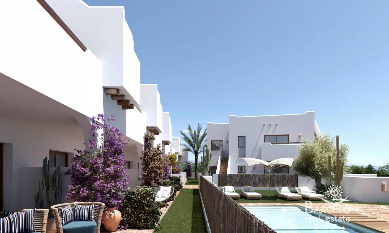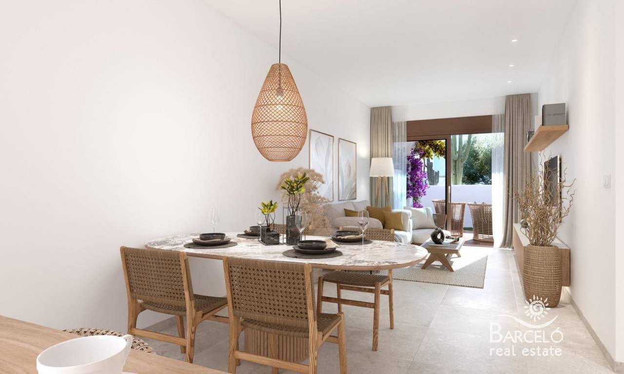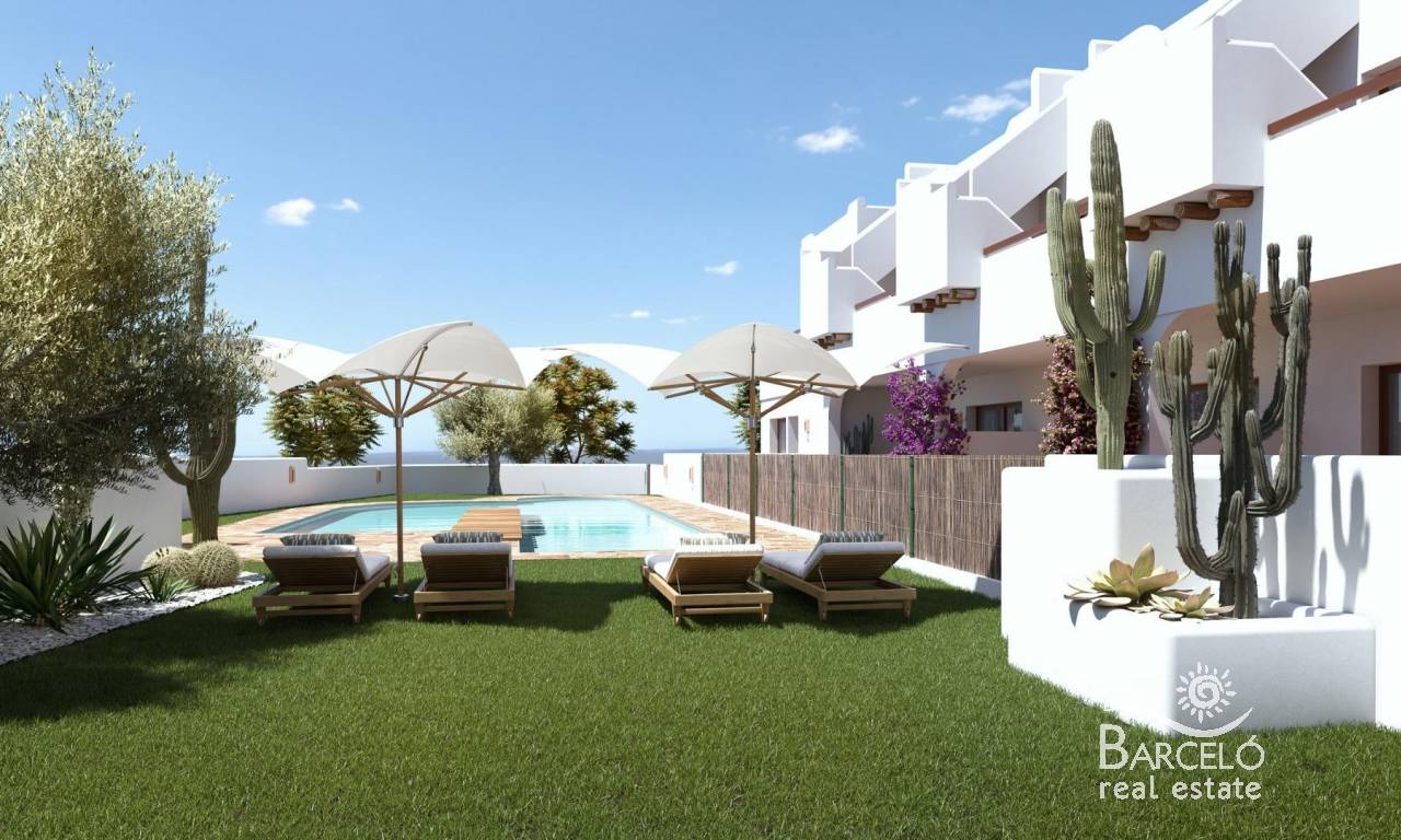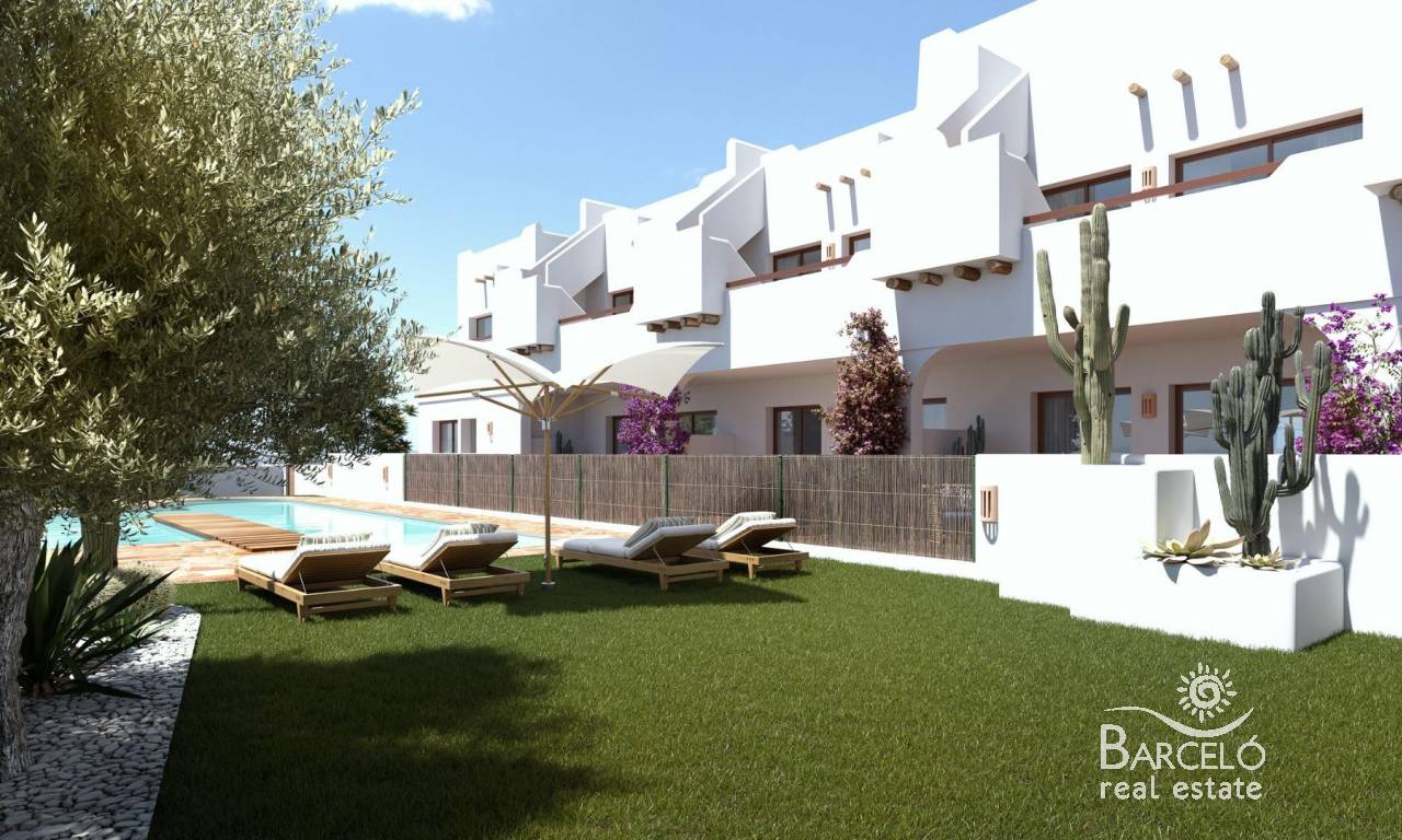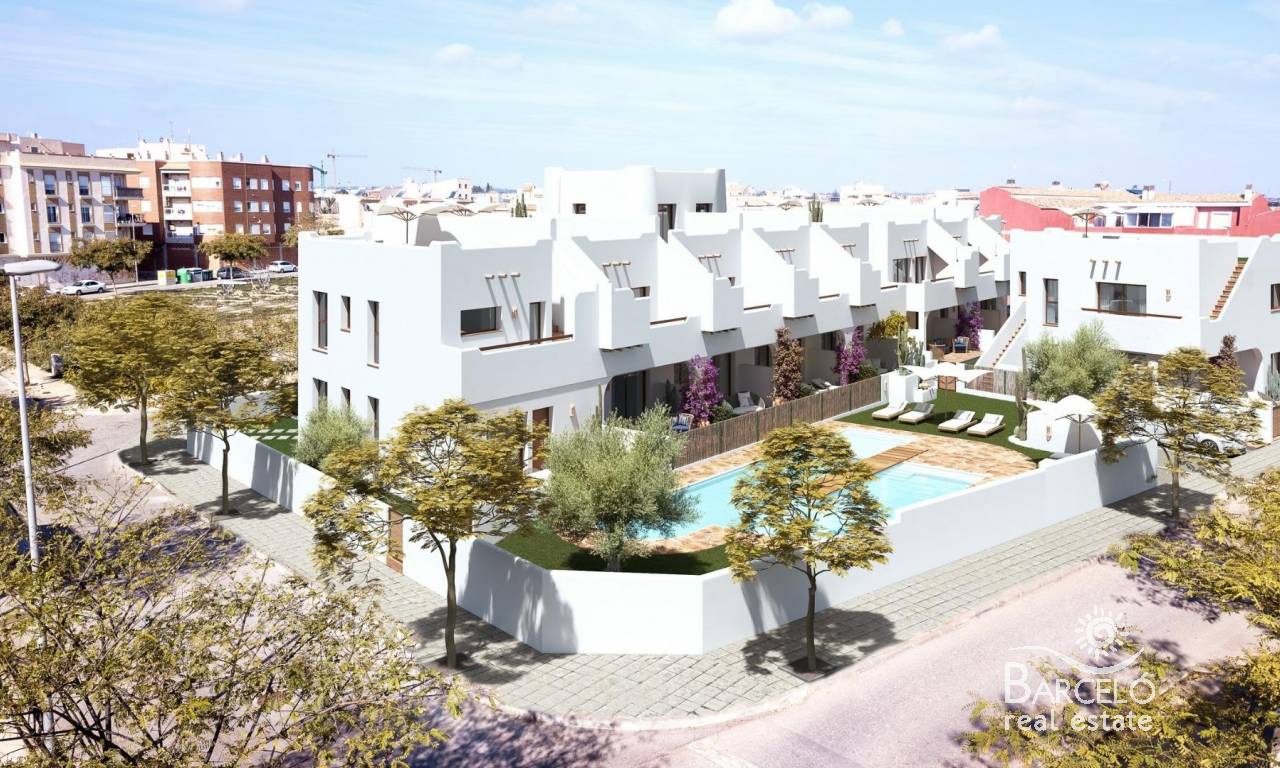 Exclusivos Bungalows de Obra Nueva en Pilar de la Horadada – Ubicación Privilegiada Un Residencial Único para Disfrutar del Mediterráneo Bienvenido a este exclusivo residencial de 16 bungalows y un adosado en esquina de 2 y 3 dormitorios, diseñados para quienes buscan calidad de vida y confort en la Costa Blanca. Ubicado a solo unos pasos del centro de Pilar de la Horadada, este moderno complejo ofrece un entorno tranquilo, con todas las comodidades al alcance. Las viviendas están diseñadas para maximizar el bienestar de sus propietarios: Plantas bajas con jardín delantero y patio trasero. Plantas altas con terraza privada y solárium con vistas espectaculares. Un adosado en esquina, con más amplitud y privacidad. El residencial cuenta con una amplia piscina comunitaria rodeada de zonas verdes, ideales para relajarse bajo el sol mediterráneo. Diseño Moderno y Acabados de Alta Calidad Cada vivienda ha sido cuidadosamente diseñada para ofrecer luminosidad, funcionalidad y estilo contemporáneo. Puerta de entrada acorazada para mayor seguridad. Cocina de concepto abierto, integrada en el salón para mayor comodidad. Baños modernos con platos de ducha e instalación de mamparas de vidrio templado. Preinstalación de aire acondicionado en salón y dormitorios. Producción de agua caliente mediante aerotermo individual para mayor eficiencia energética. Plantas altas con preinstalación de cocina exterior en los soláriums. Además, la urbanización dispone de zona de aparcamiento para bicicletas y una plaza de parking privada por vivienda. Pilar de la Horadada – Un Lugar para Vivir Todo el Año Situado en la provincia de Alicante, Pilar de la Horadada es un destino ideal para quienes buscan combinar tranquilidad, naturaleza y servicios de primer nivel. Sus hermosas playas, como la Playa de las Higuericas, se encuentran a pocos minutos, ofreciendo arena dorada y aguas cristalinas del Mediterráneo. Este residencial goza de una ubicación inmejorable, con acceso a supermercados, tiendas, restaurantes y espacios de ocio, todo a poca distancia a pie. La zona también cuenta con rutas de senderismo, carriles bici y una gran oferta deportiva. Distancias Claves a los Principales Puntos de Interés Playa de Torre de la Horadada – 3 km (5 min en coche). Campo de Golf Lo Romero – 5 km (10 min en coche). Centro Comercial La Zenia Boulevard – 15 km (15 min en coche). Aeropuerto de Corvera (Murcia) – 40 km (40 min en coche). Aeropuerto de Alicante – 55 km (55 min en coche). Reserve Hoy su Vivienda en la Costa Blanca No pierda la oportunidad de adquirir una vivienda de obra nueva en una ubicación inmejorable. Contáctenos hoy mismo para más información y para programar una visita.
