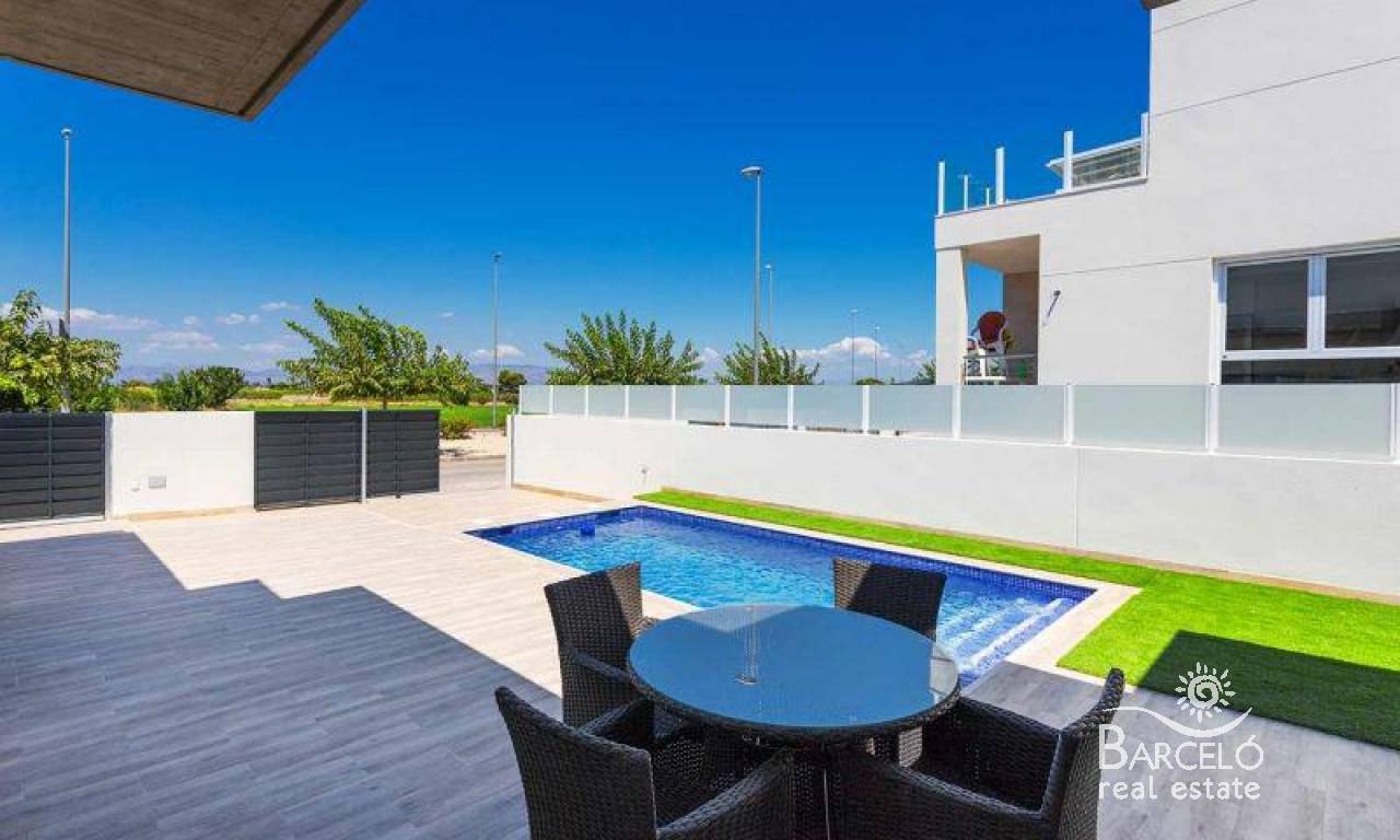 EL ESTILO DE VIDA MEDITERRÁNEO TODO EN UN NIVEL El pueblo de Daya Nueva es la combinación perfecta entre un estilo de vida rural tranquilo y confortable y las vibrantes zonas costeras de la Costa Blanca a un corto trayecto en coche. Esta promoción de villas semi independientes y independientes de obra nueva ha sido diseñada con toda la atención al detalle y construido con un alto nivel de detalles. Todas las villas tendrán su propia piscina privada. TU PROPIO ESPACIO PARA VIVIR, TODO A UN NIVEL Se ha incorporado un enfoque luminoso, fresco y moderno en el diseño. Ubicadas en un pequeño pueblo en el sur de la provincia de Alicante. El pueblo se llama Daya Nueva. Villas de nueva construcción en una sola planta en la parte nueva de Daya Nueva. A pocos minutos andando del centro del pueblo. La propiedad consta de 3 dormitorios, 2 baños y una piscina privada de 18m2. Salón / comedor con techo de doble altura, cocina abierta, luz natural y opción para solarium con un coste extra. El dormitorio principal tiene opción de walk in closet y baño en suite. Situado en una zona residencial nueva y tranquila, a unos 10 minutos de la playa de La Marina del Pinet y Guardamar del Segura. Fácil acceso a la autopista A-70 y aproximadamente a 25 minutos del aeropuerto internacional de Alicante.