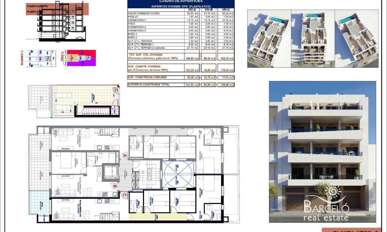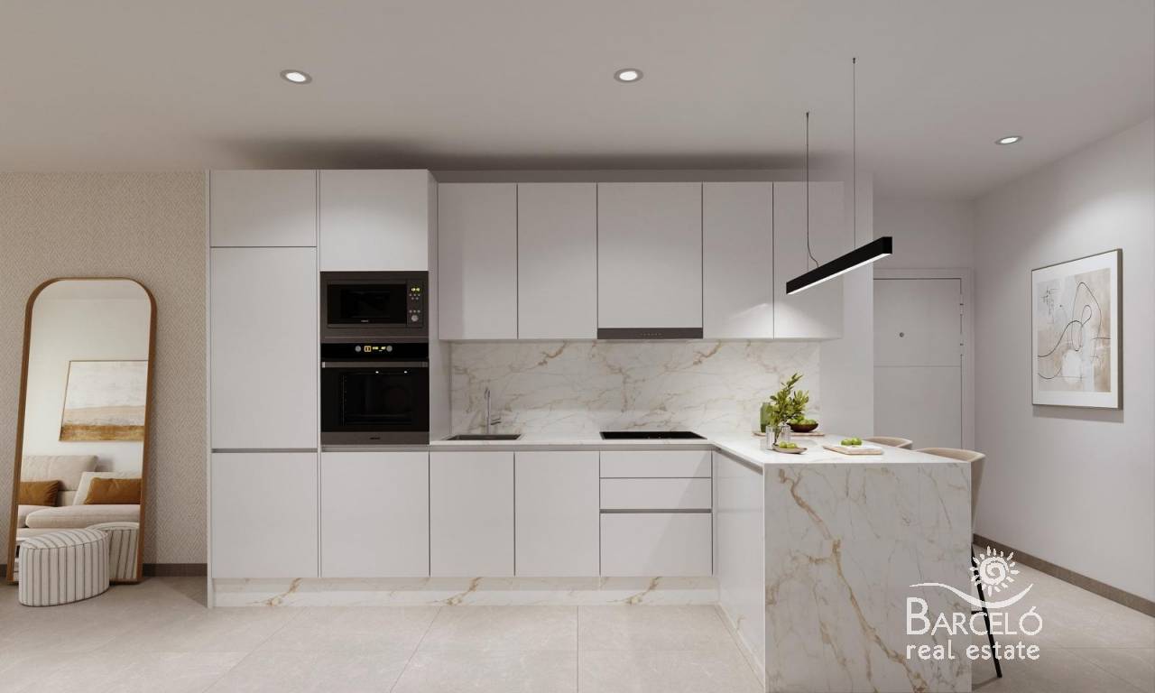 Apartamentos de nueva construcción en Torrevieja A solo 600 m de la Playa del Cura Ubicación privilegiada en el corazón de Torrevieja Descubra estos apartamentos y áticos a estrenar en una de las zonas más cotizadas de Torrevieja, a solo 600 m de la Playa del Cura y a 300 m del paseo marítimo. Situado en el centro de la ciudad, este animado barrio ofrece todos los servicios esenciales a poca distancia, incluyendo supermercados, tiendas, restaurantes, cafeterías y transporte público. Torrevieja es una conocida ciudad costera de la Costa Blanca, famosa por su clima mediterráneo templado, su animado ambiente y su estilo de vida junto al mar durante todo el año. Apartamentos modernos con distribuciones espaciosas Esta exclusiva promoción nueva consta de solo 12 apartamentos y áticos de 1 o 3 dormitorios, diseñados para ofrecer comodidad, funcionalidad y estilo contemporáneo. Los apartamentos de las plantas intermedias cuentan con amplias terrazas, mientras que los áticos disfrutan de un solárium privado adicional, ideal para tomar el sol o comer al aire libre. Todas las viviendas incluyen una cocina abierta conectada con el salón-comedor, lo que crea interiores luminosos y acogedores. Los dormitorios cuentan con armarios empotrados y los baños están totalmente equipados con muebles, espejos y mamparas de ducha. Hay plazas de aparcamiento opcionales disponibles con un coste adicional. Acabados de calidad y características de eficiencia energética Los apartamentos están construidos con materiales de alta calidad y un fuerte enfoque en la eficiencia energética. La carpintería exterior de aluminio incluye tecnología de rotura de puente térmico y doble acristalamiento para el aislamiento térmico y acústico. Las persianas motorizadas añaden comodidad y seguridad. Cada vivienda cuenta con preinstalación de aire acondicionado y calefacción por conductos, puertas de entrada reforzadas y puertas interiores lacadas en blanco. El agua caliente se produce mediante un sistema aerotérmico, lo que reduce el consumo de energía y mejora la sostenibilidad. Solárium en la azotea con piscina comunitaria Los residentes pueden disfrutar de un solárium exclusivo en la azotea con piscina comunitaria, accesible por ascensor o escaleras. Esta zona privada es perfecta para relajarse, tomar el sol y disfrutar de las vistas panorámicas de la ciudad. Ofrece un refugio tranquilo sobre las animadas calles de Torrevieja y añade un valor significativo a la promoción. Estilo de vida y alrededores de Torrevieja Torrevieja es conocida por su extenso litoral, sus playas de arena y sus emblemáticas salinas. El Parque Natural de las Lagunas de La Mata y Torrevieja se encuentra a unos 5 km y ofrece rutas de senderismo y paisajes únicos. Varios campos de golf, como Villamartin Golf y Las Colinas Golf, se encuentran a entre 12 y 18 km. El puerto deportivo y el puerto de Torrevieja están a aproximadamente 1 km. El aeropuerto de Alicante está a unos 45 km y el aeropuerto internacional de Murcia a unos 65 km, ambos con excelentes conexiones europeas. Su hogar en la costa le espera No pierda esta oportunidad de adquirir un moderno apartamento de nueva construcción cerca de la playa en Torrevieja. Póngase en contacto con nosotros hoy mismo para obtener más información o concertar una visita privada.
