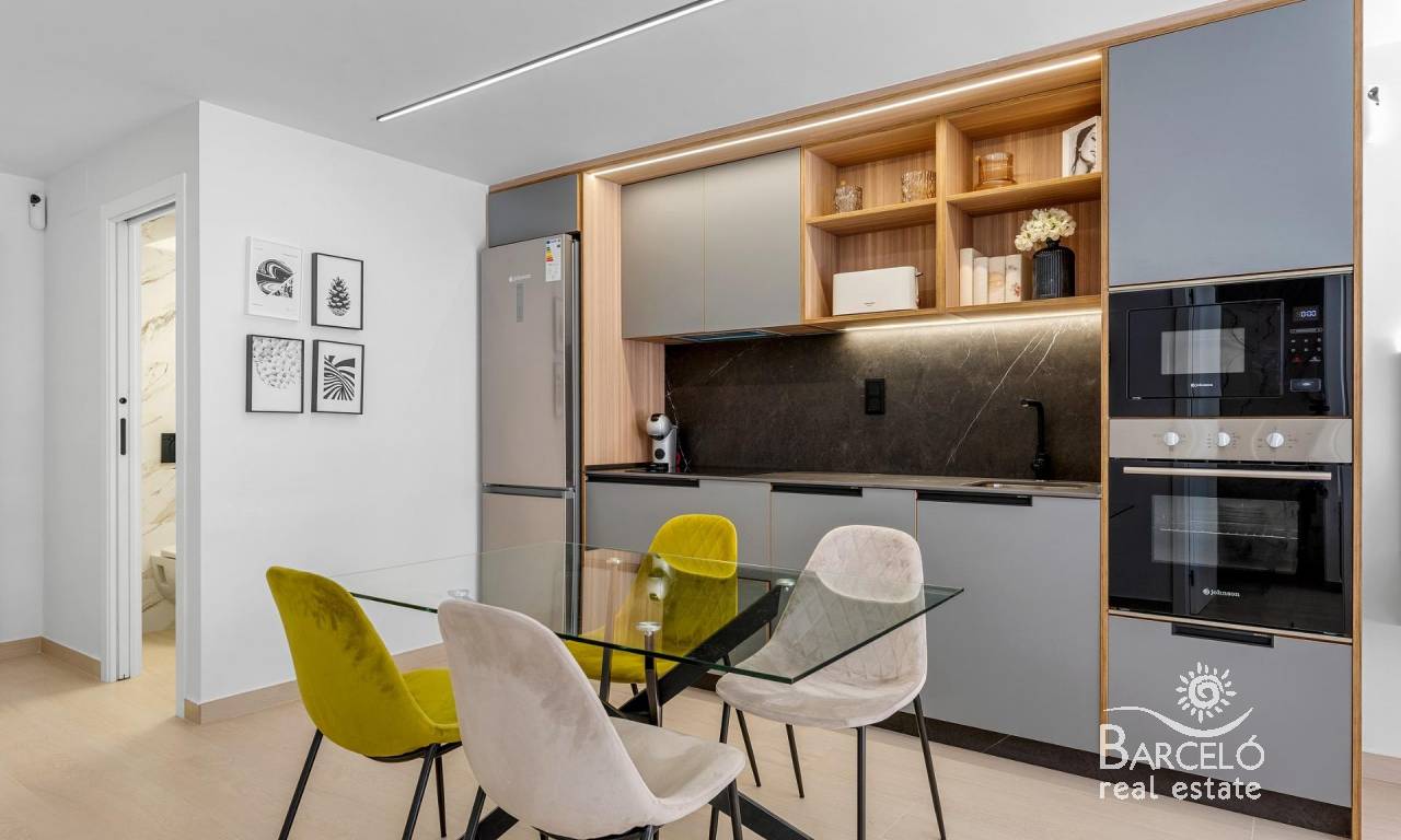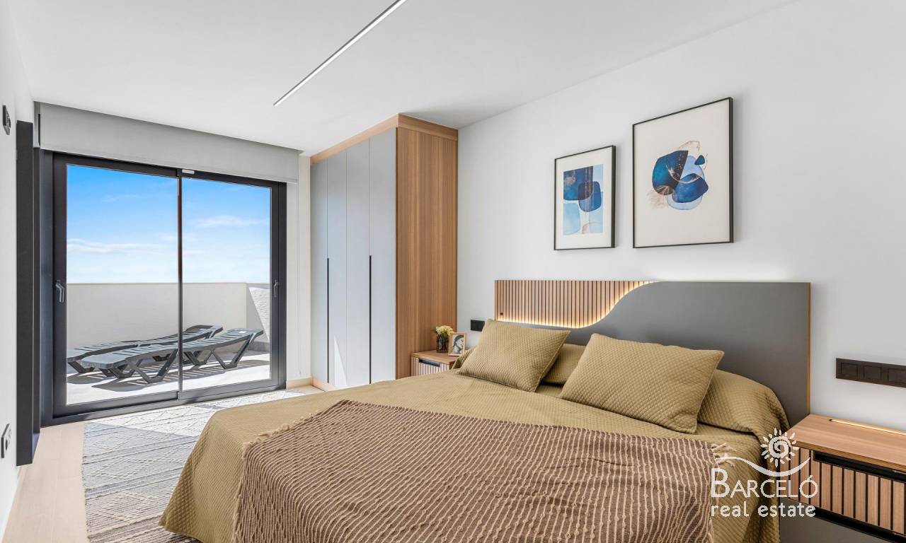 Apartamentos de nueva construcción con licencia turística y vistas a la laguna en El Raso, Guardamar del Segura Exclusivo complejo residencial cerrado en El Raso Este nuevo complejo residencial cerrado se encuentra en El Raso, una zona residencial muy consolidada y muy demandada de Guardamar del Segura. Rodeado de naturaleza y cerca de todos los servicios esenciales, El Raso es conocido por su entorno tranquilo, su proximidad al Parque Natural de la Laguna de La Mata y sus excelentes conexiones con la costa. Esta ubicación ofrece el equilibrio perfecto entre tranquilidad, ocio y potencial de inversión en la Costa Blanca Sur. Modernos apartamentos con licencia turística y uso flexible La promoción constará de 108 apartamentos y áticos de nueva construcción con licencia turística, distribuidos en viviendas en planta baja con jardín privado, apartamentos en primera planta con amplias terrazas y unidades en segunda planta con terraza y solárium privado. Todas las propiedades están diseñadas para maximizar la luz natural, la vida al aire libre y las vistas hacia las zonas verdes y la Laguna de La Mata. Uno de los aspectos más destacados de este proyecto es que todas las propiedades cuentan con licencia de alquiler turístico. Los propietarios pueden disfrutar de uso personal hasta 4 meses al año y alquilar la propiedad durante el resto del año, generando ingresos por alquiler gestionados por una empresa de alquiler profesional para su total tranquilidad. Viviendas totalmente amuebladas y listas para entrar a vivir Todos los apartamentos se entregarán totalmente amueblados y listos para entrar a vivir. El precio incluye muebles, iluminación, electrodomésticos y baños completamente acabados, lo que lo convierte en una inversión ideal llave en mano. Los compradores pueden elegir entre distribuciones de 2 o 3 dormitorios, todas con 2 baños. Los apartamentos de 3 dormitorios son unidades en esquina, lo que ofrece mayor privacidad y mejores vistas. Las propiedades están disponibles en orientaciones sur, este y oeste. Zonas comunes estilo resort El complejo residencial cuenta con amplias instalaciones comunes diseñadas para el descanso y el ocio. Los residentes disfrutarán de una gran piscina, jardines, zona de recepción y reuniones, gimnasio al aire libre, zona de petanca, minigolf y un spa de bienestar. Cada propiedad incluye también una plaza de aparcamiento privada y un trastero en el sótano, accesible por ascensor o escaleras. Ubicación privilegiada cerca de la playa, el golf y los servicios La playa del Moncayo está a solo 5 km, a 10 minutos en coche o 15 minutos en bicicleta. El centro de Guardamar está a 4 km, mientras que las zonas de restauración y ocio de Ciudad Quesada están a solo 5 km. El centro comercial Habaneras, en Torrevieja, se encuentra a 8 km del complejo. Los amantes del golf apreciarán la proximidad a La Finca Golf en Algorfa, a 12 km, La Marquesa Golf, a 6 km, y Vistabella Golf, a 18 km. El aeropuerto internacional de Alicante está a 30 km y el aeropuerto de Murcia Corvera, a unos 75 km. Una inversión inteligente y un estilo de vida mediterráneo Estos apartamentos de nueva construcción con licencia turística en El Raso Guardamar del Segura ofrecen una combinación excepcional de estilo de vida, ubicación y potencial de alquiler. Póngase en contacto con nosotros hoy mismo para recibir más información o asegurar su nueva propiedad en la Costa Blanca.