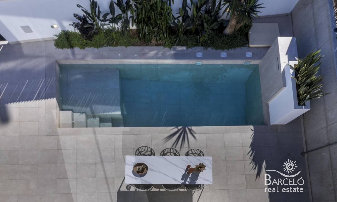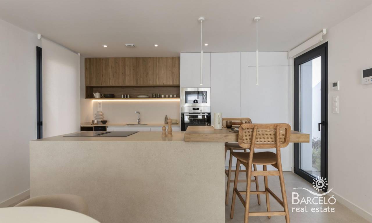 Villas de nueva construcción en Altaona Golf Resort, Murcia, con piscina privada y vistas a la montaña Villas contemporáneas en Altaona Golf Resort, Murcia Descubra una exclusiva promoción de villas modernas situada en Altaona Golf Resort, una de las zonas residenciales más atractivas de Murcia. Rodeado de paisajes naturales y montañas, este complejo de golf seguro ofrece un entorno tranquilo, a la vez que se encuentra a poca distancia en coche de la ciudad de Murcia y de la costa mediterránea. Estas villas de nueva construcción están diseñadas para ofrecer comodidad, privacidad y un relajado estilo de vida mediterráneo. La promoción ofrece una selección de villas de una sola planta con solárium opcional o de dos plantas, todas con tres dormitorios y dos baños, incluido un dormitorio principal con baño en suite. Diseño espacioso con jardines privados y piscina Cada villa está construida en una parcela privada a partir de 300 m², lo que ofrece un amplio espacio exterior para disfrutar del sol durante todo el año. Las propiedades incluyen una piscina privada, zonas ajardinadas y aparcamiento en la propia parcela. La distribución interior está diseñada para maximizar la luz natural y crear una conexión fluida entre la vida interior y exterior. Las zonas de salón y comedor de planta abierta conectan directamente con la terraza y la piscina, creando el escenario perfecto para relajarse o recibir a familiares y amigos. Acabados de calidad y prestaciones modernas Estas villas se han construido utilizando materiales de alta calidad y técnicas de construcción modernas para garantizar el confort y la eficiencia energética. Entre las prestaciones se incluyen una puerta de entrada de seguridad reforzada, cocina totalmente equipada con electrodomésticos, calefacción por suelo radiante en los baños y un paquete de iluminación LED interior. Otras especificaciones incluyen la preinstalación para aire acondicionado por conductos y la producción de agua caliente mediante un sistema aerotérmico de alta eficiencia energética, lo que proporciona tanto sostenibilidad como ahorro de costes. Ubicación privilegiada cerca del golf, la ciudad y la costa Altaona Golf Resort es conocido por su campo de golf de 18 hoyos, su entorno tranquilo y su excelente seguridad, lo que lo hace ideal tanto para residencias permanentes como para casas de vacaciones. El complejo ofrece una combinación única de naturaleza, deporte y proximidad a destinos clave. El centro de la ciudad de Murcia se encuentra a solo 15 km, y ofrece una amplia variedad de tiendas, restaurantes, atracciones culturales y servicios. Las playas del Mar Menor y la costa mediterránea están a unos 20 km, perfectas para disfrutar de días soleados junto al mar. Otras distancias clave incluyen el aeropuerto de Murcia-Corvera a 15 km, la ciudad de Cartagena a 35 km y varios campos de golf a poca distancia en coche, lo que convierte a este lugar en una ubicación ideal para los amantes del golf y los compradores internacionales. Una oportunidad ideal de inversión y de estilo de vida mediterráneo Estas villas de nueva construcción en Altaona Golf Resort ofrecen una excelente oportunidad para disfrutar de un estilo de vida de alta calidad en un entorno natural y seguro, con fácil acceso tanto a la ciudad como a la costa. Póngase en contacto con nosotros hoy mismo para obtener más información o concertar una visita y descubrir su nuevo hogar en Murcia.