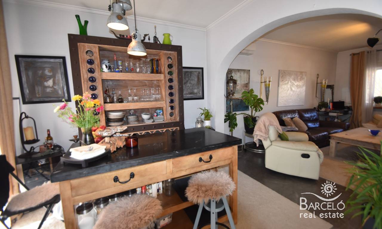 En el interior de la villa se encuentra un amplio salón-comedor, con el espacio adicional que ofrece este modelo de vivienda. Dispone de una cocina independiente, totalmente equipada, con una despensa/lavadero de buen tamaño en el exterior. En la planta baja también hay un aseo de cortesía.