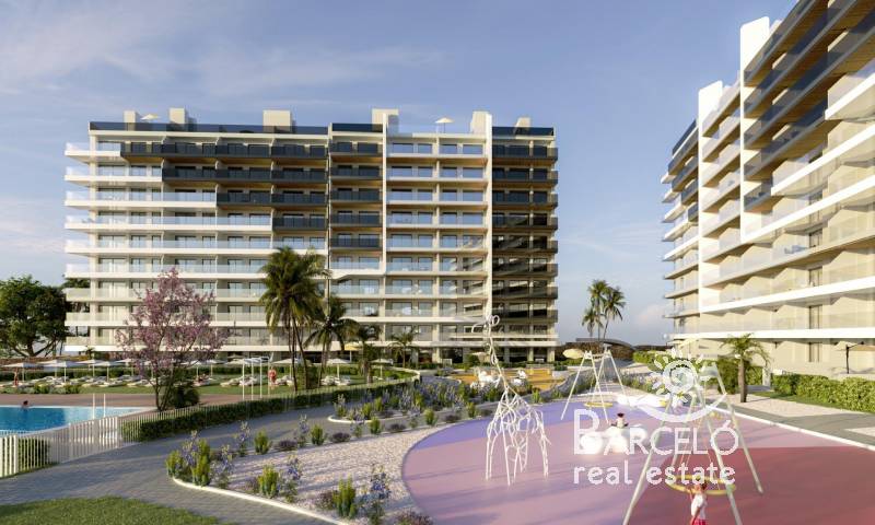 Complejo residencial de obra nueva de 220 apartamentos en Punta Prima, Torrevieja. Apartamentos de 2 y 3 dormitorios y 2 baños, cocina americana con salón, armarios empotrados, todos ellos con amplias terrazas. Bajos con jardín y áticos con solarium. Todas las viviendas se entregan con plaza de garaje subterránea. El residencial dispone de zonas ajardinadas con piscinas y pista de pádel. Los niños pueden disfrutar de su propia piscina infantil, así como de una zona de juegos infantiles. Punta Prima, situada a tan sólo 5 km de Torrevieja, se caracteriza por sus buenas infraestructuras de comunicación y sanitarias, la cercanía al aeropuerto de Alicante, y la cantidad de servicios abiertos durante todo el año. A tan sólo 10 km se encuentran los campos de golf de Villamartín, Campoamor, Las Ramblas, Las Colinas y Lo Romero, así como los centros comerciales de La Zenia y Habaneras.