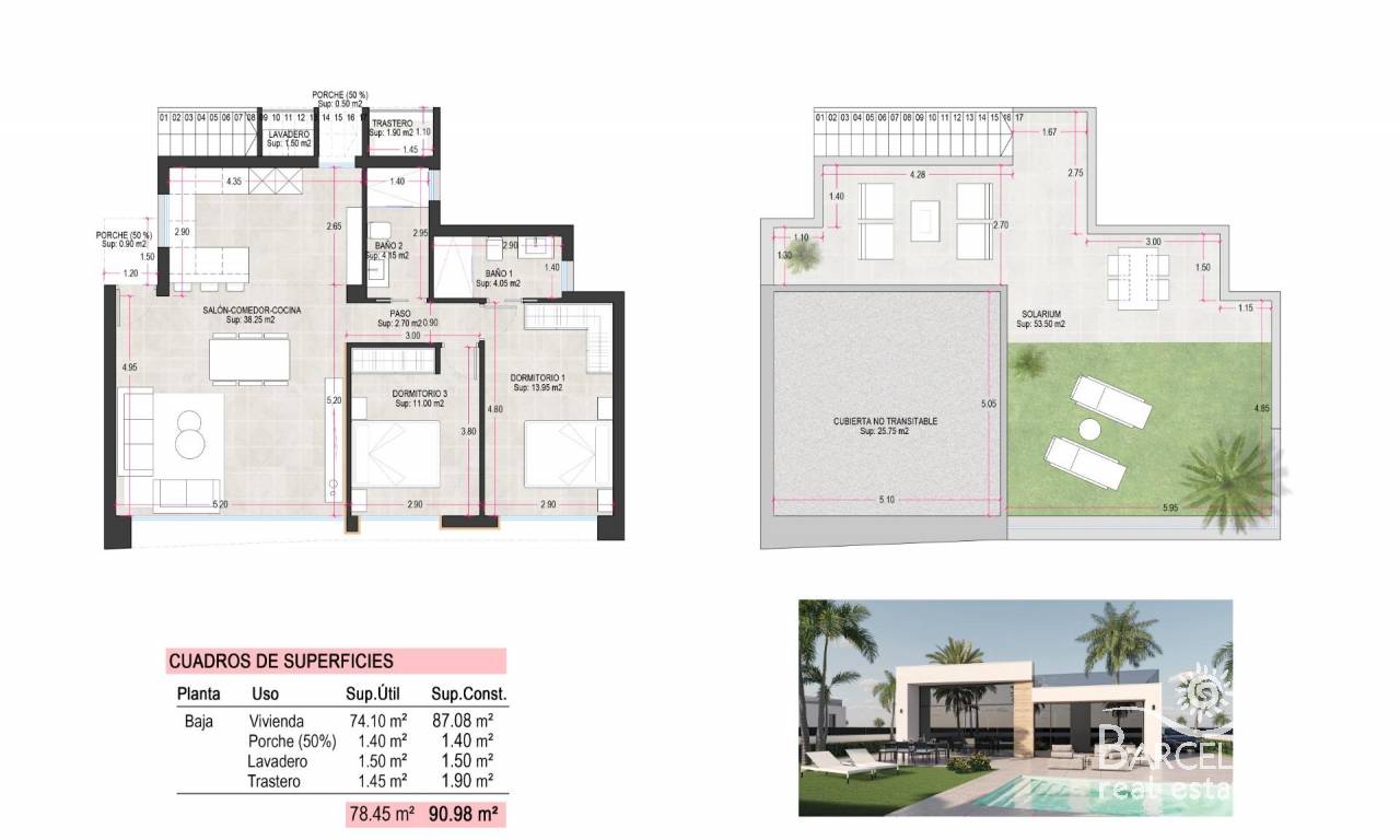 Conjunto residencial de villas de obra nueva en Condado de Alhama. Villas de 2 dormitorios, 2 baños, cocina americana con salón, armarios empotrados, terraza, solárium privado y plaza de aparcamiento en el jardín. Opcional piscina privada con coste adicional. INCLUIDO en el precio: - PLAZA DE GARAJE ASIGNADA en el jardín privado. - SOLARIUM con escalera exterior. - BAÑOS: las mamparas de ducha, tocadores, espejos y la iluminación LED empotrada en el falso techo. - COCINA: la campana extractora, la iluminación LED empotrada en el techo. - AIRE ACONDICIONADO preinstalado. - Los ARMARIOS EMPOTRADOS son forrados. - PERSIANAS ELÉCTRICAS. - Sistema de AEROTERMIA. - Instalación de ABLANDADOR DE AGUA. - PUNTO DE RECARGA para instalación de VEHÍCULO ELÉCTRICO E HÍBRIDO. Situado en el complejo de golf privado y cerrado de Condado de Alhama, entre Alhama de Murcia y Mazarrón. Condado de Alhama Golf Resort es un fantástico Golf Resort con muchas instalaciones y servicios. Centro comercial, polideportivo, variedad de bares y restaurantes, supermercados y más de 25 piscinas y jardines comunitarios. Condado de Alhama Golf Resort tiene su propio campo de golf diseñado por Jack Nicklaus y está a solo 15 minutos de las hermosas playas de Bolnuevo y Mazarrón. Mazarrón tiene más de 35 km de costa, gran parte de los cuales son costas vírgenes. Numerosas playas de la Bahía de Mazarrón han sido galardonadas con Bandera Azul por su calidad. Condado de Alhama Golf Resort está a sólo 20 minutos del nuevo Aeropuerto Internacional de Corvera.