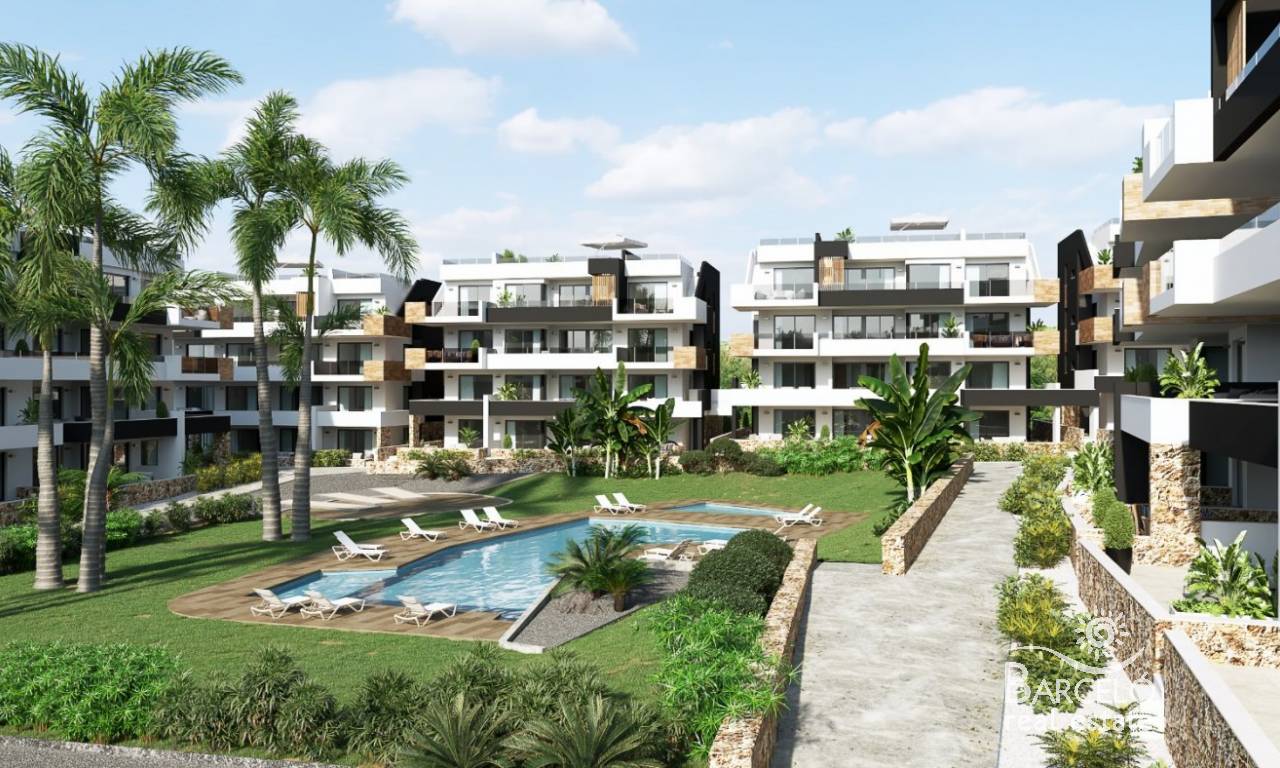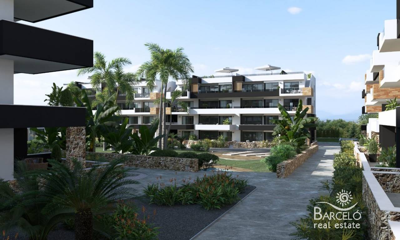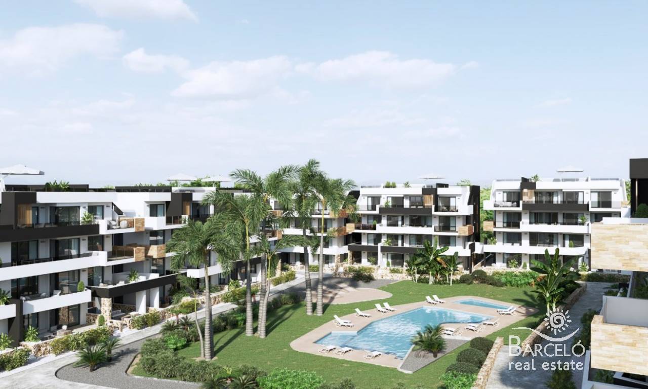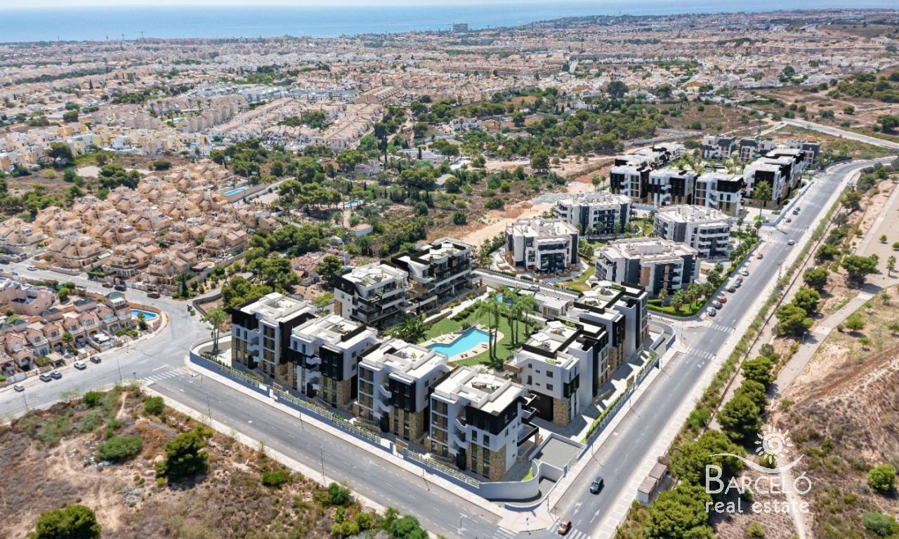 Apartamentos y áticos modernos de nueva construcción totalmente equipados con cocina y salón abiertos, 2 dormitorios, 2 baños, amplias terrazas y preciosas zonas comunes en Los Altos. Puede elegir entre apartamentos en planta baja con jardín, apartamentos en planta media con acogedoras terrazas o apartamentos en planta alta con solárium privado, todos construidos con altos estándares y muy buenas calidades. Los apartamentos se entregan con electrodomésticos, paquete de muebles, aire acondicionado instalado, mobiliario, plaza de aparcamiento y trastero. Hermosa comunidad cerrada que ofrece lindas áreas verdes, piscina, sauna, gimnasio, jacuzzi, parque infantil y cancha de petanca. Los Altos en Orihuela Costa está situado justo al sur de Torrevieja en la Costa Blanca en España. Los Altos se encuentra a sólo 10 minutos de las galardonadas playas de Orihuela Costa, el centro comercial más grande, La Zenia Boulevard o el conocido campo de golf de Villamartín. Los Altos está situado entre las capitales de las provincias de Alicante y Murcia. Los Altos está a 45 minutos del aeropuerto de Alicante y a 50 minutos del aeropuerto de Corvera de Murcia.