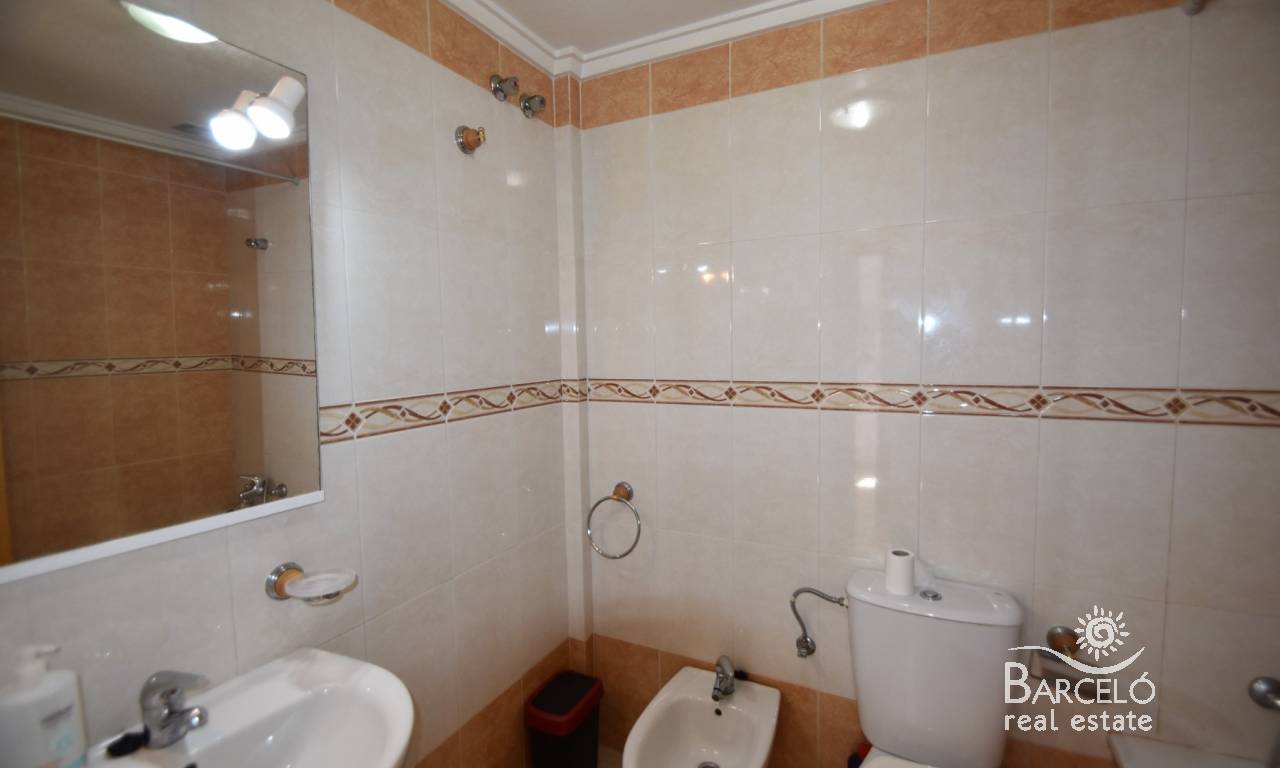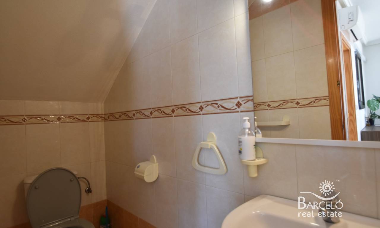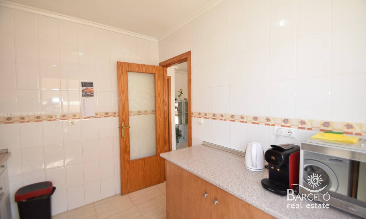 Dans la maison, vous trouverez au premier étage un spacieux séjour avec coin repas, une cuisine séparée entièrement équipée et des toilettes invités. A l'étage se trouvent trois chambres doubles, une salle de bains familiale et un balcon donnant sur la chambre principale. Au deuxième étage il y a un grand solarium avec du soleil toute la journée et une belle vue sur les lacs salés jusqu'à la mer.