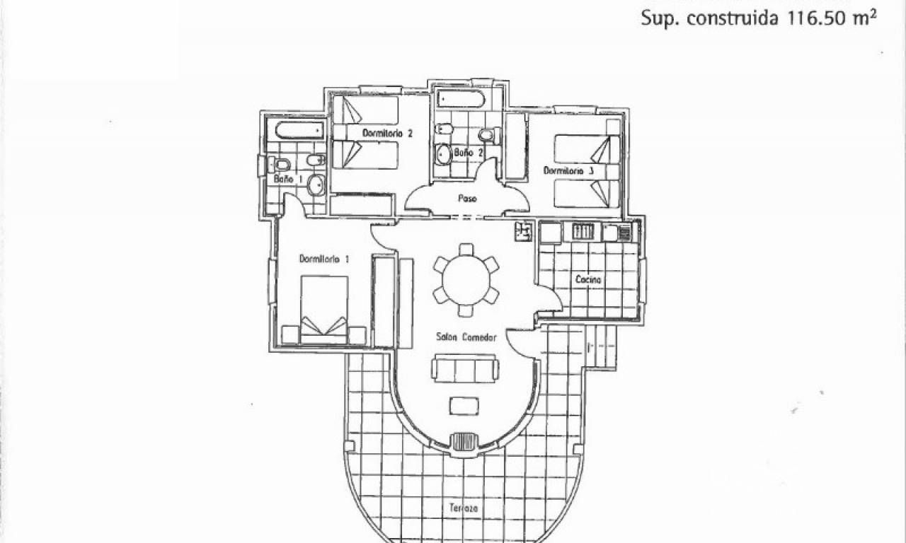 Cette propriété a un terrain de 500m2 et une zone de construction de 116,50 m2. Il dispose de 3 chambres, 2 salles de bains, cuisine, grand salon et terrasse couverte. La chambre principale dispose d'une salle de bains privative.