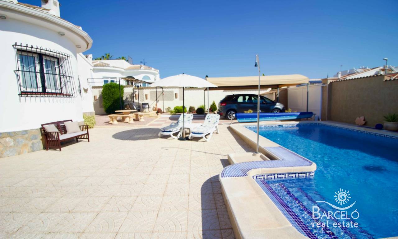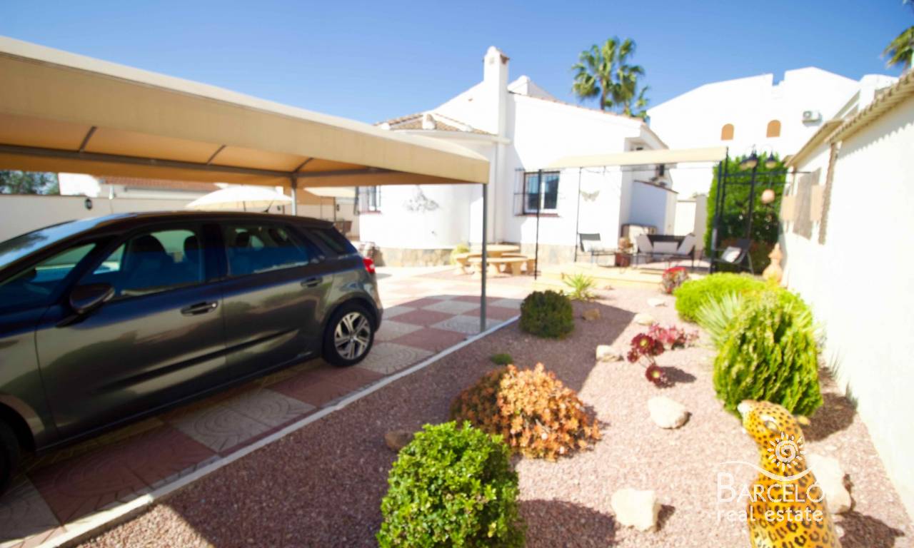 Cette charmante villa individuelle de trois chambres et deux salles de bains, impeccablement entretenue, est située dans le quartier prisé de Pueblo Bravo à Ciudad Quesada, sur la Costa Blanca Sud. Un supermarché réputé, des bars, des restaurants et une école privée sont accessibles à pied. Les commodités de Doña Pepa, notamment une pharmacie, des bars, des restaurants, un centre médical, une école de langues et le magnifique hôtel spa La Laguna, sont également à proximité. À seulement 5 minutes en voiture se trouve la rue principale animée de Quesada, avec ses nombreux restaurants, bars, supermarchés, banques, une station-service, un bowling et deux rues commerçantes. Le superbe golf de La Marquesa, avec son supermarché réputé et ses nombreux bars et restaurants, est également facilement accessible. Le ravissant parc naturel de Recorral, avec ses lacs et ses aires de pique-nique, et le parc aquatique familial de Rojales sont également à quelques minutes en voiture. Les magnifiques plages de sable fin de Guardamar del Segura sont à seulement 10 minutes en voiture.