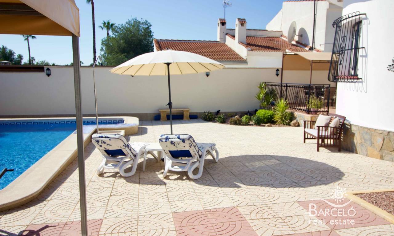 Villa individuelle avec grand terrain, piscine privée chauffée et solarium à Pueblo Bravo.