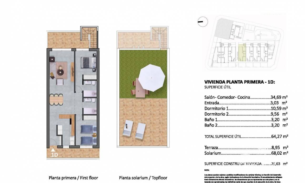 Exclusieve nieuwbouwbungalows in Pilar de la Horadada - Bevoorrechte locatie Een unieke residentie om te genieten van de Middellandse Zee Welkom in dit exclusieve project van 16 bungalows en een hoekwoning met 2 en 3 slaapkamers, ontworpen voor wie op zoek is naar levenskwaliteit en comfort aan de Costa Blanca. Dit moderne complex ligt op loopafstand van het centrum van Pilar de la Horadada en biedt een rustige omgeving, met alle voorzieningen binnen handbereik. De woningen zijn ontworpen om het welzijn van hun eigenaars te maximaliseren: Begane grond met voortuin en patio aan de achterkant. Bovenste verdiepingen met privéterras en solarium met spectaculair uitzicht. Een hoekwoning, met meer ruimte en privacy. De residentie heeft een groot gemeenschappelijk zwembad omgeven door groene zones, ideaal om te ontspannen onder de mediterrane zon. Modern ontwerp en hoogwaardige afwerking Elke woning is zorgvuldig ontworpen om helderheid, functionaliteit en een eigentijdse stijl te bieden. Gepantserde voordeur voor extra veiligheid. Open keuken, voor het gemak geïntegreerd in de woonkamer. Moderne badkamers met douchebakken en installatie van schermen van gehard glas. Pre-installatie van airconditioning in woonkamer en slaapkamers. Warmwaterproductie door individuele ventilatorkachel voor meer energie-efficiëntie. Bovenverdiepingen met pre-installatie van buitenkeuken in de solariums. Bovendien beschikt het complex over een parkeerplaats voor fietsen en een privéparkeerplaats per woning. Pilar de la Horadada - Een plek om het hele jaar door te wonen Pilar de la Horadada ligt in de provincie Alicante en is een ideale bestemming voor wie rust, natuur en eersteklas voorzieningen wil combineren. De prachtige stranden, zoals Playa de las Higuericas, liggen op slechts een paar minuten afstand en bieden goudkleurig zand en kristalhelder mediterraan water. Dit project heeft een onovertroffen locatie, met toegang tot supermarkten, winkels, restaurants en recreatiefaciliteiten op loopafstand. Het gebied beschikt ook over wandelpaden, fietspaden en een breed scala aan sportfaciliteiten. Afstanden naar de belangrijkste bezienswaardigheden Torre de la Horadada Strand - 3 km (5 minuten rijden). Lo Romero Golfbaan - 5 km (10 minuten rijden). Winkelcentrum La Zenia Boulevard - 15 km (15 min. rijden). Luchthaven Corvera (Murcia) - 40 km (40 min. rijden). Luchthaven Alicante - 55 km (55 min. rijden). Reserveer vandaag nog uw woning aan de Costa Blanca Mis de kans niet om een gloednieuwe woning te kopen op een onovertroffen locatie. Neem vandaag nog contact met ons op voor meer informatie en om een bezichtiging te regelen.