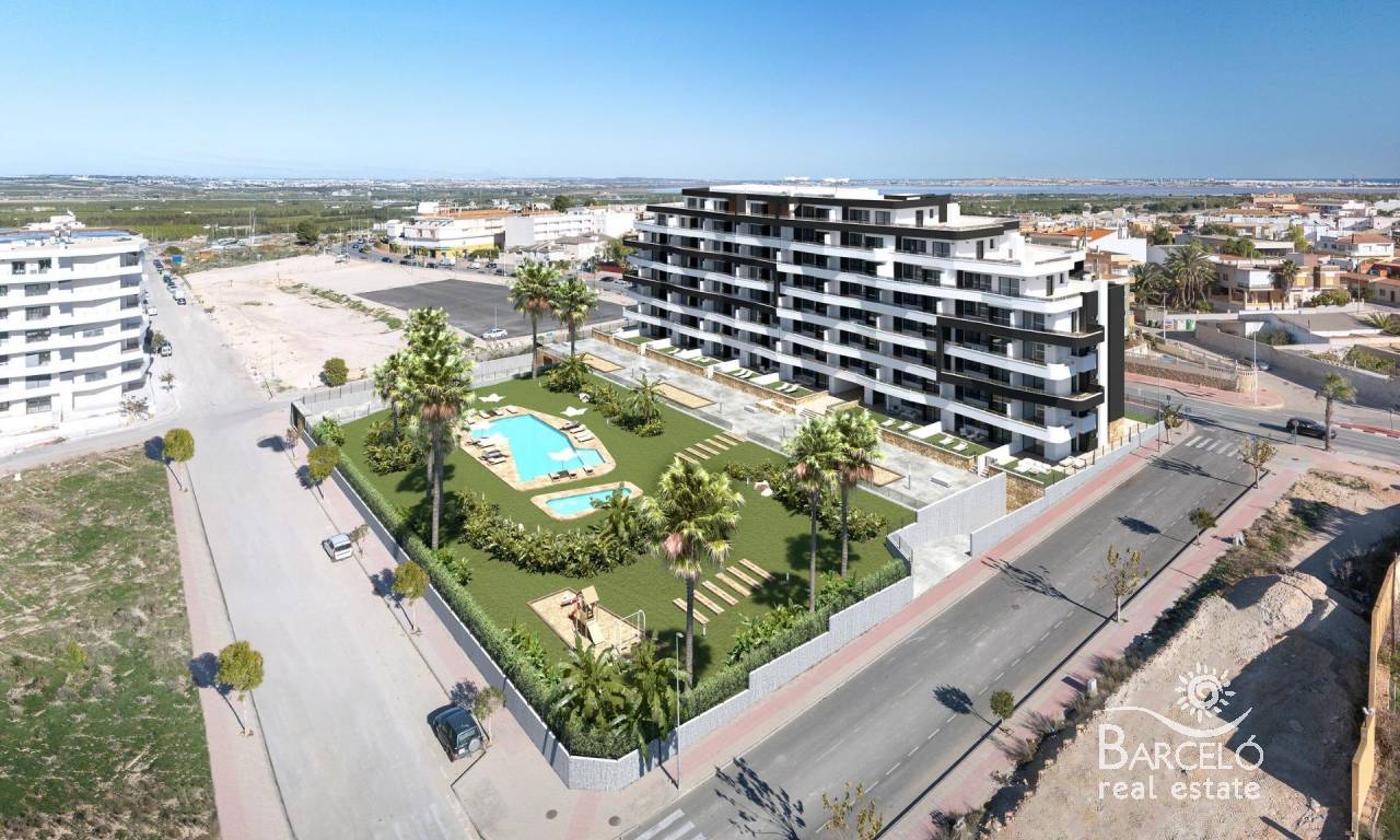 Nieuwbouwproject in San Miguel de Salinas op een steenworp afstand van het stadscentrum Ruime appartementen met indrukwekkende voorzieningen Dit nieuw gebouwde wooncomplex in San Miguel de Salinas biedt moderne flats met 2 slaapkamers en ruime terrassen, zorgvuldig verdeeld over zeven verdiepingen. De omheinde gemeenschap biedt eersteklas faciliteiten, waaronder aparte zwembaden voor volwassenen en kinderen, weelderige groene zones, een kinderspeelplaats en een petanqueterrein. Bevoorrechte locatie aan de Costa Blanca Deze urbanisatie ligt in het charmante stadje San Miguel de Salinas, op een strategische locatie aan de Costa Blanca. Het ligt op loopafstand van het stadscentrum, waar je alle essentiële voorzieningen voor het dagelijks leven vindt, waaronder winkels, restaurants en gezondheidscentra. De woning ligt op korte rijafstand van verschillende bezienswaardigheden: Golfbanen Las Colinas en Campoamor: op slechts 7 km afstand, perfect voor golfliefhebbers. Stranden van Orihuela Costa en Torrevieja: Gelegen op ongeveer 10 km van de residentie, met prachtige zandstranden. Winkelcentra: Zenia Boulevard, een populaire winkelbestemming, ligt op slechts 9 km afstand. Vliegveld Alicante: Op 50 km afstand. Luchthaven Murcia Corvera: Op ongeveer 55 km afstand, ideaal voor regionale verbindingen. Hoogwaardige specificaties Elk appartement is ontworpen met moderne afwerking en functionaliteit in het achterhoofd: Volledig ingerichte keukens met apparatuur inbegrepen. Gemotoriseerde rolluiken. Beveiligde toegangsdeur. Warm water door aerothermische verwarming. Volledig geïnstalleerde airconditioning. LAUNCH AANBIEDING: Meubilair pakket inbegrepen voor de eerste eenheden verkocht. Bovendien hebben alle appartementen een eigen parkeerplaats. Over San Miguel de Salinas San Miguel de Salinas is een pittoreske gemeente in de regio Vega Baja del Segura, onderdeel van de bruisende Valenciaanse Gemeenschap. Het dorp ligt dicht bij de grens met Murcia en biedt een prachtig uitzicht op de lagunes van Torrevieja en La Mata, evenals een rustige, familiale sfeer. Je nieuwe huis wacht Of je nu op zoek bent naar een vakantieverblijf of een permanente verblijfplaats, dit nieuwe project in San Miguel de Salinas combineert luxe, comfort en een onovertroffen locatie. Neem vandaag nog contact met ons op voor een bezichtiging en zet de eerste stap naar je droomhuis aan de Costa Blanca.
