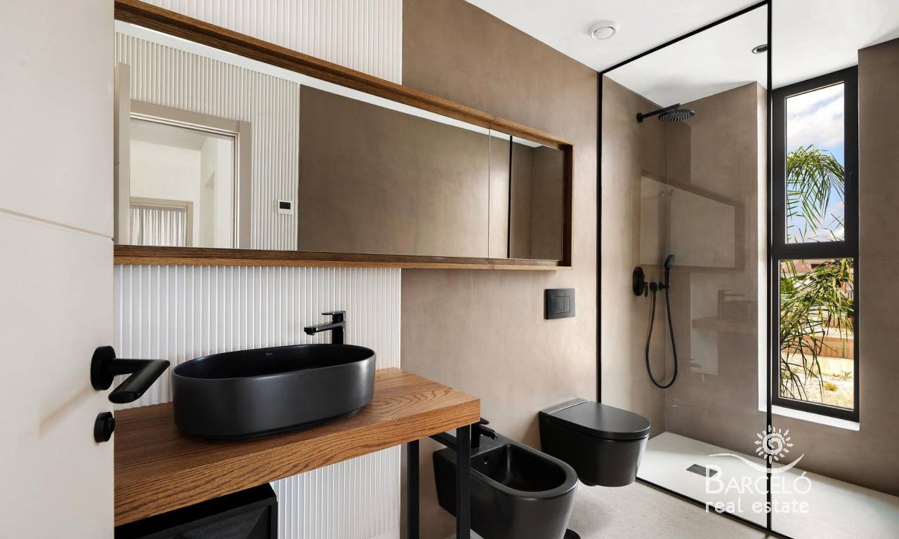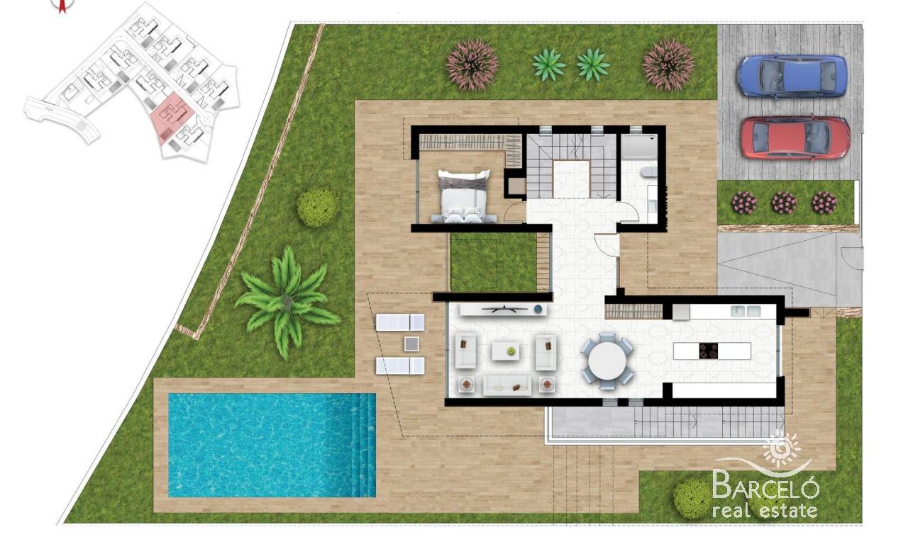 Exclusieve nieuwbouwwoningen met privézwembaden in La Nucía, vlakbij Benidorm Premium omheinde woonwijk met ongeëvenaarde beveiliging Maak kennis met een exclusieve collectie van slechts 10 vrijstaande villa's in La Nucía, grenzend aan de prestigieuze urbanisatie Coblanca van Benidorm en op minder dan 4 km van het strand. Deze beveiligde omheinde urbanisatie biedt de perfecte mix van mediterrane levensstijl, luxe, privacy en gemoedsrust, met 24/7 bewaking van het terrein en een eigen nachtbewaker. Elke villa heeft een eigen tuin met inheemse planten, een privézwembad met waterval en een dakterras met panoramisch uitzicht op de omgeving en de Middellandse Zee. De gemeenschap zorgt voor het volledige onderhoud van de tuin en het zwembad, plus een handige service voor dagelijkse reparaties aan de woning, waardoor deze huizen ideaal zijn voor een stressvrij leven of als vakantieverblijf. Ruim ontwerp en hoogwaardige voorzieningen Deze villa's zijn gebouwd over drie verdiepingen: begane grond, bovenverdieping en een semi-kelder met onafhankelijke toegang en een binnenplaats die zorgt voor natuurlijk licht en ventilatie. Alle woningen beschikken over 4 of 5 slaapkamers en 4 of 5 badkamers, een grote open woon- en eetkamer, een volledig uitgeruste keuken met Miele-apparatuur en een overdekt terras met barbecue. Belangrijkste kenmerken: Installatie van 10 zonnepanelen op het dak Slimme domotica voor verlichting en zonwering Airconditioning met luchtkanalen door de hele villa Dubbele beglazing met thermische onderbreking en gemotoriseerde rolluiken Design badkamers met meubels, spiegels en douchewanden Optionele installatie van een lift Semi-kelder met afwerkingen naar keuze Toplocatie aan de Costa Blanca La Nucía is een goed verbonden en levendige stad op slechts enkele minuten van Benidorm en Altea. De ontwikkeling biedt gemakkelijke toegang tot alle essentiële voorzieningen, waaronder scholen, gezondheidszorg, supermarkten en restaurants. Belangrijkste afstanden: Strand van Benidorm: 3,5 km Strand van Albir: 6 km Luchthaven Alicante: 60 km (ongeveer 45 minuten met de auto) Villaitana Golf: 5 km Winkelcentrum La Marina: 6 km Puerto Deportivo de Altea: 8 km Geniet van het mediterrane leven met alle comfort en veiligheid Dit is een zeldzame kans om een ultramoderne villa te bezitten in een van de veiligste en meest exclusieve gemeenschappen aan de Costa Blanca. Neem vandaag nog contact met ons op voor meer informatie of om een privébezichtiging van de modelwoning te regelen.