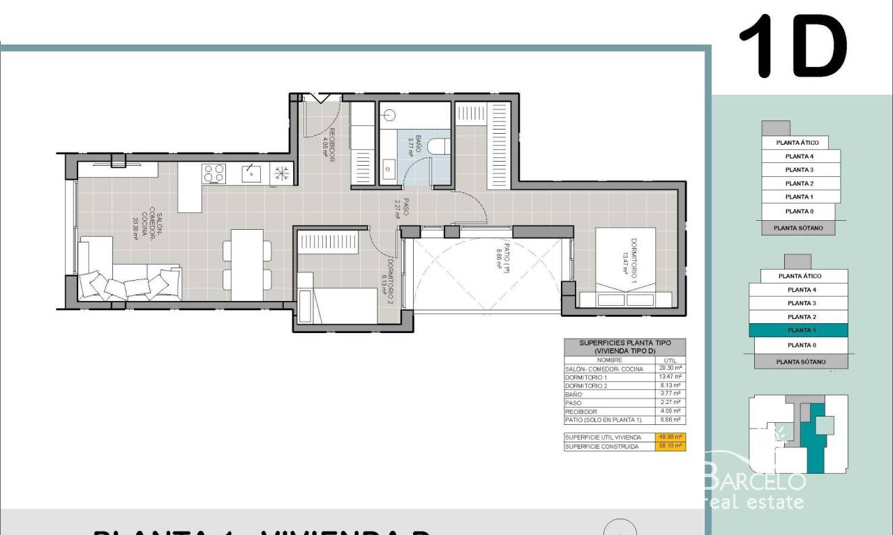 Stijlvol woongebouw op 60 m van het strand El Acequion in Torrevieja 23 functionele woningen met een keuze uit appartementen met 1, 2 en 3 slaapkamers en penthouses met grote privéterrassen. Optionele parkeerplaatsen in de ondergrondse garage voor extra gemak. Geniet van het leven op slechts een steenworp afstand van de Middellandse Zee. Omringd door alles wat u nodig heeft - supermarkten, scholen, restaurants, parken en strandbars - is dit de perfecte plek om het hele jaar door te wonen of om van te genieten als tweede huis. Elke woning is zorgvuldig ontworpen om natuurlijk licht, ruimte en functionaliteit te maximaliseren. Sommige woningen hebben een privéterras of een wasruimte. Op het dak kunnen bewoners genieten van een gemeenschappelijk solarium met een ontspannende lounge en een zwembad, perfect om het hele jaar door van de zon en de zeewind te genieten. Afstanden tot belangrijke punten: Strand van Acequión: 60 m Centrum van Torrevieja: 500 m Jachthaven Marina Salinas: 1,5 km Universitair ziekenhuis van Torrevieja: 5,5 km Golfbaan Villamartín: 10 km Winkelcentrum Habaneras: 3 km Luchthaven Alicante: 45 km Hoogwaardige afwerking in elke woning De woningen zijn gebouwd met hoogwaardige materialen en een eigentijds ontwerp: Buitenkozijnen van aluminium met thermische onderbreking en dubbele beglazing Gemotoriseerde jaloezieën in de slaapkamers. Gepantserde toegangsdeur Keuken uitgerust met wand- en onderkasten Warm water geproduceerd door een aerothermisch systeem Voorbereiding voor airconditioning Badkamers met meubels, spiegels en vaste glazen douchewanden. Lift in het gebouw Woon op een steenworp afstand van de zee en het stadscentrum Torrevieja is een van de meest dynamische en groeiende kustplaatsen aan de Costa Blanca, beroemd om zijn klimaat, stranden, zoutpannen en culturele leven. Dit project is ideaal als permanente woning, investering of tweede huis voor vakanties. Neem vandaag nog contact met ons op voor meer informatie of om een bezichtiging te regelen en uw huis aan zee in Torrevieja te bemachtigen.