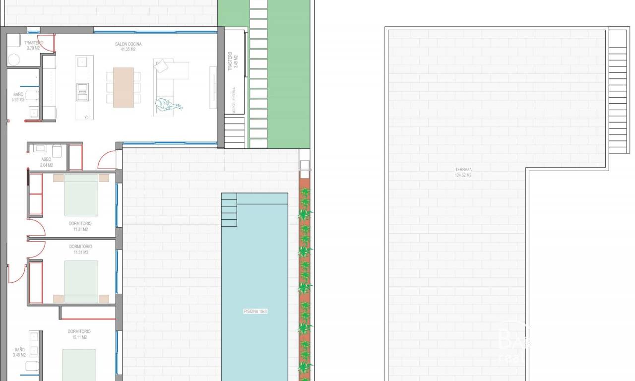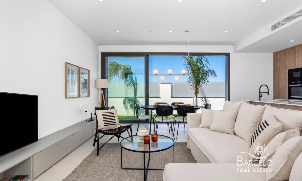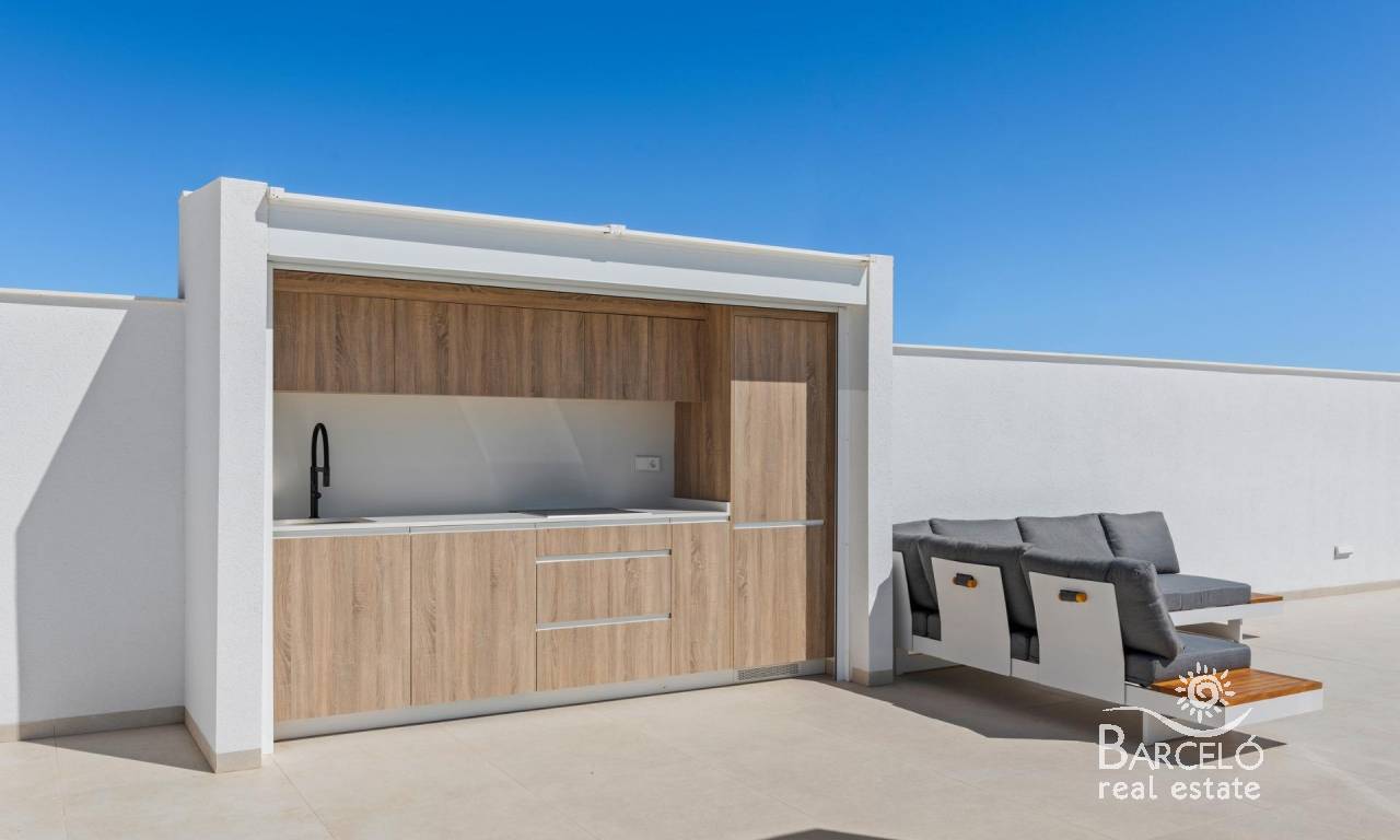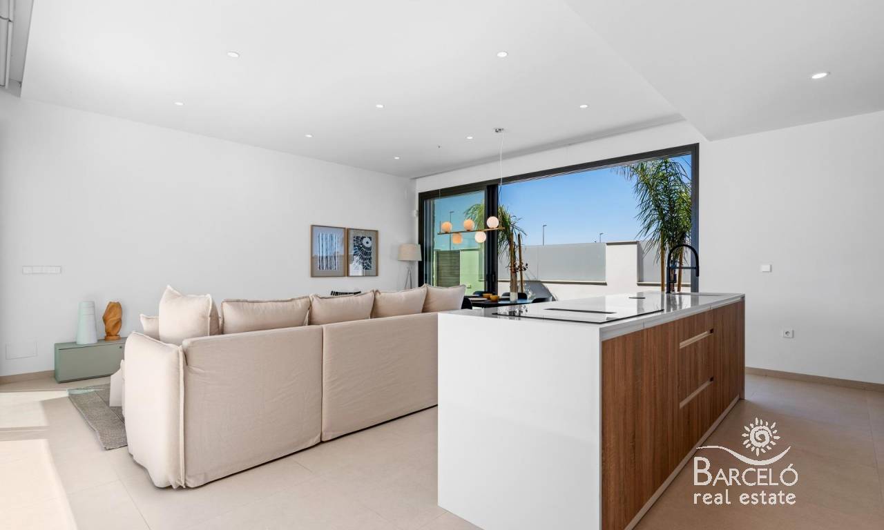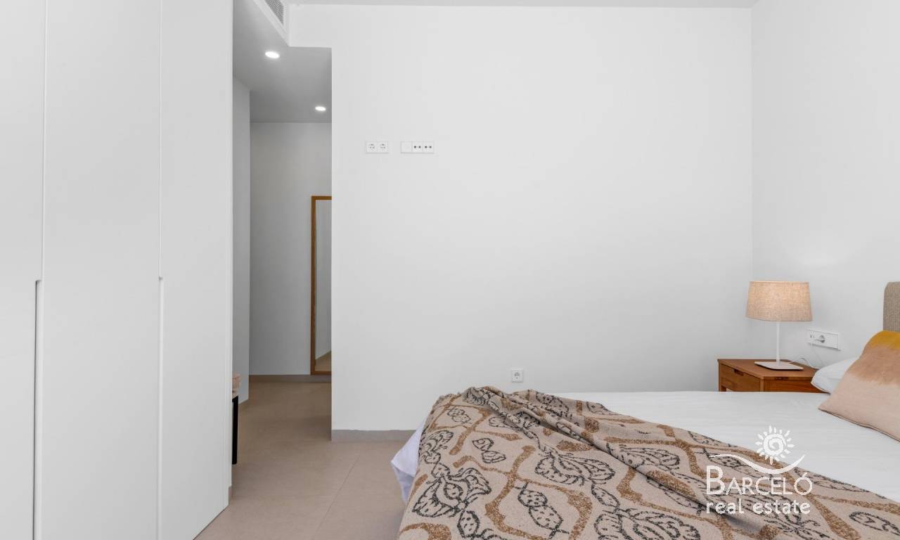 Nieuwbouwwoningen nabij Serena Golf in Los Alcázares Moderne villa's op een toplocatie aan de kust en bij een golfbaan Dit exclusieve nieuwbouwproject biedt moderne villa's in Los Alcázares, op korte afstand van de prestigieuze Serena Golf en op slechts 1,2 km van de zandstranden van de Mar Menor. Deze woningen, gelegen in een van de aantrekkelijkste gebieden van de regio Murcia, combineren een eigentijds ontwerp, comfort en een uitstekende locatie dicht bij de zee, golf en alle dagelijkse voorzieningen. Los Alcazares is een gevestigde kustplaats die bekend staat om zijn ontspannen levensstijl, lange boulevard, watersporten en het milde klimaat het hele jaar door. Ontwerp met één verdieping en privé buitenruimtes Het project bestaat uit stijlvolle villa's met 3 slaapkamers en 2 badkamers, beschikbaar in twee verschillende bouwoppervlakten van ongeveer 106 m² en 130 m². Het grotere model heeft ook een extra gastentoilet. Alle villa's zijn ontworpen op één verdieping, wat praktisch en comfortabel wonen mogelijk maakt. De open keuken, eetkamer en woonkamer komen direct uit op een terras en een privétuin met zwembad, waardoor een ideale ruimte ontstaat voor binnen- en buitenleven. Elke woning beschikt ook over een privé-solarium en een parkeerplaats op het perceel. Hoogwaardige afwerking en moderne uitrusting Deze villa's zijn gebouwd met hoogwaardige materialen en voorzien van moderne voorzieningen. De volledig ingerichte keukens zijn verkrijgbaar in wit glanzend of hout en zijn voorzien van kwartswerkbladen, roestvrijstalen spoelbak, inductiekookplaat met geïntegreerde afzuigkap, oven, magnetron, wasmachine, geïntegreerde koelkast en vaatwasser. De badkamers zijn voorzien van meubilair, spiegels, verlichting en elektrische handdoekverwarmers. Extra voorzieningen zijn onder meer elektrische jaloezieën in de slaapkamers, ledverlichting in het hele pand en een compleet airconditioningsysteem van Fujitsu. Privézwembad en energiezuinig comfort Elke villa heeft een privézwembad met blauwe keramische tegels, geïntegreerde traptreden en witte ledverlichting. Het zwembad is voorbereid voor de installatie van een warmtepomp. De combinatie van efficiënte klimaatbeheersing, moderne constructie en doordacht ontwerp zorgt het hele jaar door voor comfort. Uitstekende verbindingen en belangrijke afstanden De villa's liggen op loopafstand van het centrum van Los Alcazares en zeer dicht bij Serena Golf. Het strand ligt op ongeveer 1,2 km afstand. De stad Cartagena ligt op ongeveer 20 km afstand en biedt een rijk cultureel en gastronomisch aanbod. De internationale luchthaven Murcia Corvera ligt op ongeveer 22 km afstand en de luchthaven van Alicante op ongeveer 90 km. Er zijn ook verschillende golfbanen en jachthavens in de buurt, waardoor deze locatie ideaal is voor zowel permanent wonen als vakanties. Uw ideale huis aan zee en golf Als u op zoek bent naar een moderne nieuwbouwwoning in de buurt van het strand en de golfbaan in Los Alcazares, neem dan vandaag nog contact met ons op voor meer informatie of om een privébezichtiging te regelen.