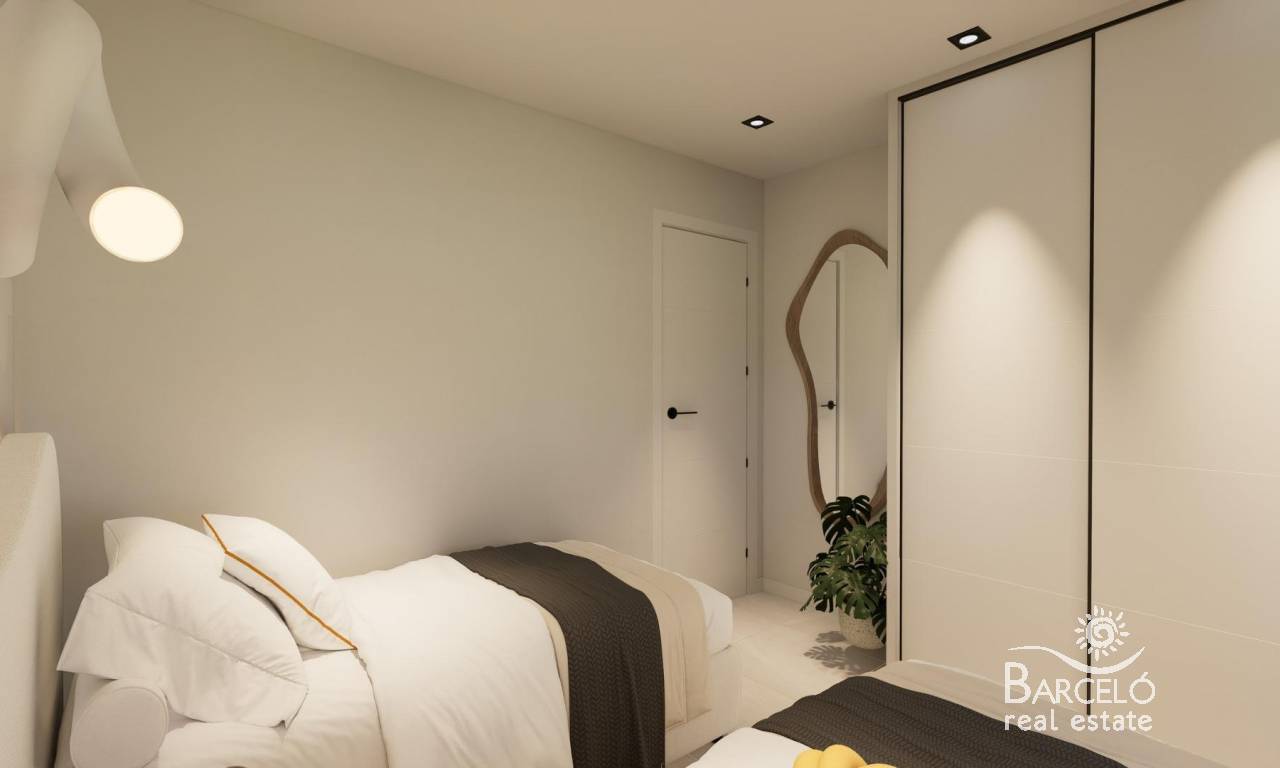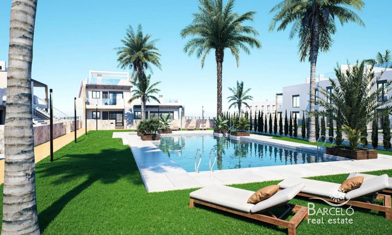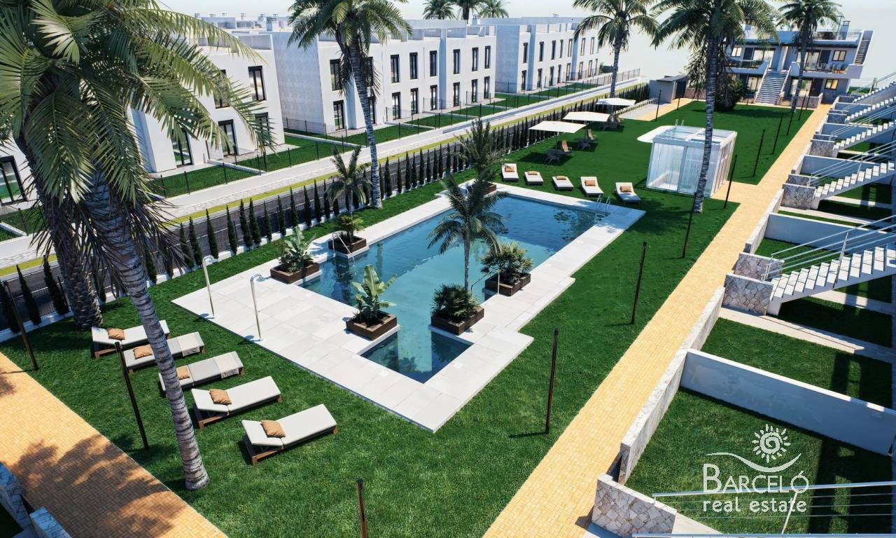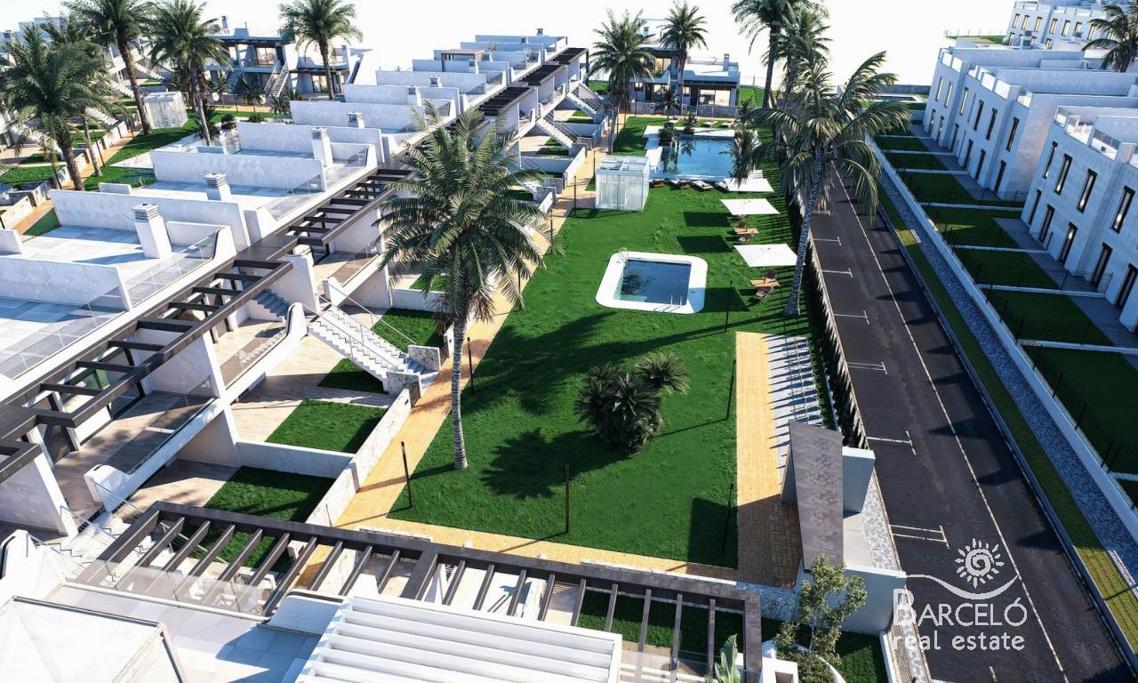 Nieuwbouwwoningen met tuin of solarium vlakbij het strand in Pilar de la Horadada Moderne mediterrane woningen ontworpen voor comfort Ontdek dit exclusieve nieuwbouwcomplex in Pilar de la Horadada, met moderne bungalows op minder dan 2 km van het strand. Deze woningen zijn ontworpen om comfort, stijl en functionaliteit te combineren en zijn ideaal om het hele jaar door te wonen, voor vakanties of als slimme investering aan de Costa Blanca. Het project biedt de keuze tussen bungalows op de begane grond met privétuinen en bungalows op de bovenste verdieping met privétuinen op het dak. Elke woning is zorgvuldig ontworpen om het buitenleven te maximaliseren en optimaal te profiteren van het mediterrane klimaat. Ruime woningen met 2 slaapkamers en hoogwaardige afwerking Elke bungalow heeft 2 slaapkamers en 2 badkamers, waarvan één ensuite, en een eigen parkeerplaats in de ondergrondse garage. De woningen zijn gebouwd met hoogwaardige materialen en moderne afwerkingen die energie-efficiëntie en duurzaamheid garanderen. De belangrijkste kenmerken zijn: Voorbereiding voor airconditioning met luchtkanalen Aluminium buitenschrijnwerk met dubbele beglazing en gemotoriseerde rolluiken Beveiligde toegangsdeur voor gemoedsrust Aerothermisch systeem voor efficiënte warmwaterproductie Inbouwkasten in alle slaapkamers Volledig uitgeruste badkamers met meubilair en doucheschermen Deze specificaties zorgen voor een comfortabele en praktische woning die geschikt is voor alle seizoenen. Privécommunity met zwembad en aangelegde tuinen Het wooncomplex is privé en beveiligd, met prachtig aangelegde gemeenschappelijke tuinen en een groot gemeenschappelijk zwembad. Dit creëert een aangename en ontspannen omgeving waar bewoners kunnen ontspannen en genieten van het uitstekende klimaat. Het complex ligt net buiten het stadscentrum, waardoor bewoners te voet naar supermarkten, restaurants, bars, scholen en essentiële voorzieningen kunnen gaan zonder dat ze een auto nodig hebben. Uitstekende locatie dicht bij stranden en voorzieningen Pilar de la Horadada is een charmant Spaans stadje in het zuidelijkste deel van de Costa Blanca, bekend om zijn levendige sfeer, lokale winkels, traditionele pleinen en vriendelijke gemeenschap. De zandstranden van Torre de la Horadada en Mil Palmeras liggen op slechts 2 km afstand en bieden fijn goudkleurig zand, een schilderachtige boulevard en een jachthaven. Het gebied is ook ideaal om te fietsen, wandelen en buitensporten te beoefenen. Afstanden tot belangrijke bezienswaardigheden Lo Romero Golf 5 km La Zenia Boulevard 15 km Luchthaven Murcia Corvera 40 km Luchthaven Alicante 55 km Jachthaven Torre de la Horadada 3 km Reserveer vandaag nog uw nieuwe woning Mis deze kans niet om een gloednieuwe bungalow vlakbij het strand te kopen in een van de meest gewilde gebieden van de Costa Blanca. Neem vandaag nog contact met ons op voor meer informatie en om een bezichtiging te regelen.