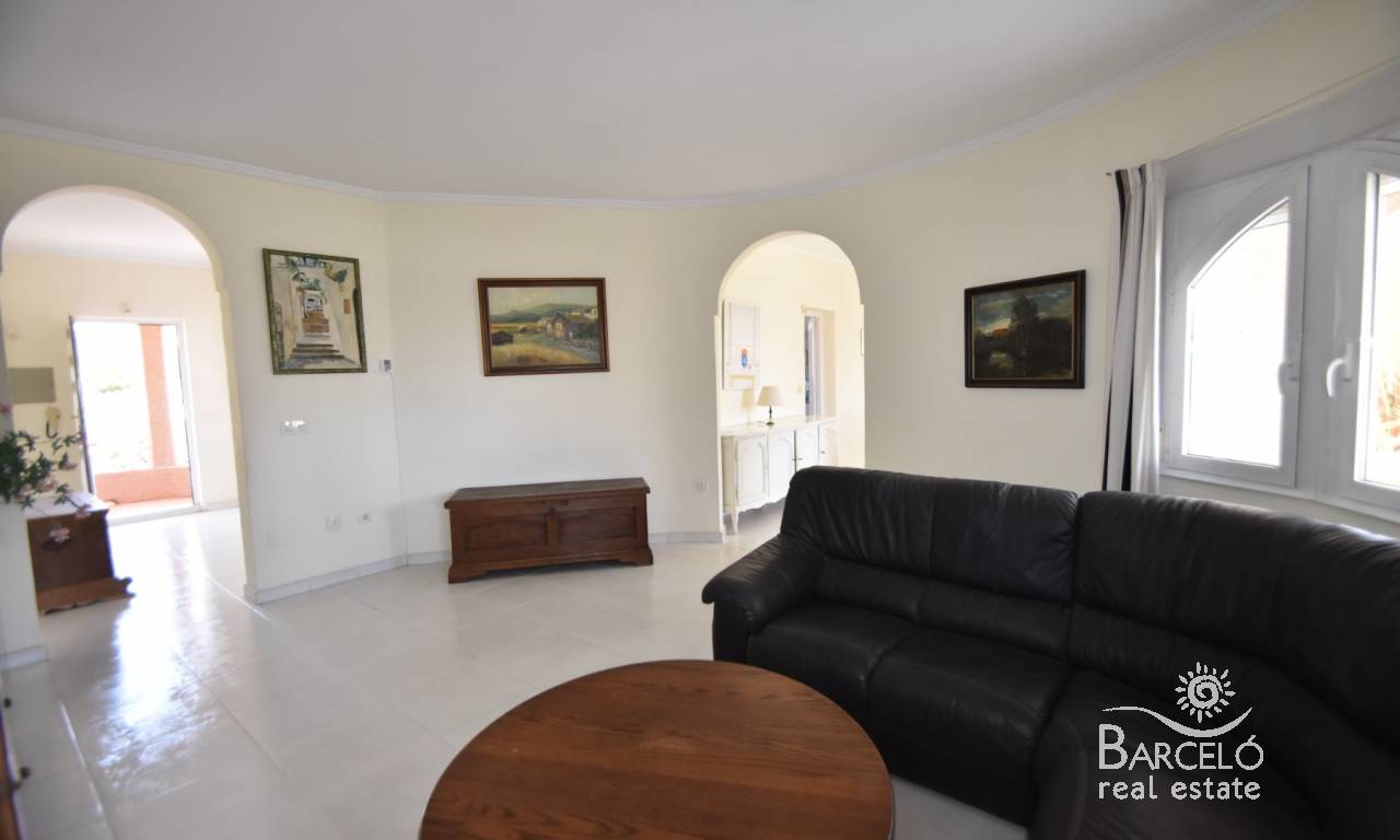 Eiendommen åpner seg inn i en entré med en romslig formell stue og spisestue, pluss en sjarmerende ekstra stue som for tiden brukes som TV-stue med peis. Den har et romslig separat kjøkken og en herlig romslig terrasse med vakker utsikt over området rundt. Det er tre doble soverom, ett med eget bad, pluss et familiebad og et gjestetoalett. I første etasje, under villaen, er det en romslig leilighet med stue, kjøkken, bad, to soverom og et ekstra ombyggingsrom. Villaen selges møblert og har klimaanlegg, sentralvarme og mye mer, som kan sees på bildene.