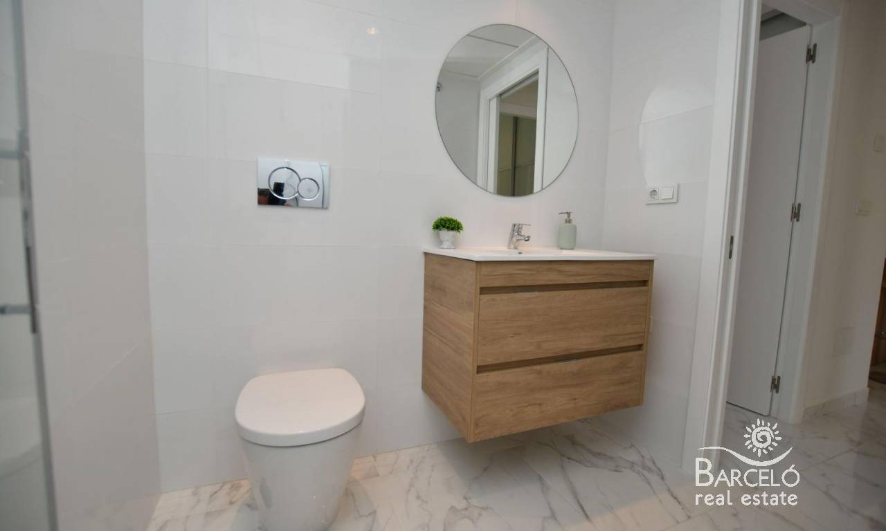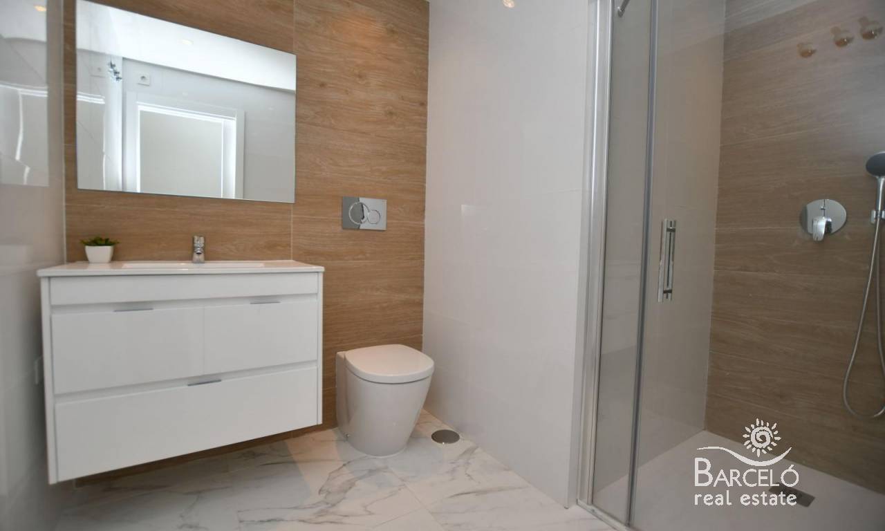 Nybyggede bungalower i San Miguel de Salinas – Natur, golf og komfort Oppdag dette nye boligprosjektet i San Miguel de Salinas, som ligger i det ettertraktede området «La Cañada», omgitt av en beskyttet furuskog mellom de prestisjetunge golfbanene Campoamor og Las Colinas. Bare 7 km fra Middelhavskysten tilbyr dette boligområdet den perfekte blandingen av ro, natur og enkel tilgang til alle fasiliteter. Romslige og moderne boliger Utbyggingen tilbyr to typer boliger som passer til forskjellige livsstiler: Bungalower i første etasje: 2 soverom, 2 bad, to store private hager og overflateparkering. Bungalower i øverste etasje: 2 soverom, 2 bad, romslig solarium med havutsikt og overflateparkering. Hver bolig har generøse dimensjoner og kan tilpasses til en 3-roms planløsning (valgfritt mot ekstra kostnad), med kjøkkenutstyr inkludert. Høy kvalitet Alle boligene er designet for komfort og funksjonalitet og inkluderer: Fullt utstyrte bad med møbler, speil og dusjvegger Aerotermisk varmtvannssystem Innebygde LED-taklamper Eksklusive fellesområder Boligområdet har over 1700 m2 anlagte grønne områder med palmer og middelhavsplanter. Beboerne kan nyte et stort svømmebasseng med boblebad, barnebasseng og solterrasser, noe som gjør dette til et ideelt sted for å nyte klimaet på Costa Blanca hele året. Privilegert beliggenhet i San Miguel de Salinas Dette rolige boligområdet ligger mindre enn 3 km fra den sjarmerende byen San Miguel de Salinas, med alle daglige tjenester i nærheten. I tillegg ligger de vakre sandstrendene i Orihuela Costa og Torrevieja bare 7 km unna, med uendelige muligheter for fritid, shopping og restauranter. Nær kjente golfbaner For golfentusiaster er beliggenheten uovertruffen. Innenfor en radius på 4 km finner du tre av de mest prestisjefylte golfbanene på Costa Blanca: Villamartín Golf – 3,5 km Las Colinas Golf & Country Club – 4 km Campoamor Golf – 4 km Utmerket tilknytning Viktige severdigheter i nærheten inkluderer: San Miguel de Salinas – 3 km La Zenia Boulevard kjøpesenter – 10 km Alicante lufthavn – 55 km Murcia lufthavn (Corvera) – 50 km Sikre deg ditt nye hjem i San Miguel de Salinas Enten du er på utkikk etter en permanent bolig, et feriested eller en investeringsmulighet, tilbyr disse nybygde bungalowene utmerket verdi i et av de mest attraktive områdene på Costa Blanca. Kontakt oss i dag for mer informasjon og for å avtale en visning.