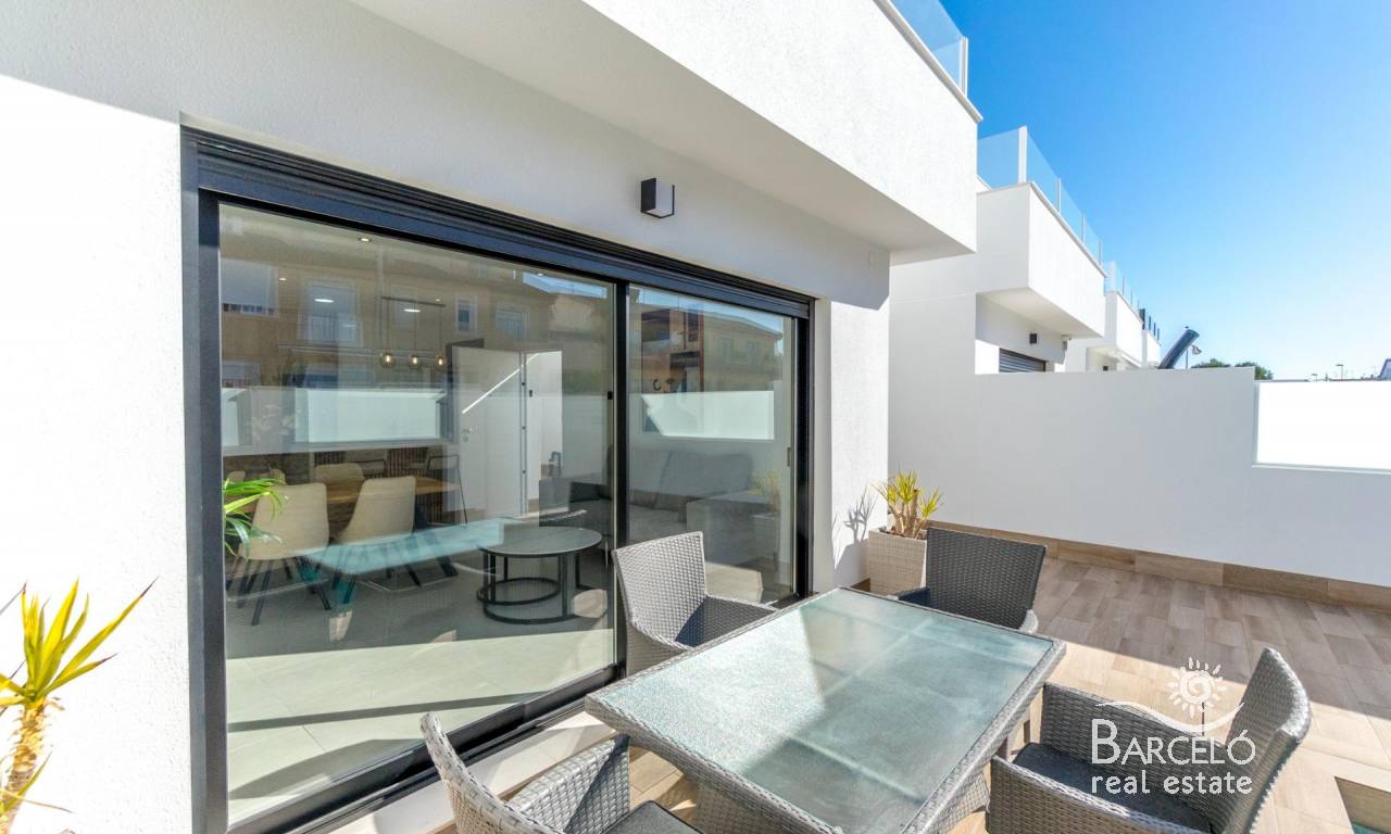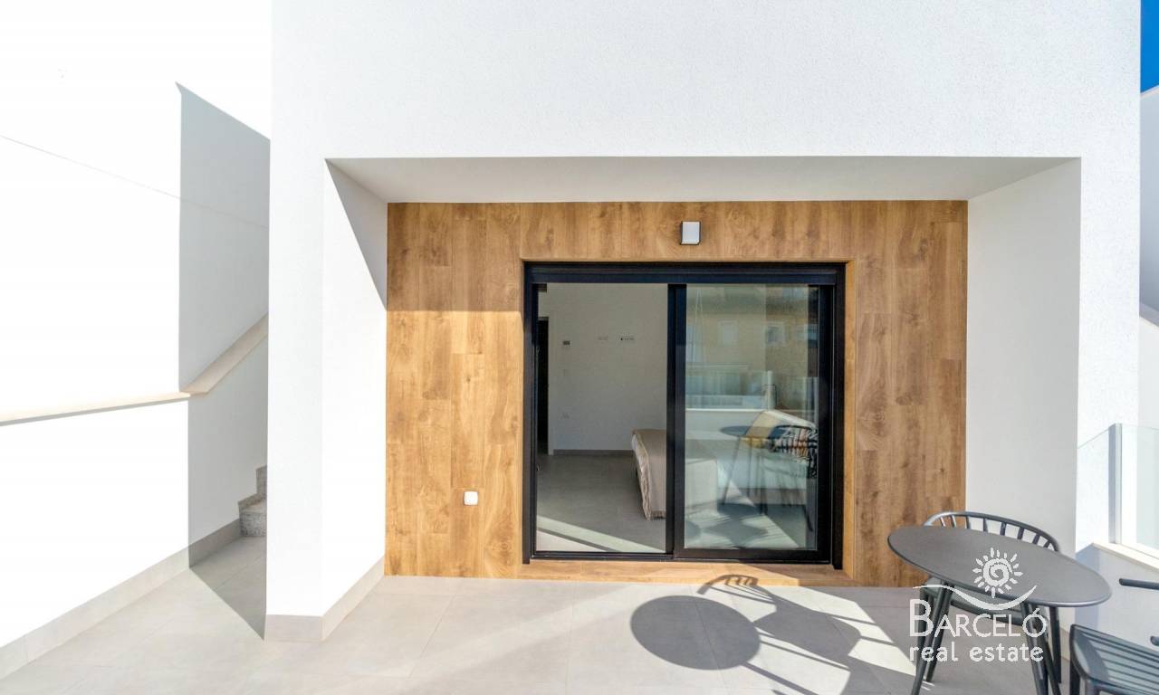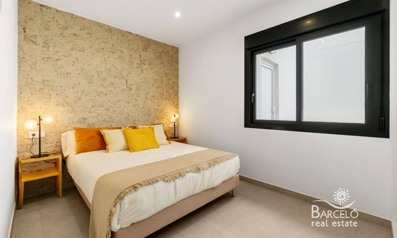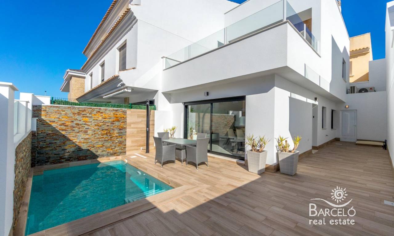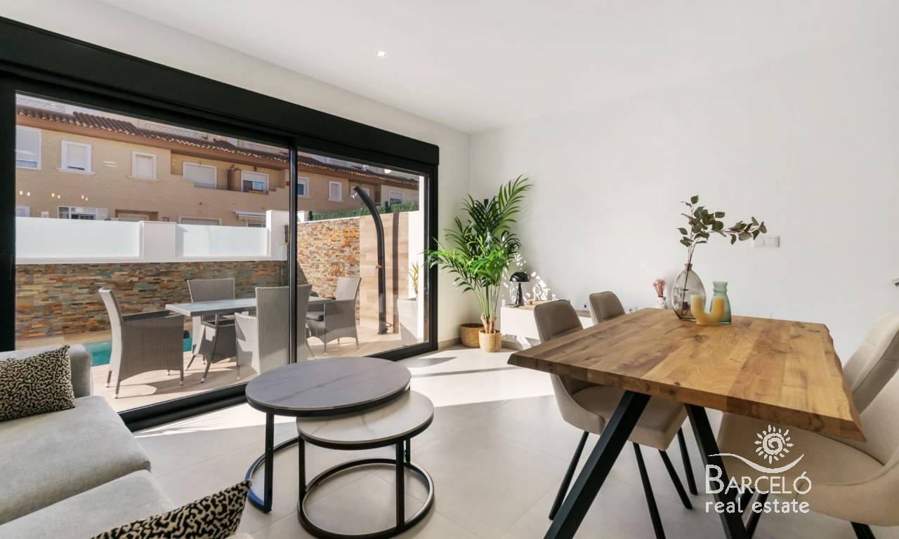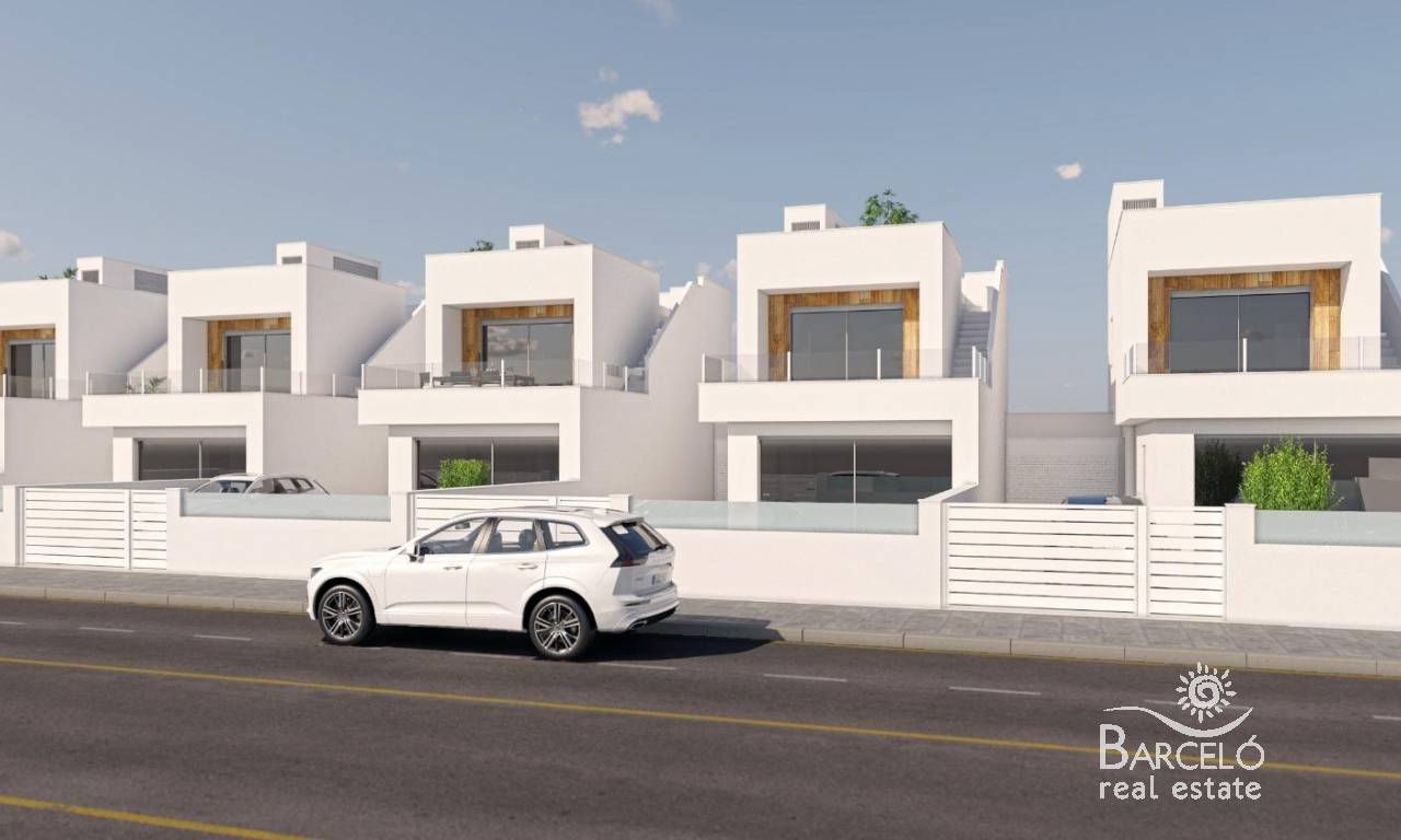 Nybyggede tomannsboliger med privat basseng i San Pedro del Pinatar Moderne boliger i en førsteklasses beliggenhet Dette eksklusive prosjektet med 5 tomannsboliger ligger i San Pedro del Pinatar, en livlig kystby på Costa Cálida. Boligene ligger i nærheten av det kommunale idrettssenteret, i gangavstand fra sentrum og bare 3,5 km fra strendene ved Mar Menor og Middelhavet, og tilbyr den perfekte blandingen av komfort, bekvemmelighet og middelhavsstil. Moderne design og funksjonell planløsning Hver villa har to etasjer og er designet med moderne arkitektur som maksimerer plass og naturlig lys. Med 3 soverom og 2 bad er disse eiendommene ideelle for familier, ferieboliger eller investering. Første etasje: Åpen kjøkkenløsning i forbindelse med den lyse stuen og spisestuen, ett soverom, ett bad, en bakgård og direkte tilgang til den private hagen med basseng. Første etasje: To ekstra soverom, ett bad og en romslig terrasse med tilgang til privat solarium på taket, perfekt for soling eller underholdning. Kvalitetsfinish og komfort Villaene leveres med høykvalitets spesifikasjoner og gjennomtenkte detaljer for å sikre et moderne liv: Fullt møblert og utstyrt kjøkken med hvitevarer Privat svømmebasseng og hage Solarium på taket for utendørs liv hele året Sommerkjøkken inkludert Innvendig og utvendig belysningspakke Lukket privat garasje San Pedro del Pinatar – Livsstil og omgivelser San Pedro del Pinatar er kjent for sol hele året, sandstrender og naturlandskap som den berømte naturparken Salinas y Arenales. Byen tilbyr alle nødvendige tjenester, inkludert butikker, supermarkeder, restauranter, helsesentre og idrettsanlegg, noe som gjør den til et utmerket sted både for permanent opphold og ferie. Avstander til viktige severdigheter: Strendene i Mar Menor - 3,5 km Dos Mares kjøpesenter - 5 km Lo Pagán marina - 4 km Roda Golf - 8 km Murcia flyplass (Corvera) - 35 km Alicante flyplass – 75 km Sikre deg ditt nye hjem ved sjøen Disse nybygde tomannsboligene i San Pedro del Pinatar kombinerer moderne design, høykvalitets finish og en privilegert beliggenhet nær sjøen og alle fasiliteter. Kontakt oss i dag for mer informasjon eller for å avtale en visning, og ta det første skrittet mot ditt drømmehus ved Middelhavet.