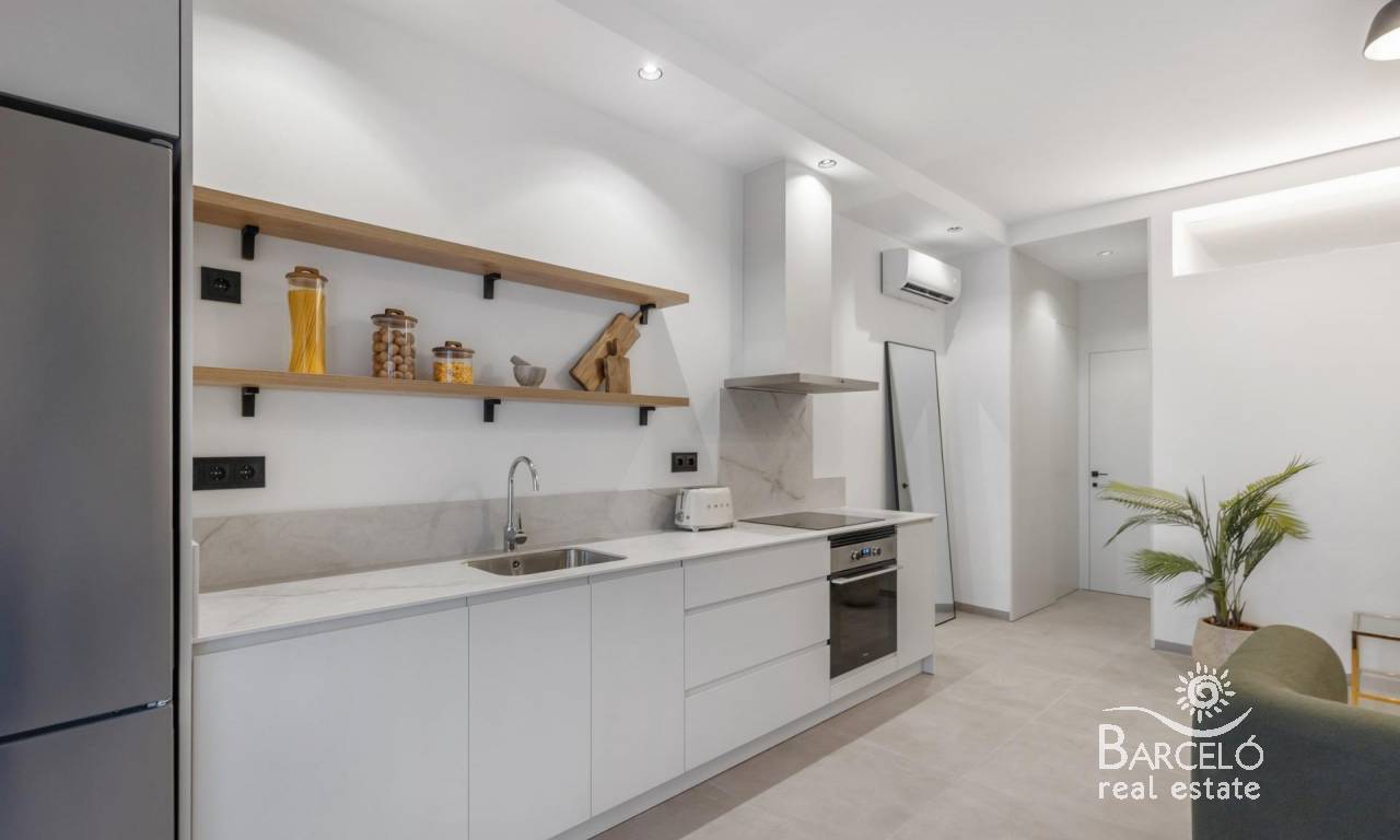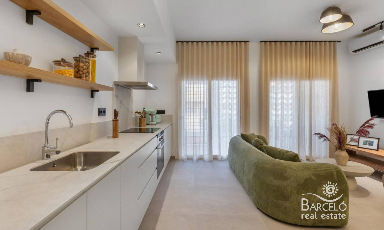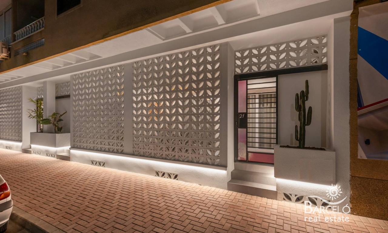 Moderne nybyggede leiligheter bare 150 meter fra sjøen i Torrevieja Eksklusivt boutique-prosjekt ved stranden Dette nye prosjektet tilbyr bare 3 moderne leiligheter i en privilegert beliggenhet, bare 150 meter fra Los Náufragos-stranden i Torrevieja. Eiendommen var opprinnelig en del av et næringsbygg fra 1989, men er nå fullstendig renovert og omgjort til stilige boliger med ett soverom og ett bad, designet for et moderne liv ved kysten. Moderne design og innflyttingsklar komfort Hver leilighet er fullstendig renovert med topp kvalitet på finishen og leveres fullt møblert og utstyrt. Funksjoner inkluderer: Åpen kjøkkenløsning med møbler og hvitevarer inkludert Designermøbler, belysning, gardiner, TV-apparater og dekorasjon Klimaanlegg med varme/kulde i både stue og soverom Bad med møbler, speil og dusjvegg Terrasse foran med oppbevaringsskap i aluminium Denne nøkkelferdige løsningen sikrer at du kan nyte ditt nye hjem uten å måtte bekymre deg for innredning eller utstyr. Levering er planlagt til februar 2026, når lisenser og tilkoblinger til strøm, vann og avløp er ferdigstilt, noe som gjør det til en nesten innflyttingsklar mulighet. Førsteklasses sentral beliggenhet i Torrevieja Disse leilighetene ligger bare en kort spasertur fra sjøen og 10 minutter fra sentrum, og har en uovertruffen beliggenhet. Innen 300 meter finner du restauranter, supermarkeder, apotek, banker og offentlig transport. Torrevieja Marina ligger bare 1 km unna, og viktige tjenester som Hospital de Torrevieja og Las Habaneras kjøpesenter ligger innen rekkevidde. Enkel tilgang til viktige destinasjoner Los Náufragos-stranden: 150 m Torrevieja Marina: 1 km Villamartín golfbane: 10 km Alicante lufthavn: 45 km En livsstil ved Middelhavet Torrevieja er et av de mest attraktive reisemålene på Costa Blanca, kjent for sine sandstrender, livlige promenade og utmerkede klima med mer enn 300 soldager i året. Enten du er på jakt etter en permanent bolig, et feriehus eller en investering, tilbyr dette boutique-prosjektet den perfekte balansen mellom komfort, stil og beliggenhet. Sikre deg din kystleilighet i dag Opplev moderne livsstil bare noen skritt fra havet. Kontakt oss nå for å avtale en visning og reservere ditt nye hjem i Torrevieja før det er for sent.