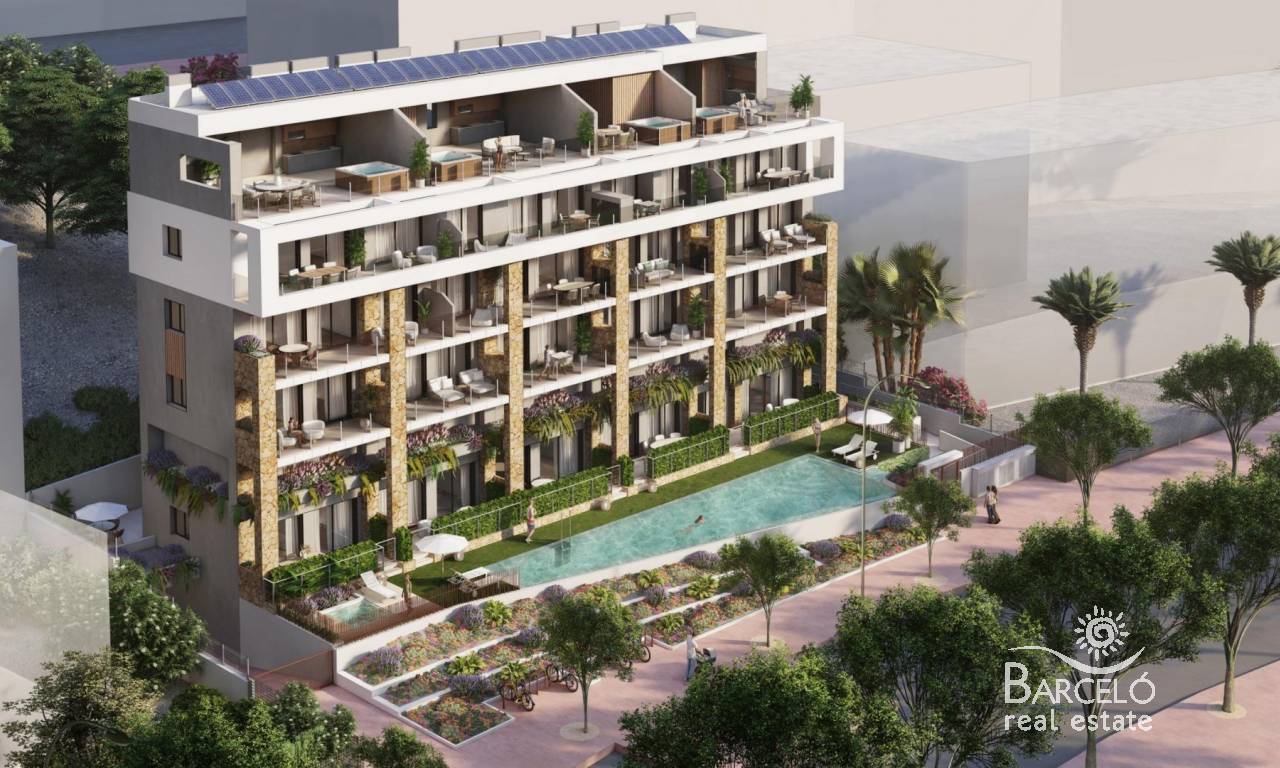 Luksuriøse leiligheter ved sjøen i Villajoyosa med panoramautsikt over Middelhavet Eksklusivt liv ved sjøen på Costa Blanca Opplev det beste av middelhavslivet i dette nye boligkomplekset ved stranden i Villajoyosa, en sjarmerende kystby kjent for sine fargerike hus, livlige lokale kultur og krystallklare vann. Disse boligene ligger bare noen få meter fra Playa Mallaeta og tilbyr fantastisk havutsikt og umiddelbar tilgang til promenaden og nærliggende gylne sandstrender som Playa de Villajoyosa, Cala Puntes del Moro og Playa Paraíso, som alle er perfekte for svømming, dykking eller for å nyte en solrik dag ved sjøen. Villajoyosa ligger praktisk til 10 minutter fra Benidorm, 30 minutter fra Alicante lufthavn (45 km) og har gode forbindelser med trikk til Alicante høyhastighets togstasjon, noe som gjør det til et ideelt sted for både permanent opphold og ferie. Elegant middelhavsdesign og førsteklasses kvalitet Dette boutique-prosjektet tilbyr leiligheter med 1 og 2 soverom med store terrasser, private hager i første etasje eller solarium i penthouse-leilighetene. Hver bolig er designet i en moderne middelhavsstil, som kombinerer naturlige materialer, myke farger og rene arkitektoniske linjer som smelter sømløst sammen med kystmiljøet. Høy kvalitet på finishen inkluderer: Fullt utstyrt kjøkken med integrerte hvitevarer Installasjon av klimaanlegg (varm/kald) Bad med servantskap, speil og dusjvegg Muligheter for personlig tilpasning av interiør Privat parkeringsplass og bod inkludert i hver bolig Ferieanlegg-stil fasiliteter med fantastisk utsikt Beboerne kan nyte eksepsjonelle fellesarealer som løfter boopplevelsen. Komplekset har et evighetsbasseng med utsikt over Middelhavet, oppvarmet boblebad, utendørs treningsstudio og vakre hager og avslapningsområder. Hver detalj er designet for å skape et rolig og luksuriøst tilfluktssted ved sjøen. Den autentiske essensen av Villajoyosa Villajoyosa, også kjent som «La Vila», er en pittoresk fiskerlandsby fylt med historie, sjarm og karakter. Gamlebyen med brosteinsbelagte gater og fargerike hus byr på en ekte middelhavsatmosfære, supplert med et utmerket gastronomisk miljø og den berømte lokale sjokoladetradisjonen. Ditt perfekte hjem ved kysten og en investeringsmulighet Dette strandkomplekset i Villajoyosa kombinerer beliggenhet, kvalitet og eksklusivitet og tilbyr en eksepsjonell livsstil og høyt investeringspotensial. Kontakt oss i dag for å finne ditt nye hjem ved havet på Costa Blanca.