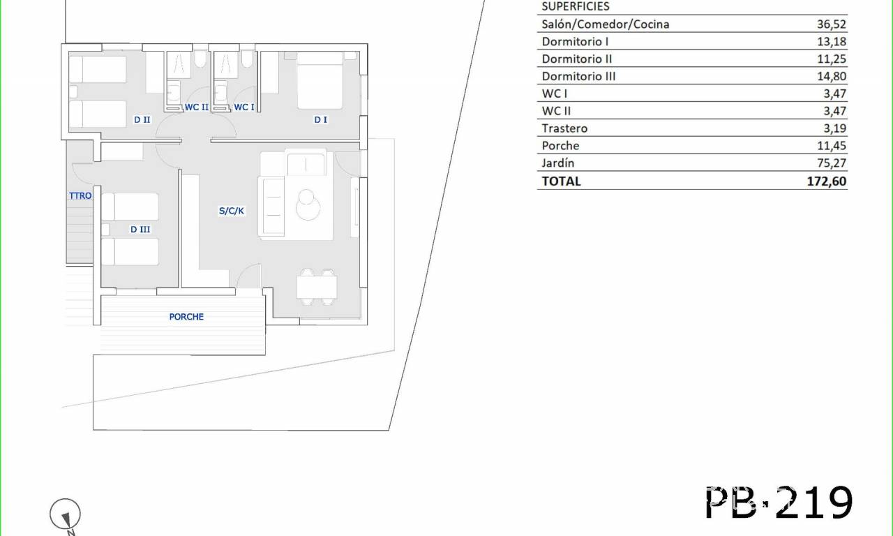 Moderne, nybygde bungalower i San Miguel de Salinas med 3 felles svømmebassenger Middelhavsstil i naturskjønne omgivelser Oppdag dette moderne boligprosjektet med nybygde bungalower i utkanten av San Miguel de Salinas, en by sør i provinsen Alicante, med gangavstand til alle fasiliteter. Denne sjarmerende byen kombinerer nærhet til havet med naturens ro, noe som gjør den til et ideelt sted både for fast bolig og ferie. Boligalternativer for alle livsstiler Anlegget tilbyr leiligheter i bungalowstil med 2 eller 3 soverom, tilgjengelig i to planløsninger: Første etasje med privat hage og bod Øverste etasje med privat solterrasse Hver bolig er designet med et moderne og funksjonelt tilnærming, og tilbyr komfort, naturlig lys og uteområder for å nyte det middelhavsklimaet hele året. Fellesarealer for familiehygge Dette boligkomplekset er fullt inngjerdet og kan skilte med utmerkede fellesfasiliteter: 3 store felles svømmebassenger for voksne og barn Over 3 400 m² anlagte grønne områder Disse fasilitetene gjør boligprosjektet til et ideelt sted for familier, par og pensjonister som søker høy livskvalitet i et trygt og avslappet miljø. Moderne funksjoner og energieffektivitet Boligene har materialer av høy kvalitet og nøye utført finish: Fullt utstyrt kjøkken Utvendige vinduer og dører med termisk isolasjon og doble vinduer Forsterket inngangsdør Baderomsmøbler inkludert Forberedelse for split-system klimaanlegg i stue og soverom Utmerket beliggenhet nær golf, strender og fasiliteter San Miguel de Salinas ligger strategisk plassert nær turist- og naturområder: Golfbaner som Vistabella, Las Colinas og Campoamor mindre enn 10 km unna Strendene ved Orihuela Costa 11 km unna Lagunene i Torrevieja og La Mata bare 8 km unna La Zenia Boulevard kjøpesenter 9 km unna Alicante-Elche lufthavn ligger 58 km unna (35 minutter med bil) Murcia internasjonale lufthavn ligger 63 km unna (1 time med bil) Ditt nye hjem på Costa Blanca Disse eiendommene representerer en utmerket mulighet for de som søker kvalitet, komfort og en førsteklasses beliggenhet. Kontakt oss nå for mer informasjon eller for å bestille visning, og ta det første skrittet mot ditt liv på Costa Blanca.