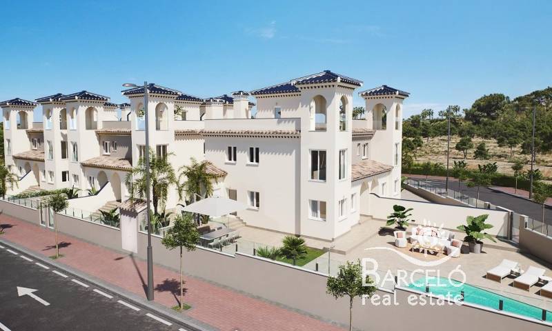 Duplex rekkehus i byen Bigastro, Huset er delt inn i en garasje i første etasje med plass til å lage et annet rom, lekeplass eller treningsstudio, i første etasje har kjøkken, bad, uteplass og stue. øverste etasje består av fire soverom, to bad og en terrasse, med et solarium i den høyeste delen.