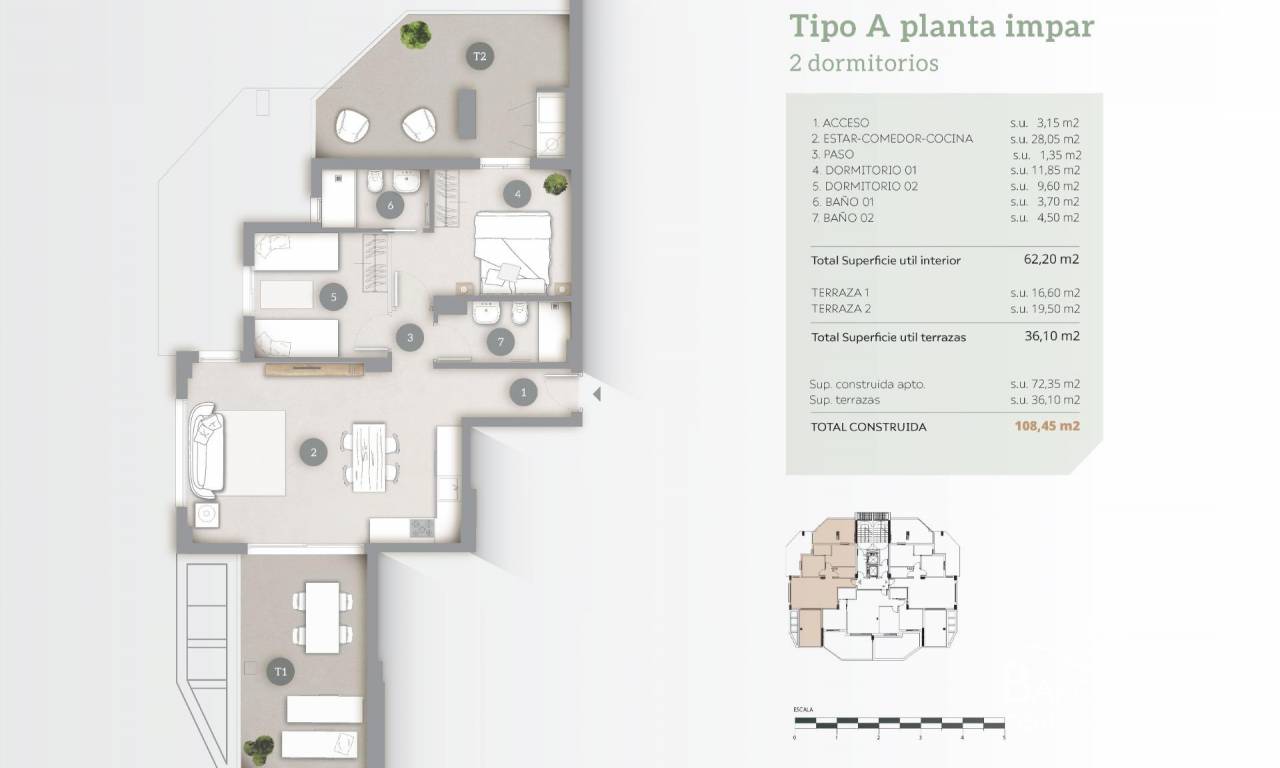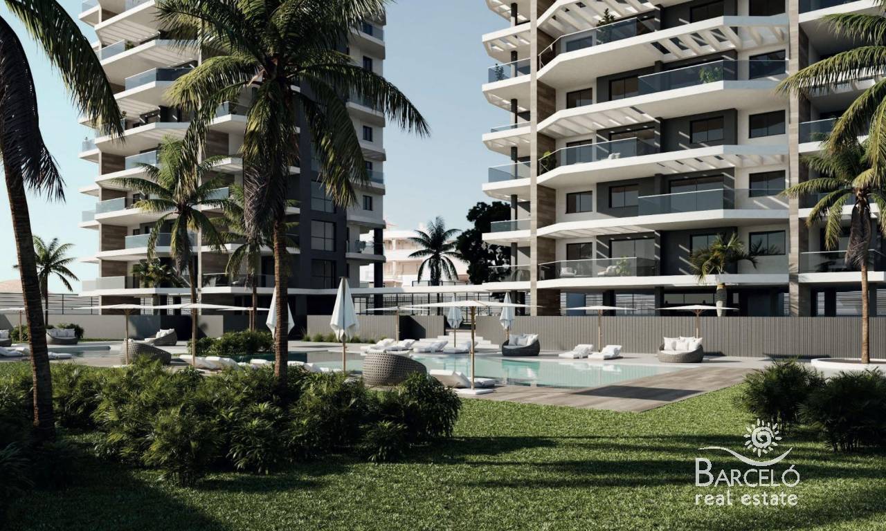 Nybygget boligkompleks med leiligheter med 2 og 3 soverom og store terrasser i Calpe. To tårn på 12 etasjer med vakre leiligheter med utsikt over havet og saltsjøen i Calpe. Et lyst hus i harmoni med naturen, med åpen kjøkkenløsning med stue, garderober, romslige terrasser og havutsikt. Hver leilighet har underjordisk parkeringsplass. Stort fellesområde med 2 store svømmebassenger, ett av dem med inngang fra stranden, solsenger med kunstgress, lekeplass, paddle-tennisbane, sykkelparkering, hageområder. Calpe har et privilegert mikroklima, og boligen ligger bare 200 meter fra El Arenal-stranden. Et ideelt sted å nyte freden, stillheten og det blå havet. Sammen med de du er glad i, kan du prøve alt det den har å by på: undervannsaktiviteter der du kan oppdage Middelhavets flora og fauna og utøve alle typer vannsport på internasjonale skoler. Calpe, en av byene i La Marina Alta, ligger på nordkysten av Alicante-provinsen, omgitt av byene Altea, Benidorm, Teulada-Moraira og Benissa. Calpe har en herlig blanding av gammel valenciansk kultur og moderne turistfasiliteter. Calpe er et flott utgangspunkt for å utforske lokalområdet eller nyte de mange lokale strendene. Calpe alene har tre av de vakreste sandstrendene på kysten. Calpe har også to seilklubber: Real Club Náutico de Calpe og Club Náutico de Puerto Blanco. Fiskerlandsbyen Calpe er nå forvandlet til en turistmagnet og har en ideell beliggenhet, lett tilgjengelig via motorvei A7 og N332 som går fra Valencia til Alicante. Det tar ca. 1 time å kjøre til flyplassen i Alicante og 1,5 time til Valencias flyplass.