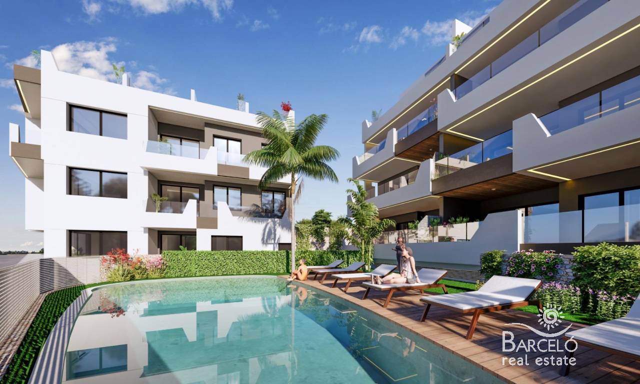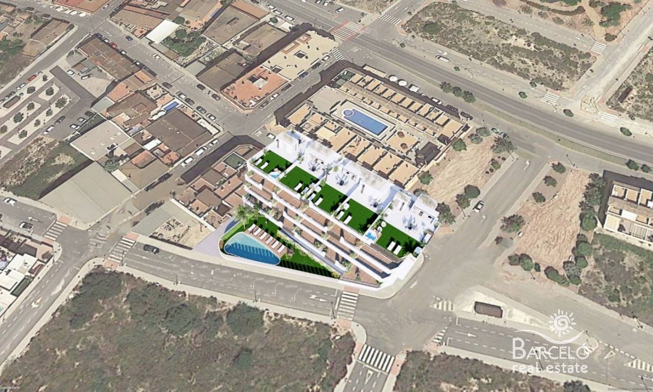 Nybygg bolig i det rolige området Benijofar. Bolig består av 15 boliger, 5 per etasje, med 2 eller 3 soverom og 2 bad. Toppleilighetene har også et stort privat solarium fra 75,00 kvadratmeter med toalett og forhåndsinstallasjon for kjøkken, hvor du kan nyte de vakre sommersolnedgangene. I tillegg har boligen et stort grøntområde med svømmebasseng for alle eiere, samt parkering og bod. Benijofar det er en nydelig landsby med en sjarmerende kirke og alle tjenester som supermarkeder, apotek, banker, restauranter og naturpark som ligger svært nær villaene. Det er flere golfbaner i nærheten, samt badeland i nærliggende Rojales og Torrevieja. De beste strendene i Guardamar ligger kun 10 minutter unna med bil med mer enn 11 km med hvite sanddyner og krystallklart vann. Benijófar ligger noen få minutter fra N-332 og AP-7. Bare 30 minutter fra Alicante flyplass, 10 minutter fra strendene i Guardamar og Torrevieja.