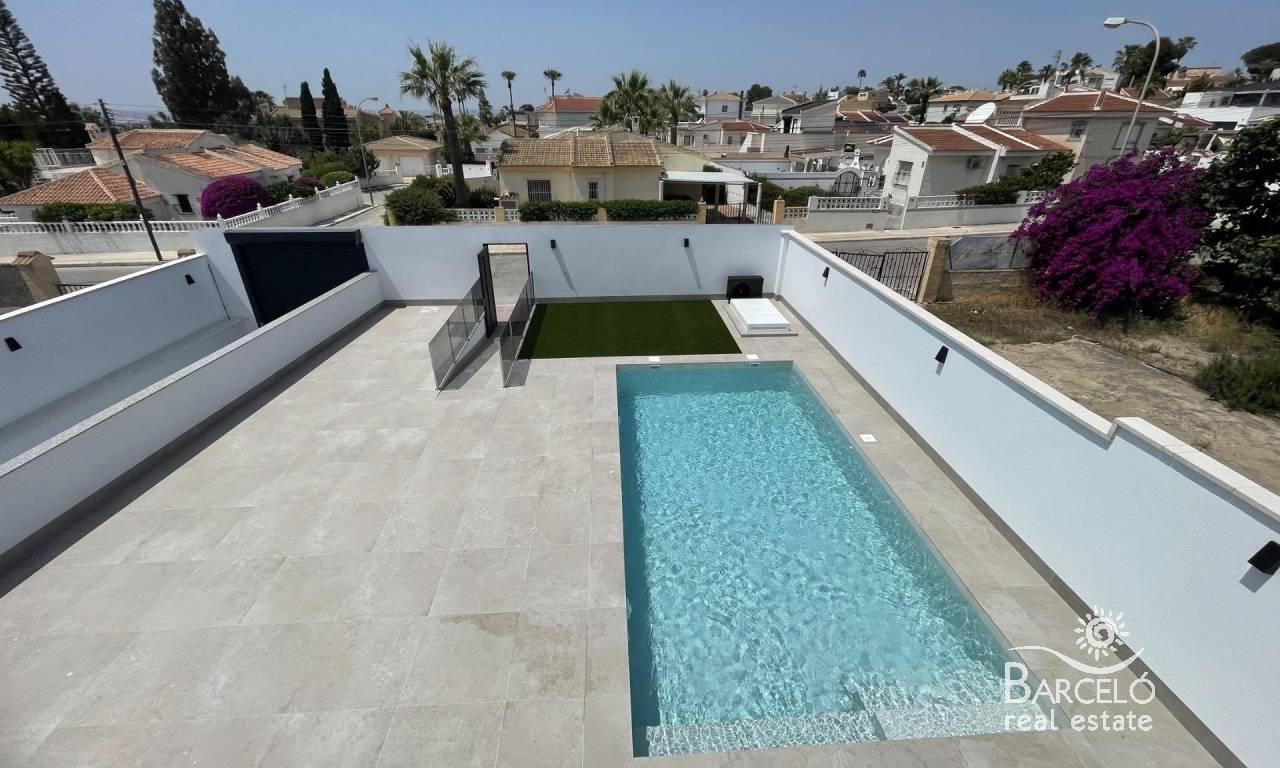 RYNEK PIERWOTNY WILLA W ROJALES Rynek Pierwotny nowoczesna willa w Rojales w pobliżu wszystkich udogodnień i usług. Zaprojektowany, aby jak najlepiej wykorzystać otwarte przestrzenie wokół willi, łącząc styl z praktycznością. Dom obejmuje przestronną piwnicę z 2 miejscami parkingowymi. Na dole znajduje się duży salon połączony z kuchnią na otwartym planie, pokój z wyjściem na zewnątrz, 2 łazienki i pralnia. Na piętrze znajdują się 2 sypialnie z własnymi łazienkami oraz duży taras. Ta willa oferuje dużo przestrzeni życiowej na świeżym powietrzu, dobrze łącząc się z ogrodem i basenem, z różnymi miejscami do relaksu na zewnątrz, takimi jak zadaszony taras o powierzchni 35 m2 na parterze. Jest też basen o wymiarach 8x4 metry. Wykorzystując najwyższej klasy materiały, dom ten został zbudowany z myślą o trwałości i świetnym wyglądzie. Willa znajduje się zaledwie 10 minut od pola golfowego La Marquesa, w spokojnej okolicy i na wybrzeżu. Rojales to tradycyjnie rolnicze miasteczko, które stało się jednym z ulubionych miejsc w głębi Vega Baja, dzięki strategicznej lokalizacji w pobliżu N-332 i AP-7. Doskonały dojazd pozwala dotrzeć do lotniska w Alicante w 20 minut i cieszyć się plażami Guardamar, La Mata lub Torrevieja w 15 minut. Rojales oferuje bogatą i zróżnicowaną ofertę gastronomiczną i rekreacyjną, a także prestiżowe pole golfowe La Marquesa Golf. Rojales to urocza wioska ze wszystkimi usługami, takimi jak supermarkety, apteki, banki, restauracje i park przyrodniczy położony bardzo blisko willi. La Marquesa Golf to jedno z najbardziej historycznych pól golfowych na Costa Blanca, z 18 dołkami i jednym tak wyjątkowym jak 17. dołek w Sawgrass. Tradycja, jakość i doświadczenie łączą się, aby zaoferować golfistom, którzy nas odwiedzają, wyjątkowe doświadczenie, pełne historii.
