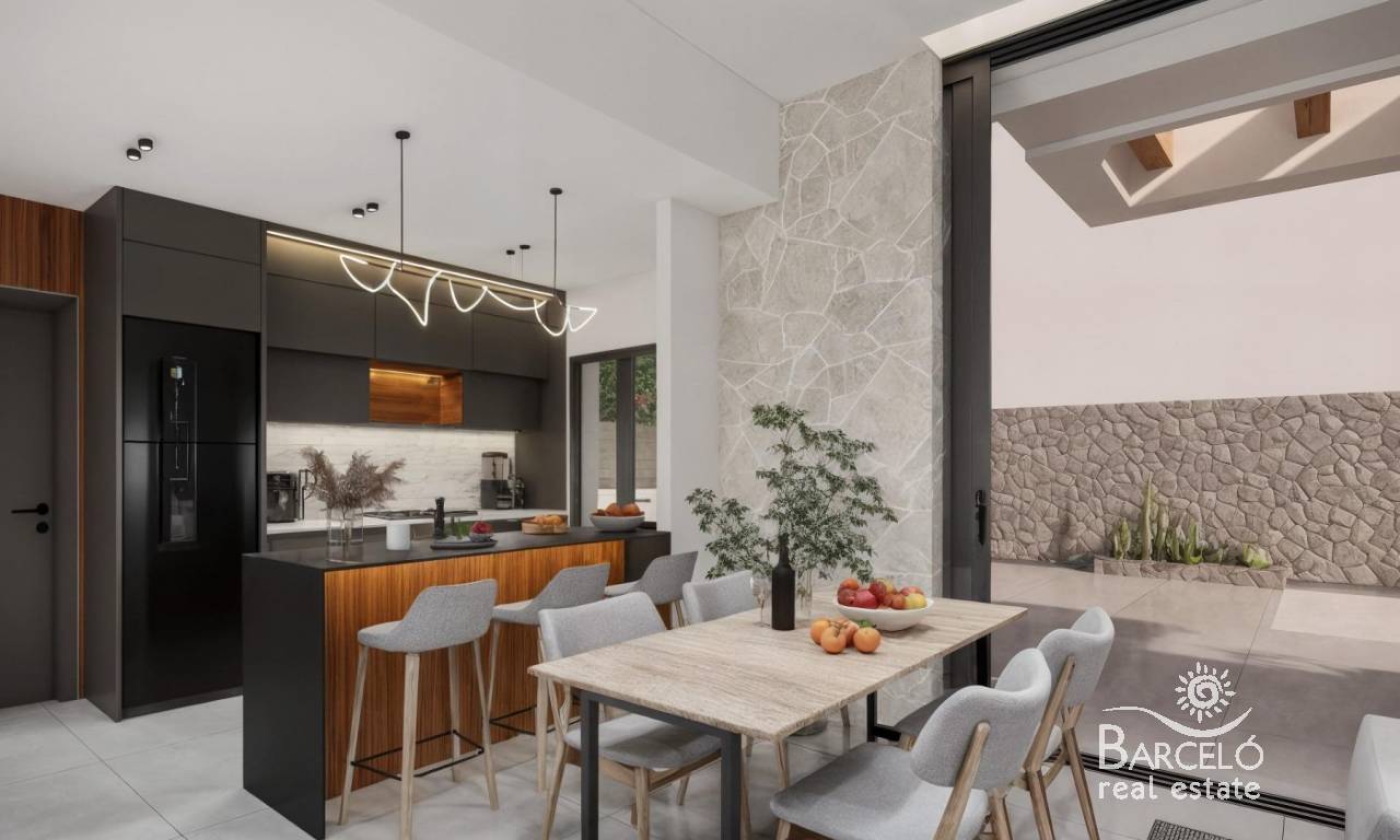 Nowoczesne, nowo wybudowane wille w La Herrada Los Montesinos z prywatnym basenem Ekskluzywny projekt mieszkaniowy w spokojnej okolicy Położona w prestiżowej dzielnicy mieszkaniowej La Herrada w Los Montesinos, ta ekskluzywna inwestycja obejmująca 16 nowoczesnych willi zapewnia prywatność, komfort i doskonałą jakość życia. La Herrada słynie z spokojnej atmosfery mieszkaniowej, bliskości codziennych udogodnień i doskonałej lokalizacji pomiędzy słynnymi solniskami Torrevieja i La Mata. Jest to idealne miejsce dla osób poszukujących relaksującego i zdrowego śródziemnomorskiego stylu życia na południu Costa Blanca. Nowoczesny design z optymalną przestrzenią wewnętrzną Każda willa ma 130 m² dobrze rozplanowanej powierzchni mieszkalnej na dwóch piętrach, zaprojektowanej tak, aby maksymalnie wykorzystać naturalne światło i funkcjonalność. Nieruchomości, zbudowane na działkach o powierzchni od 250 m², oferują przestronne obszary zewnętrzne, idealne do opalania się, rozrywki lub relaksu przy prywatnym basenie. Wygodny układ na dwóch piętrach Na parterze znajduje się otwarty salon z w pełni zintegrowaną kuchnią i bezpośrednim dostępem do ogrodu i basenu. Na tym piętrze znajdują się również dwie sypialnie, w pełni wyposażona łazienka i praktyczna pralnia. Na piętrze znajdują się dwie przestronne sypialnie, każda z własną łazienką, z których jedna jest łazienką przy sypialni. Obie sypialnie mają dostęp do otwartego prywatnego tarasu o powierzchni 28 m². Dla tych, którzy chcą mieć jeszcze więcej przestrzeni na świeżym powietrzu, dostępne jest opcjonalne solarium na dachu, dostępne za dodatkową opłatą. Wysokiej jakości wykończenia i nowoczesne wyposażenie Wille wyposażone są w wysokiej jakości elementy wykończeniowe, takie jak meble łazienkowe, lustra, kabiny prysznicowe i ogrzewanie podłogowe we wszystkich łazienkach. Istnieje możliwość instalacji klimatyzacji kanałowej, bramy wjazdowej z napędem elektrycznym, prywatnego parkingu na działce oraz ogrodzonego dostępu do osiedla przez prywatną drogę wewnętrzną. Doskonała lokalizacja w pobliżu kluczowych udogodnień i atrakcji Plaże Guardamar i Torrevieja w odległości 9 km Pola golfowe La Marquesa Golf, La Finca Golf i Vistabella Golf w odległości mniej niż 5 km Lotnisko w Alicante w odległości 29 km Parki przyrodnicze, solniska, trasy rowerowe i szlaki turystyczne w pobliżu Komfortowe życie w samym sercu Costa Blanca Te nowo wybudowane wille w Los Montesinos oferują idealne połączenie nowoczesnego komfortu, naturalnego otoczenia i doskonałej dostępności. Niezależnie od tego, czy szukasz stałego miejsca zamieszkania, czy domu wakacyjnego, ta inwestycja oferuje wszystko, czego potrzebujesz, aby cieszyć się spokojnym i komfortowym śródziemnomorskim stylem życia. Skontaktuj się z nami już dziś, aby umówić się na oglądanie nieruchomości i zapewnić sobie nowy dom w La Herrada.