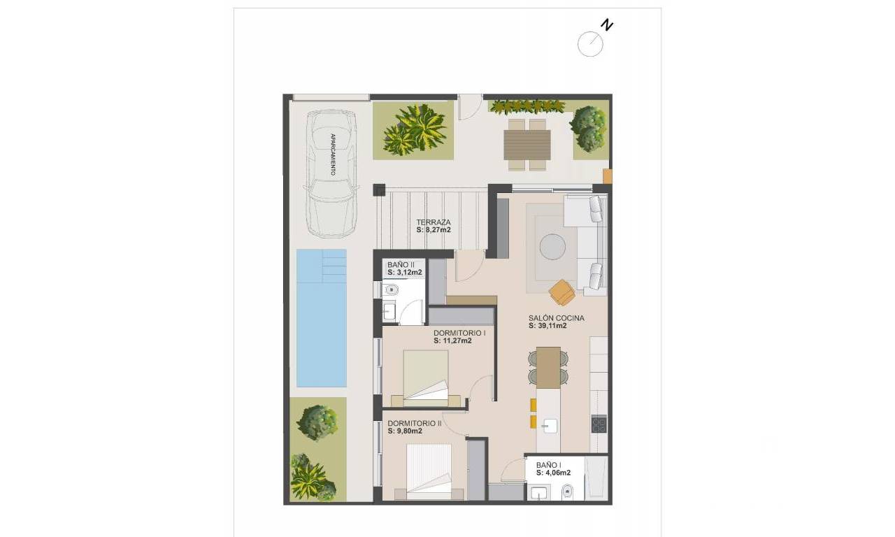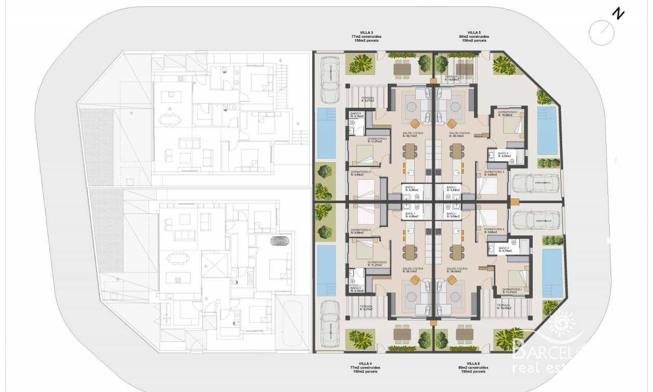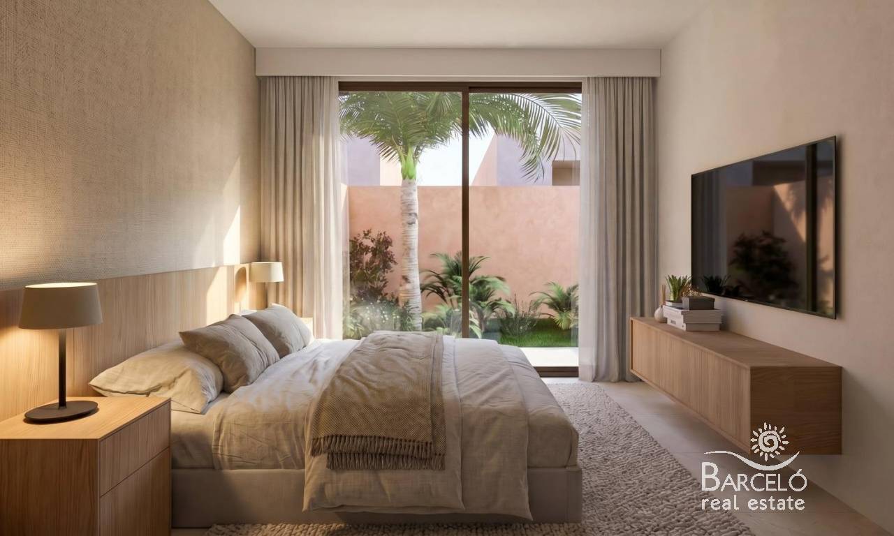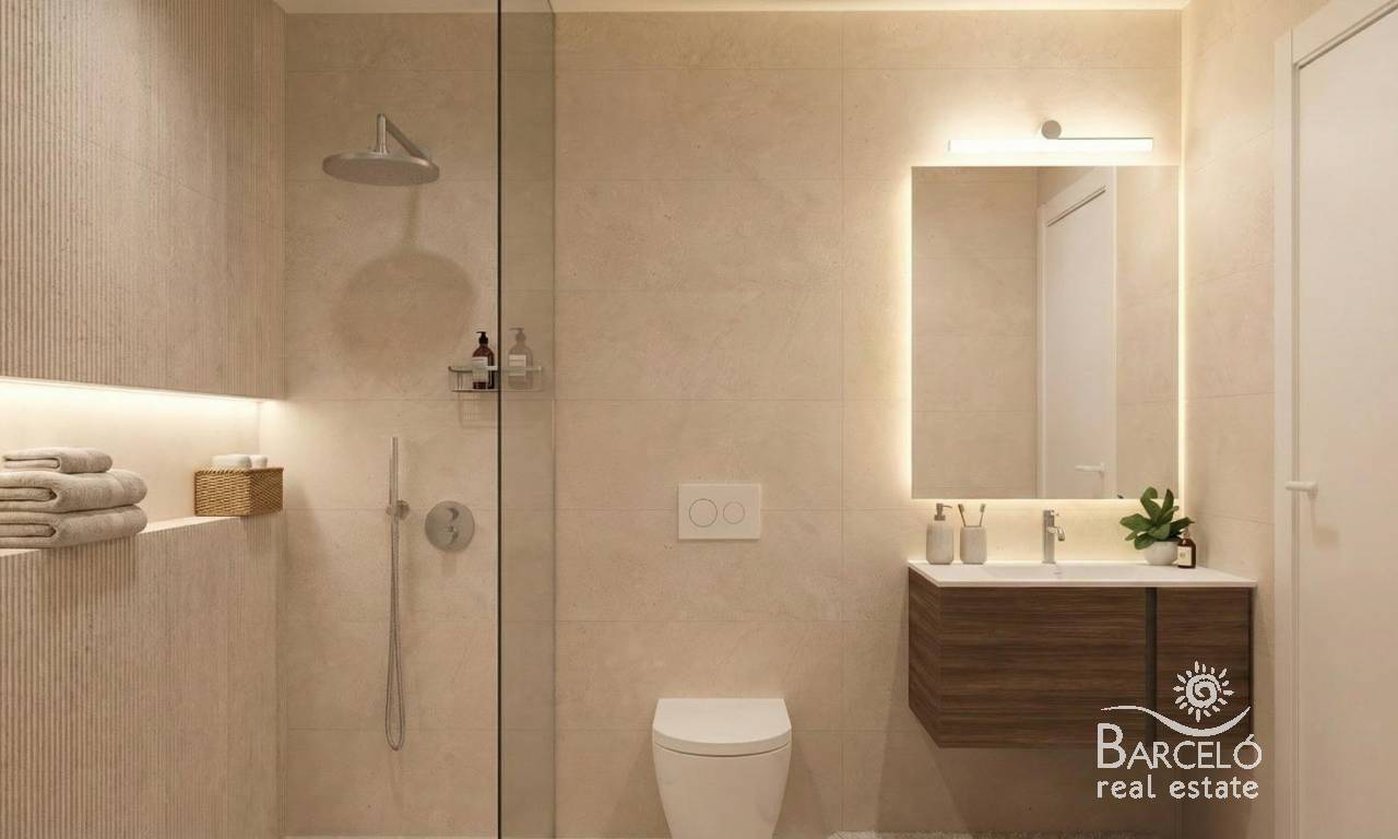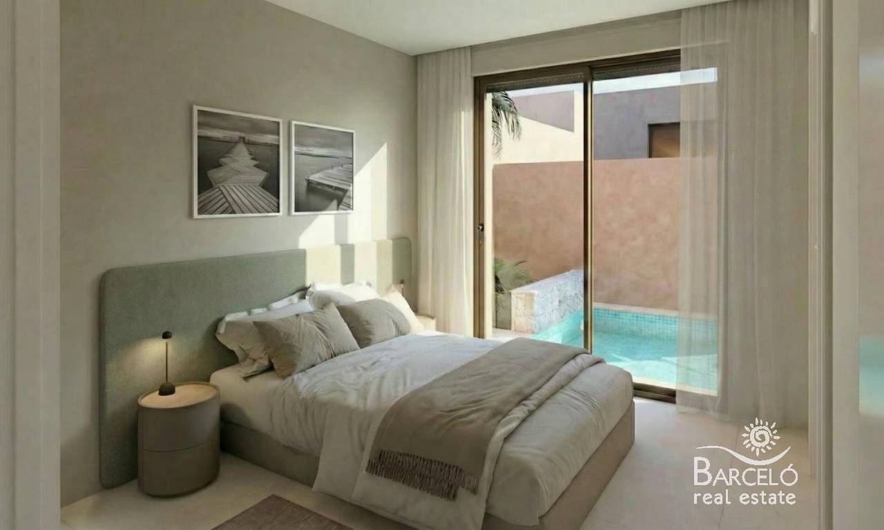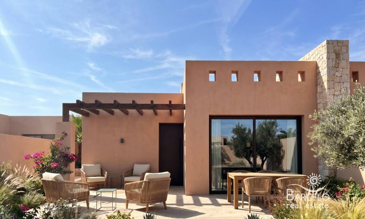 Nowo wybudowane wille w ośrodku El Alba Mediterranean Resort w Torre Pacheco Nowoczesne życie w rozwijającej się miejscowości turystycznej Odkryj tę ekskluzywną inwestycję obejmującą zaledwie 6 wolnostojących i bliźniaczych willi, położoną w ośrodku El Alba Mediterranean Resort w Torre Pacheco w regionie Murcja. Ta zyskująca na popularności dzielnica mieszkaniowa łączy w sobie nowoczesną architekturę, obiekty rekreacyjne oraz swobodny śródziemnomorski styl życia. Położona pomiędzy klubem golfowym Terrazas de la Torre a miastem Roldán, lokalizacja zapewnia spokój bez utraty bliskości wszystkich niezbędnych udogodnień, takich jak supermarkety, restauracje, bary i banki. Nowoczesne wille z prywatną przestrzenią zewnętrzną Te nowoczesne wille są rozplanowane na jednym poziomie i posiadają 2 sypialnie oraz 2 łazienki, z których jedna jest przylegająca do sypialni. Każda nieruchomość posiada otwartą kuchnię połączoną z salonem, zaprojektowaną tak, aby maksymalnie wykorzystać naturalne światło i zapewnić komfort. Działki narożne posiadają prywatny ogród z basenem i miejscem parkingowym. Wnętrza są stylowe i funkcjonalne, dzięki czemu nieruchomości te idealnie nadają się do stałego zamieszkania, jako dom wakacyjny lub jako inwestycja. Sypialnie wyposażone są w szafy wnękowe z szufladami, a łazienki są w pełni wyposażone w szafki z lustrami i kabiny prysznicowe. Wysokiej jakości specyfikacje i wykończenia Wszystkie wille są zbudowane zgodnie z wysokimi standardami, z wykorzystaniem materiałów i wykończeń najwyższej jakości. Kuchnie są w pełni wyposażone w sprzęt AGD, a wykończenia Porcelanosa zastosowano w kuchniach, łazienkach i na płytkach, dodając odrobinę luksusu. Inne dodatkowe funkcje obejmują stolarkę zewnętrzną z przegrodami termicznymi i podwójnymi szybami, rolety z napędem elektrycznym w sypialniach oraz przygotowanie do montażu klimatyzacji kanałowej. Udogodnienia kompleksu i lokalne atrakcje Alba Mediterranean Resort oferuje doskonały wybór udogodnień wspólnych przeznaczonych dla osób w każdym wieku. Mieszkańcy mogą korzystać z klubu z restauracją i strefą relaksu, wspólnego basenu, kręgielni, kortów do padla oraz placu zabaw dla dzieci. W kompleksie powstaje obecnie małe centrum handlowe, które zapewni dodatkową wygodę dzięki sklepom i usługom w pobliżu domu. Doskonała lokalizacja w pobliżu pól golfowych, plaż i lotnisk Kompleks otoczony jest kilkoma wielokrotnie nagradzanymi polami golfowymi, co czyni go atrakcyjną opcją dla miłośników golfa. Plaże Mar Menor znajdują się w odległości około 15 km i oferują spokojne wody oraz szeroki wybór sportów wodnych. Międzynarodowe lotnisko w Murcji znajduje się zaledwie 20 km od kompleksu, Kartagena jest oddalona o około 30 km, a miasto Murcja o około 40 km. Lotnisko w Alicante znajduje się w odległości około 90 km. Łatwy dostęp do sieci autostrad pozwala na szybkie i wygodne przemieszczanie się po całym regionie. Twój nowy dom na Costa Cálida Te nowo wybudowane wille w El Alba Mediterranean Resort oferują doskonały stosunek jakości do ceny, nowoczesny design oraz strategiczną lokalizację w pobliżu pól golfowych, plaż i udogodnień. Skontaktuj się z nami już dziś, aby uzyskać więcej informacji lub umówić się na oglądanie i zapewnić sobie miejsce w tej ekscytującej nowej inwestycji w Torre Pacheco.