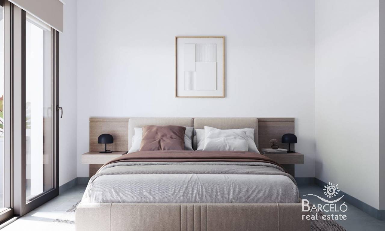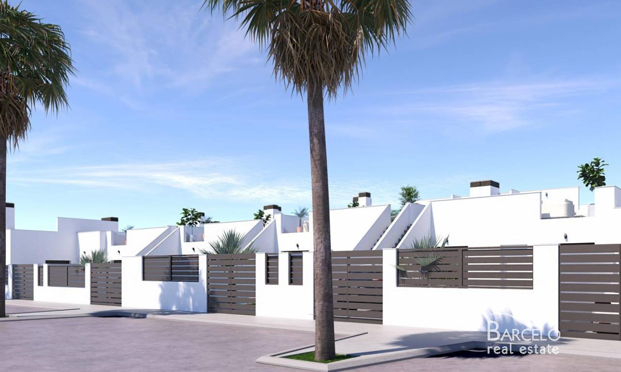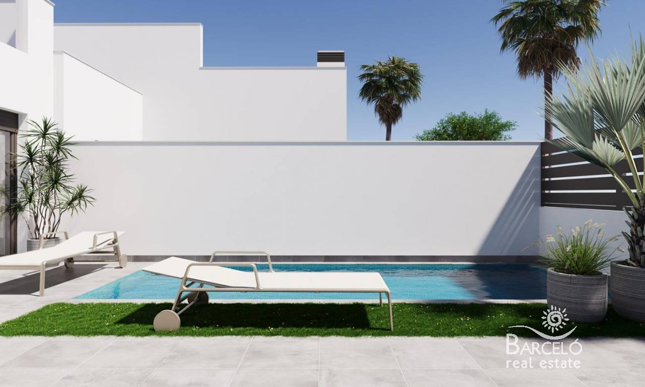 Nowoczesne, nowo wybudowane domy bliźniacze i szeregowe z prywatnymi basenami w ośrodku El Alba Resort – Torre Pacheco Nowoczesne domy w rozwijającej się śródziemnomorskiej miejscowości wypoczynkowej Ta nowa inwestycja obejmuje 16 ekskluzywnych domów bliźniaczych i szeregowych, położonych w ośrodku El Alba Mediterranean Resort w Torre Pacheco. Te nowoczesne nieruchomości, zaprojektowane jako domy parterowe, stanowią idealne połączenie komfortu, funkcjonalności i śródziemnomorskiego stylu życia na świeżym powietrzu. El Alba Resort to rozwijająca się dzielnica mieszkaniowa otoczona otwartą przestrzenią i polami golfowymi, w niewielkiej odległości od miasta Roldán, gdzie znajdują się supermarkety, restauracje, banki i inne udogodnienia codziennego użytku. Kompleks posiada już klub towarzyski z basenem i restauracją, a obecnie powstaje strefa handlowa, która dodatkowo zwiększy wygodę i wartość tej lokalizacji. Dom parterowy z prywatnym ogrodem i tarasem słonecznym Każda nieruchomość posiada 2 sypialnie i 2 łazienki, z których jedna jest przylegająca do sypialni, oraz otwartą kuchnię połączoną z jasnym salonem. Układ został starannie zaprojektowany, aby maksymalnie wykorzystać naturalne światło i stworzyć płynne połączenie między przestrzenią wewnętrzną a zewnętrzną. Wszystkie domy wyposażone są w: Wbudowaną kuchnię z urządzeniami AGD Łazienki z szafkami pod umywalkę, lustrami, oświetleniem i parawanami prysznicowymi Szafy wnękowe z szufladami w sypialniach Instalacja przygotowująca do montażu klimatyzacji kanałowej Oświetlenie LED wewnątrz i na zewnątrz Trzy panele fotowoltaiczne o mocy 1,5 kW na każdą nieruchomość Tereny zewnętrzne zostały zaprojektowane tak, aby można było z nich korzystać przez cały rok. Znajduje się tu prywatny ogród z basenem, taras oraz duży prywatny taras słoneczny z letnią kuchnią, idealny do spożywania posiłków na świeżym powietrzu i relaksu w słońcu. Cechy wysokiej jakości zaprojektowane z myślą o komforcie i wydajności Domy te charakteryzują się stylowymi i funkcjonalnymi wnętrzami, z naciskiem na efektywność energetyczną i nowoczesny styl życia. Na działce znajduje się prywatne miejsce parkingowe, zapewniające wygodę i bezpieczeństwo. Połączenie paneli słonecznych, wysokiej jakości izolacji i przemyślanej konstrukcji zapewnia energooszczędny dom, idealny do stałego zamieszkania, jako dom wakacyjny lub inwestycja pod wynajem. Doskonała lokalizacja w pobliżu pól golfowych, plaż i lotnisk Centrum miasta Roldán w odległości 2 km Plaże Mar Menor w odległości 15 km Plaże Morza Śródziemnego w odległości 20 km La Torre Golf Resort w odległości 5 km Terrazas de la Torre Golf w odległości 6 km Lotnisko Murcia Corvera w odległości 18 km Kartagena w odległości 30 km Ta strategiczna lokalizacja zapewnia łatwy dostęp do pól golfowych, plaż, udogodnień i połączeń komunikacyjnych, a jednocześnie pozwala cieszyć się spokojną atmosferą dzielnicy mieszkalnej. Inteligentna inwestycja na Costa Cálida Te kamienice i domy bliźniacze w El Alba Mediterranean Resort stanowią doskonałą okazję do nabycia nowoczesnej nieruchomości z prywatnym basenem w szybko rozwijającej się okolicy Torre Pacheco. Skontaktuj się z nami już dziś, aby uzyskać więcej informacji lub umówić się na oglądanie tych ekskluzywnych, nowo wybudowanych domów.