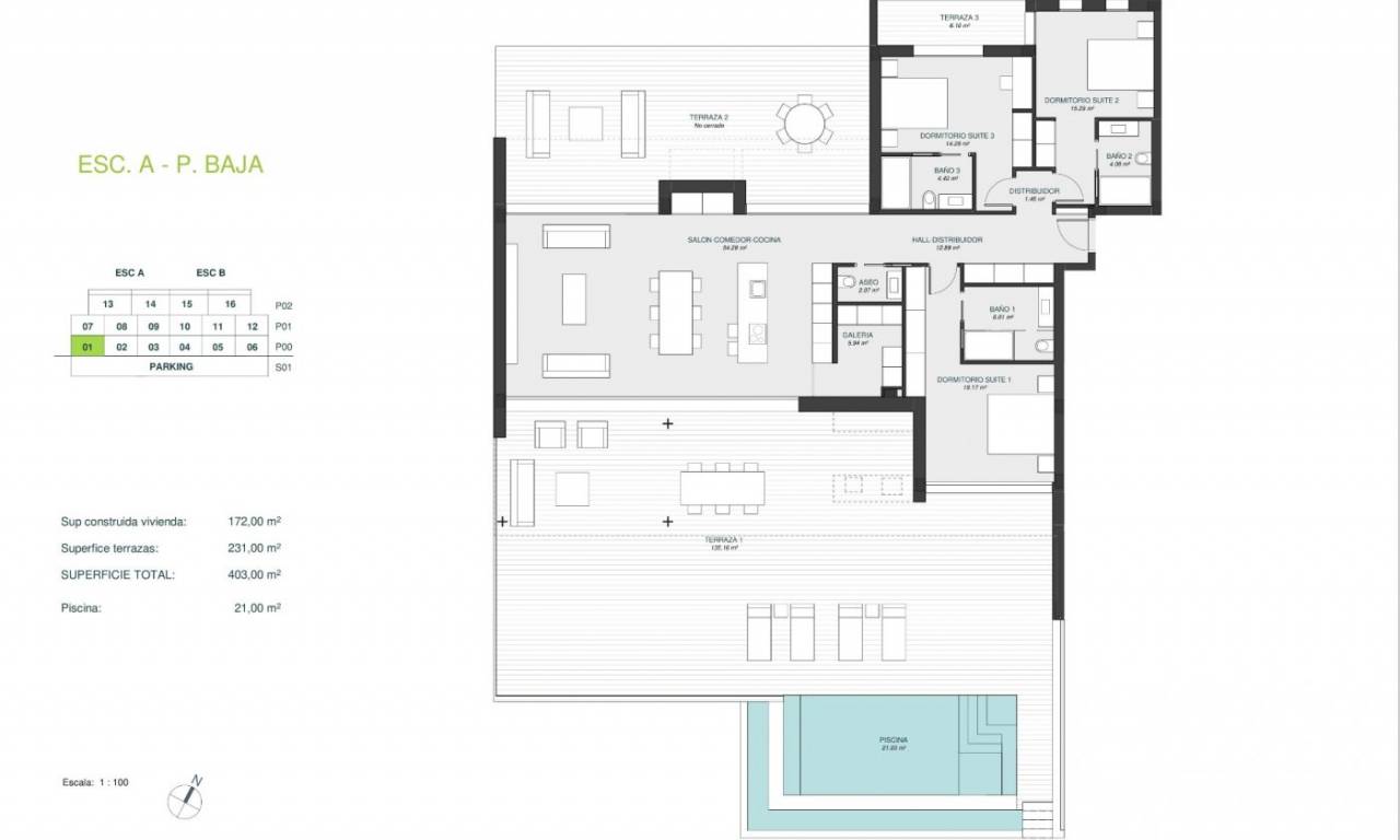 NEW BUILD RESIDENTIAL IN LAS COLINAS GOLF New Build development of luxury apartments on Las Colinas Golf & Country Club. Beautiful 2 and 3 bedrooms apartments and penthouses. All ground floor apartments and penthouses have private swimming pools. 3 bedroom apartments have double parking in the basement and a build-in wine room. All bedrooms and the living room you have direct access to the south facing terrace. The open kitchen, dining area and living room benefits from the natural light from the big windows to the terraces overlooking the communal area and the green surroundings. Included in the apartment comes a parking space and private storage room in the basement. In the heart of the Costa Blanca South we find a leafy valley of 330 hectares between hills, very close to the sea and with a magnificent championship golf course that crosses it. This unique urban development is described as ecological due to the low intensity of housing it has built. The success of this ecological urban development project lies in a total integration of the buildings in the natural environment. If you are looking for a corner in Spain to disconnect and find that privacy, in Las Colinas Golf & Country Club you will find the ideal place to escape. You will enjoy 200,000 square meters of beautiful Mediterranean landscapes and you will be able to make scenic walks through the lush indigenous, native flora and the extensive fields of orange and lemon groves. Complex located 40 minutes from Alicante airport and 1 hour Murcia - Corvera airport.