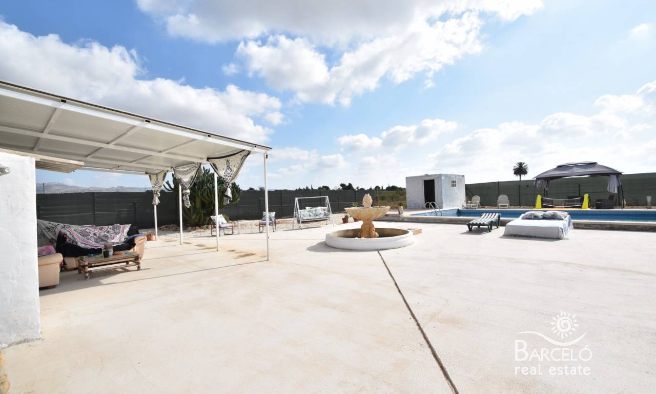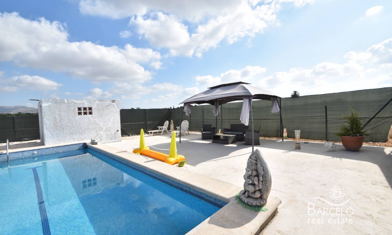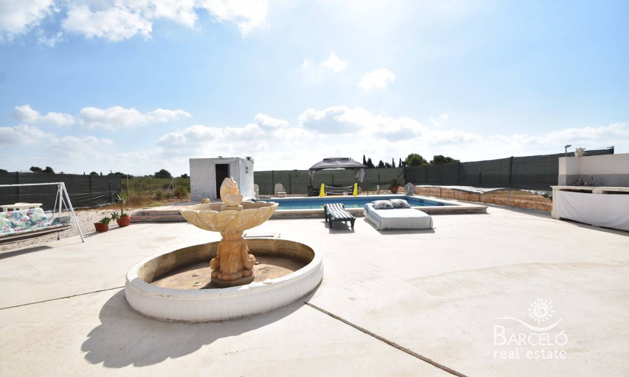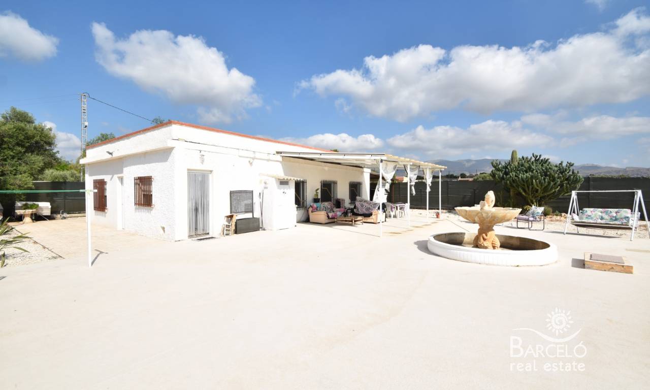 We are pleased to present to you this wonderful country property, located close to the area of El Realengo, Crevillente. This property is ideally located in a private road, with only a few neighbours nearby, and well connected to the motorway. You can be in the centre of Elche in 15 minutes for all your shopping needs, and Crevillente is around 7 minutes away by car!